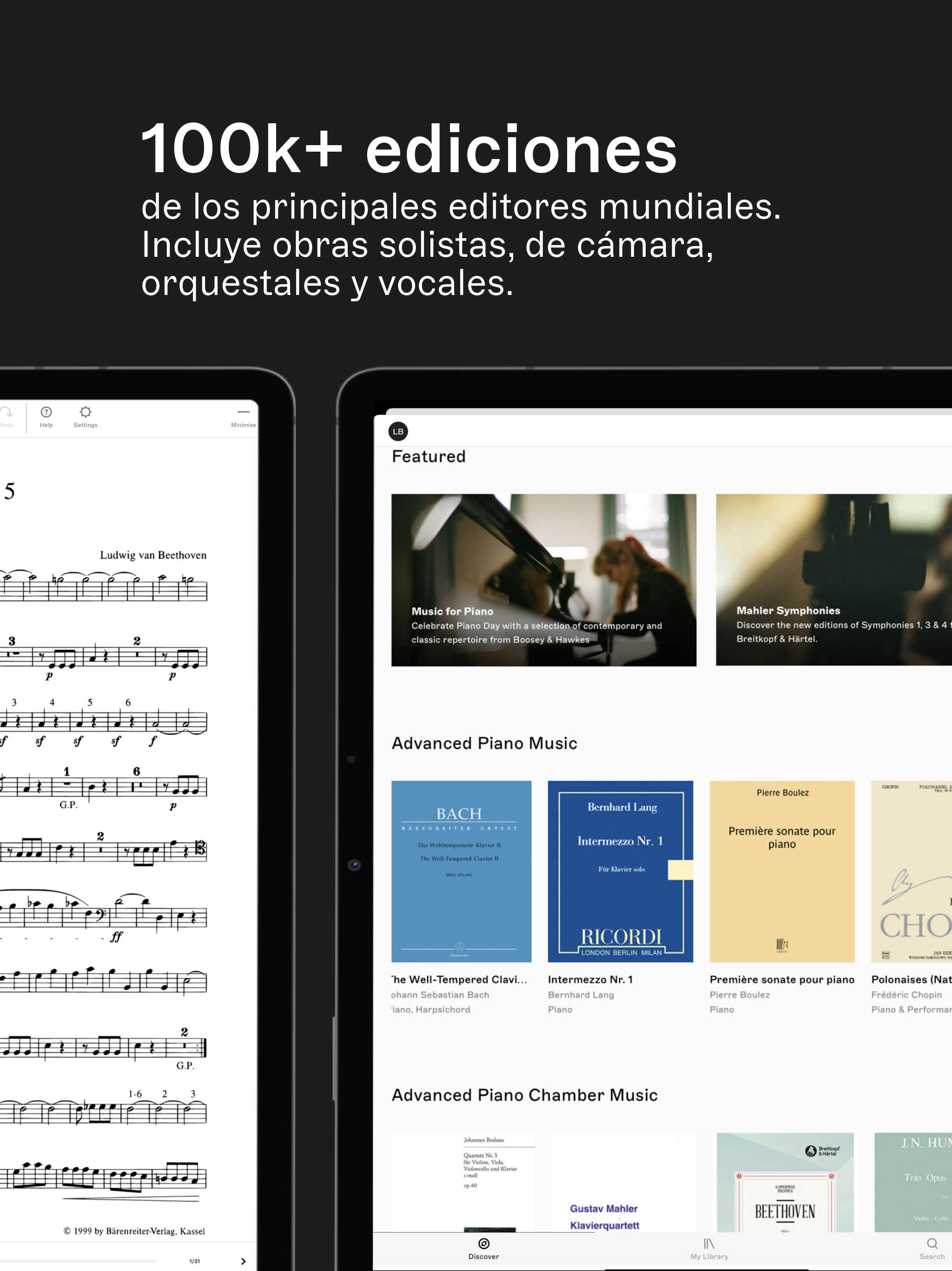 Encuentra, organiza y anota partituras de los principales editores del mundo con la nueva aplicación de nkoda. Con acceso ilimitado a partituras y materiales de interpretación, estudiar, enseñar y tocar es fácil, con todo accesible en una sola aplicación. nkoda ofrece más de 110,000 ediciones de alta calidad y con licencia completa de editores como Bärenreiter, Boosey & Hawkes, Breitkopf & Härtel, Casa Ricordi, Chester Music, Faber Music y muchos más. Nuestras ediciones abarcan música solista, de cámara, orquestal y vocal, englobando desde clásica hasta jazz, contemporánea y pop. Ya sea para encontrar el programa de tu próximo recital, estudiar y analizar tus obras favoritas o para acceder a partes antes de los ensayos, nkoda lo tiene cubierto. Además de las partituras y las partes, también puedes encontrar materiales educativos, como libros de teoría y métodos para principiantes y niveles avanzados. Con nkoda, todos los materiales están disponibles en línea o sin conexión, al alcance de tus dedos en cualquier momento y en cualquier lugar. Nuestras cajas de herramientas personalizables y dinámicas te permiten trabajar como quieras, y las funciones intuitivas de compartir y organizar facilitan la colaboración. Incluso puedes cargar y administrar tus propias partituras y disfrutar de almacenamiento ilimitado para tu colección. nkoda empodera a los músicos y simplifica la creación musical. Descubre hoy por qué los músicos de todo el mundo están usando nkoda con una prueba gratuita. Información de suscripción de nkoda: Tu suscripción se cargará a tu tarjeta de crédito o débito a través de tu cuenta de Google play una vez que finalice la prueba gratuita. Esto será de forma mensual o anual dependiendo de tu elección de suscripción. Ambas opciones de suscripción proporcionan acceso al uso ilimitado de toda nuestra biblioteca, características y beneficios. Estas opciones proporcionan el mismo servicio y la única diferencia es un ahorro del 20% en el precio al suscribirse anualmente. Si cancelas tu suscripción antes de que finalice tu prueba y te vuelves a suscribir después de que haya finalizado, no podremos ofrecerte otra prueba gratuita completa. Tu suscripción se renovará automáticamente a menos que desactives la renovación automática o la canceles al menos 24 horas antes del final del período actual. Las suscripciones son administradas por el usuario y la renovación automática podrá ser desactivada en la configuración de la cuenta de Google play del usuario después de la compra. Para obtener más información, consulta: EULA - https://www.nkoda.com/legal/end-user-licence-agreement Política de privacidad - https://www.nkoda.com/legal/privacy-policy