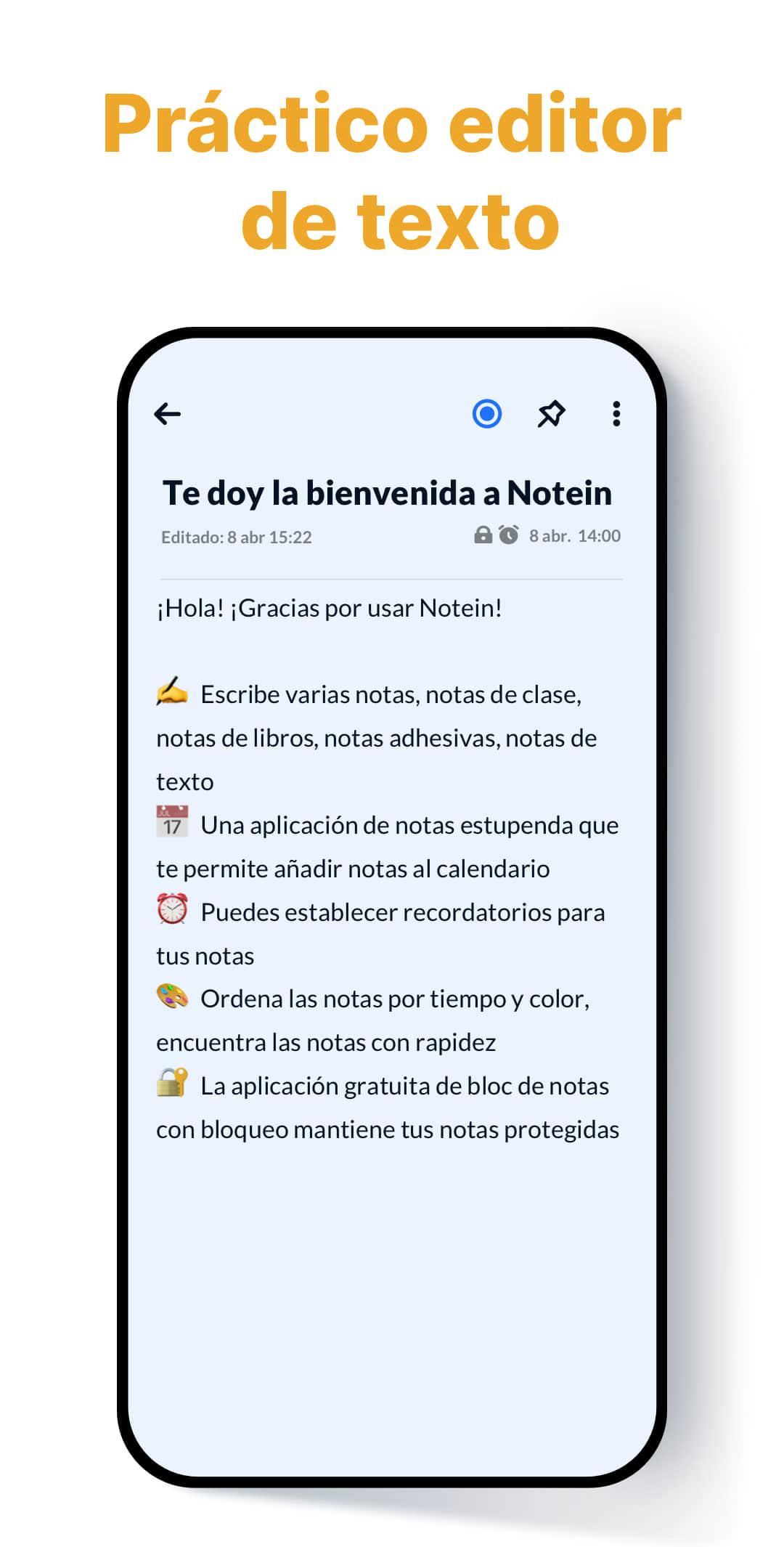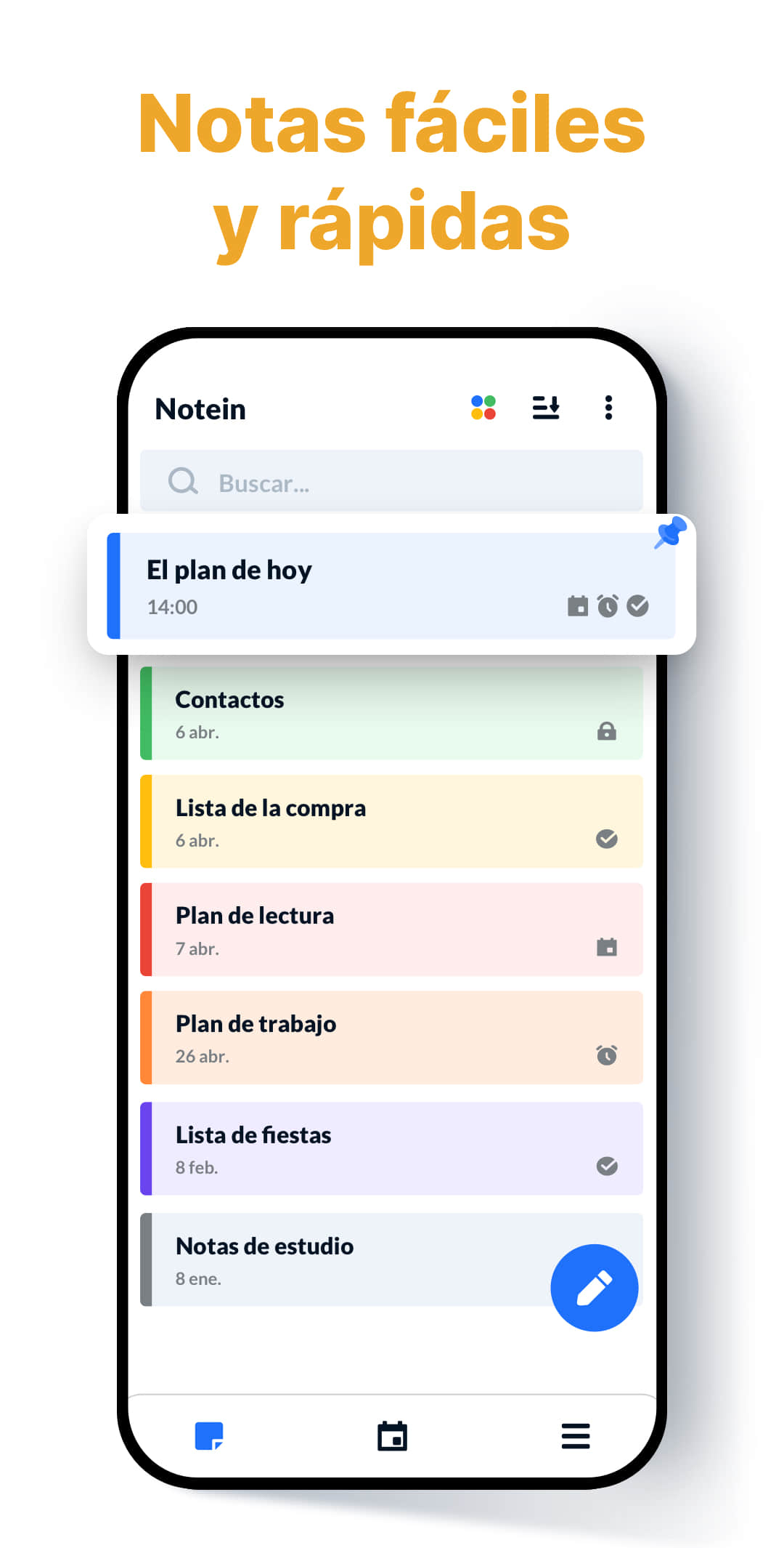 ¡Sin anuncios!Bloc de notas, Listas - Notein es una impresionante aplicación de notas para Android. Puedes escribir notas con fondos de colores para gestionarlas con facilidad.
