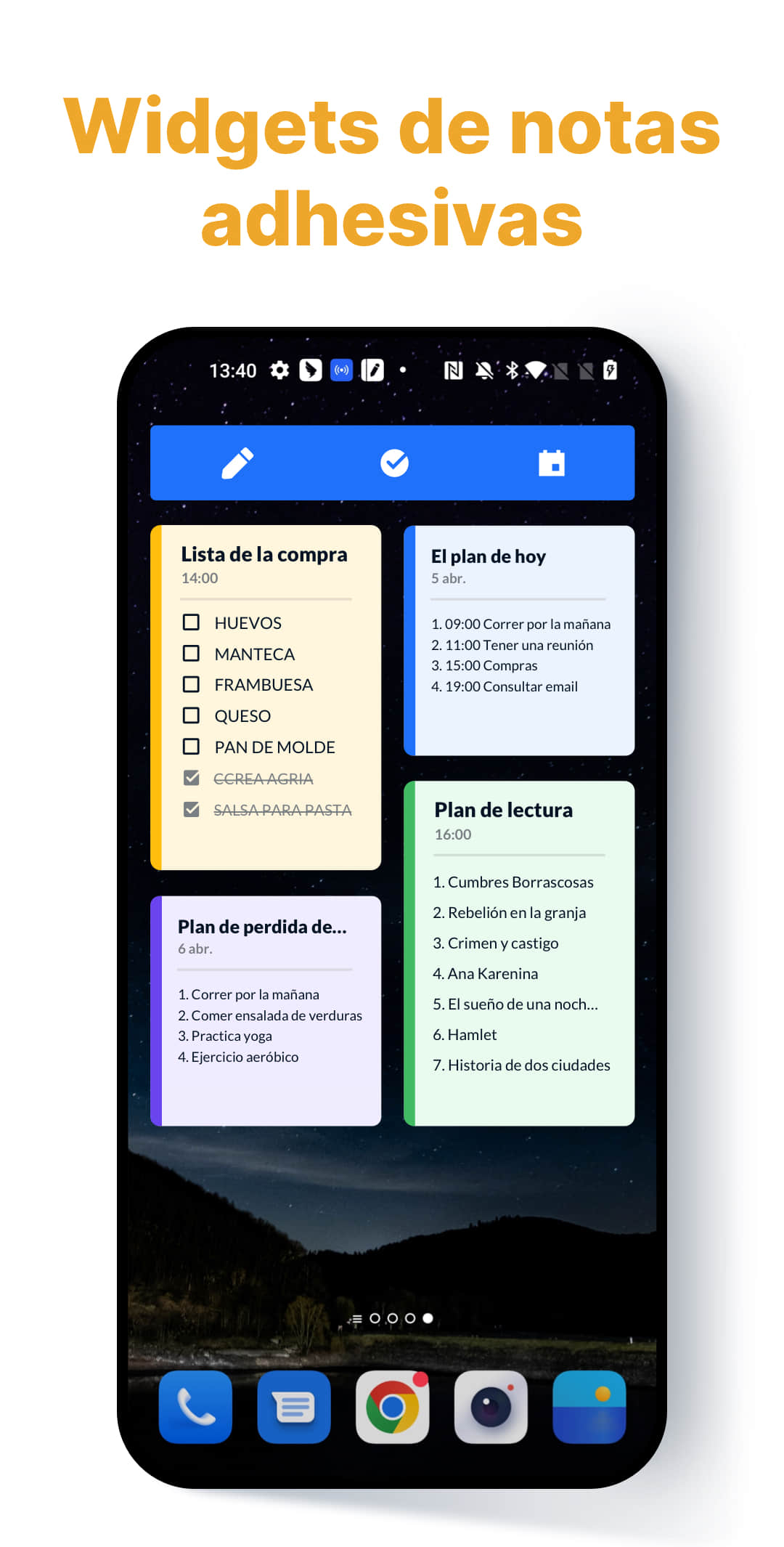 Fija notas importantes y visualízalas a través de los widgets de notas.