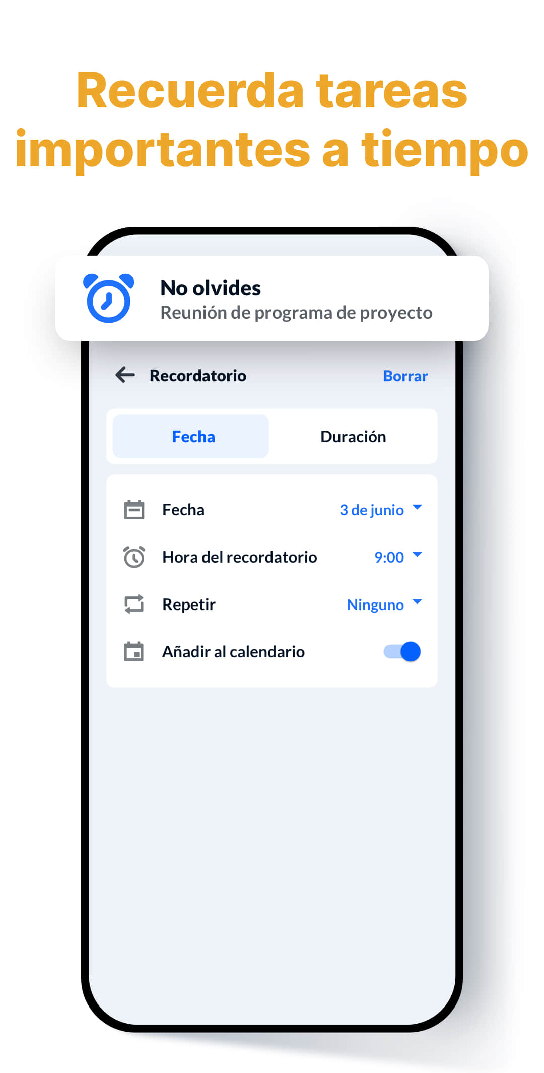 - Recordatorio en la barra de notificaciones