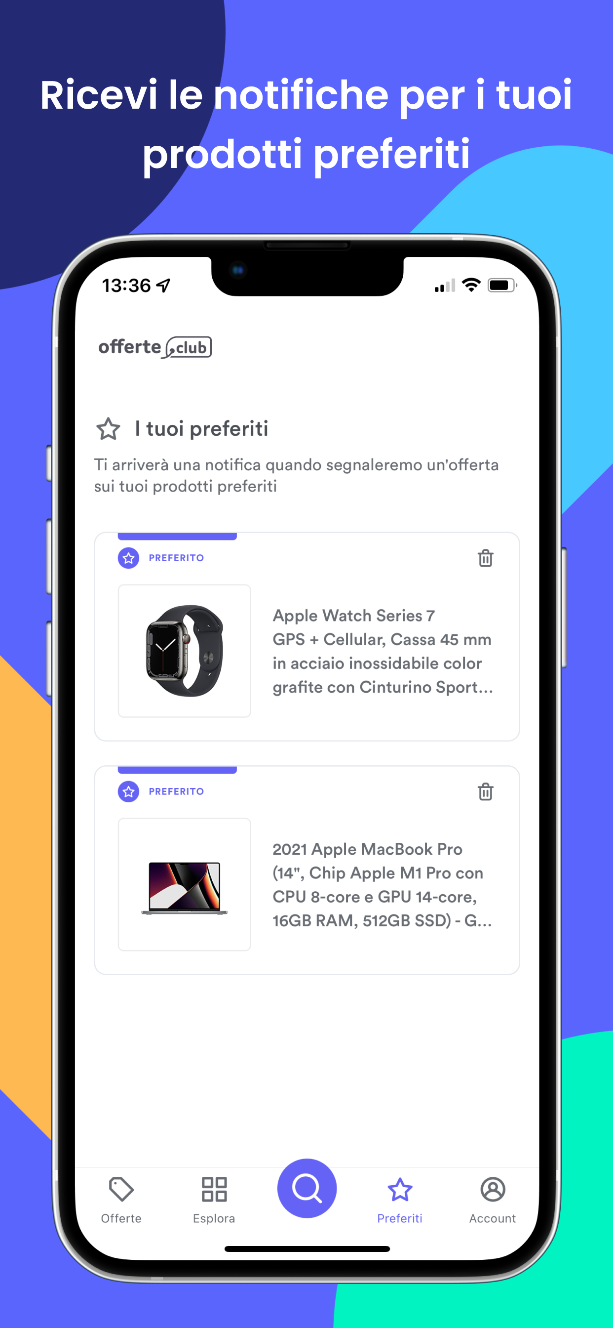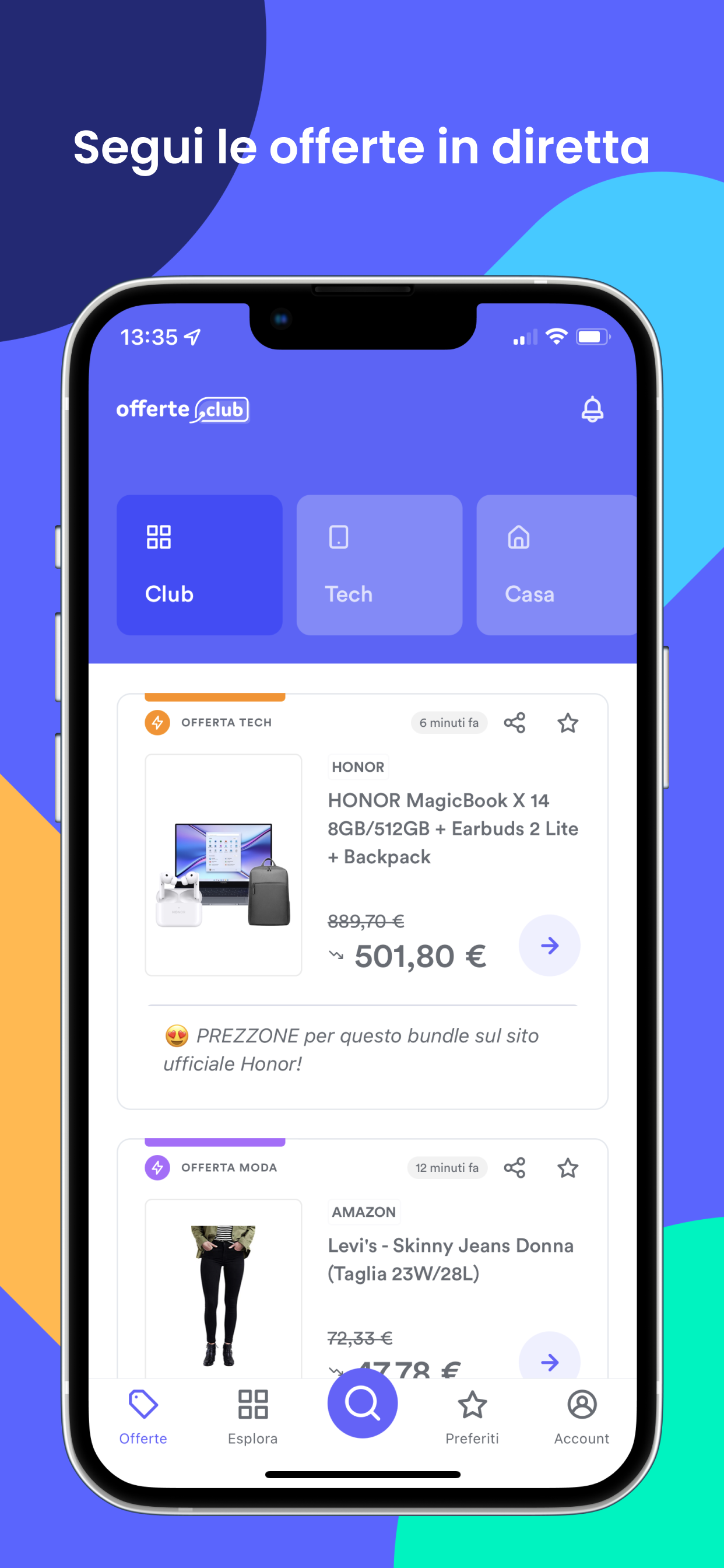 offerta.club (offerta puntoclub) es un portal de ofertas en la ronda: todos los días recogemos las mejores ofertas de tiendas italianas en línea y más allá. Códigos de descuento exclusivos: Puede copiar los códigos de descuento directamente desde la aplicación y usarlos para sus compras. En algunas ocasiones la velocidad será decisiva, ya que algunos códigos son limitados. Caídas de precios extraordinarias: Actualizaciones en tiempo real para todas las caídas de precios más interesantes. Cuatro categorías para explorar: - Club: para acceder a las ofertas de todas las categorías con las que tratamos - Tecnología: todas las ofertas relacionadas con la tecnología, como teléfonos inteligentes, televisores, altavoces, cámaras, etc. - Hogar: todas las ofertas relacionadas con el hogar, como alimentos, muebles, productos para mascotas, herramientas de bricolaje, electrodomésticos pequeños y grandes, etc. - Belleza: todas las ofertas relacionadas con el cuidado personal, como cremas, perfumes, productos de belleza, etc. Notificaciones de lo que te interesa: Tú eliges para qué recibir notificaciones: para cada sección puedes habilitar o no recibir notificaciones en cualquier momento. Busque promociones para un producto específico: ¿Tienes un deseo específico? ¡Use la función de búsqueda y descubra si ya se informó por el precio que desea!
