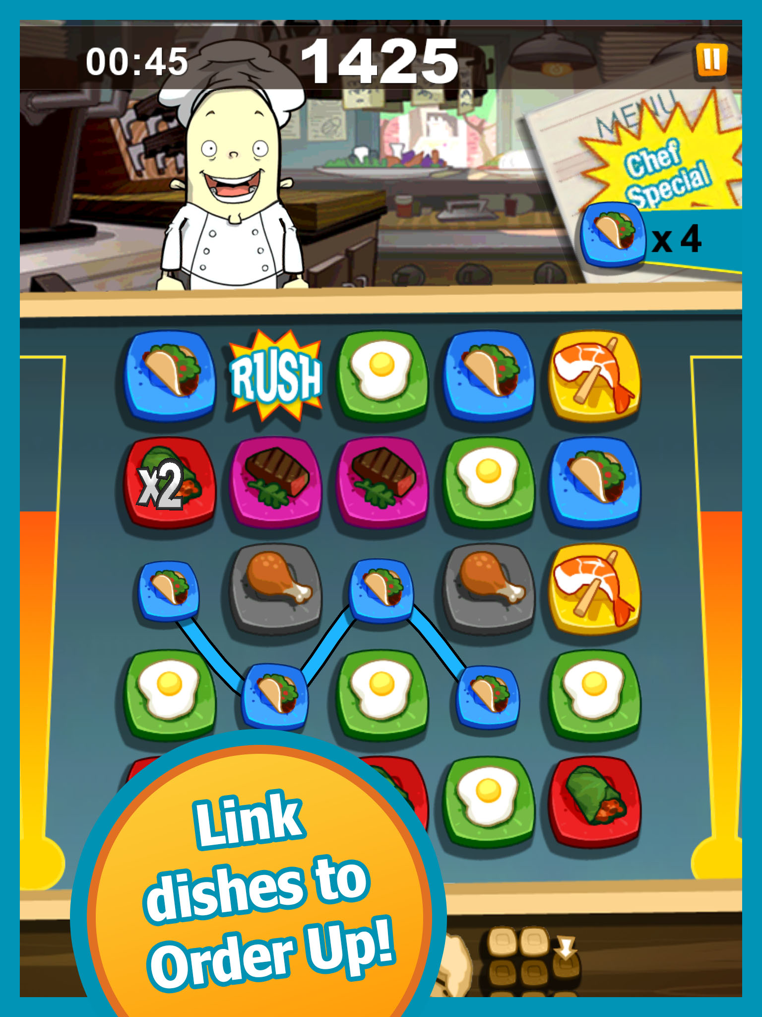 Match your snacks as quickly as possible in this frantic point-scoring food feast. Play as your favorite Order Up!! Chefs and whip up a banquet of heavenly combos and scrumptious special dishes. Throw in a handful of flavorful power-ups to transform your culinary expertise into mouthwateringly high scores!