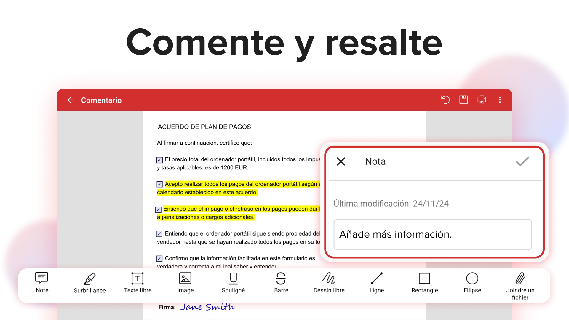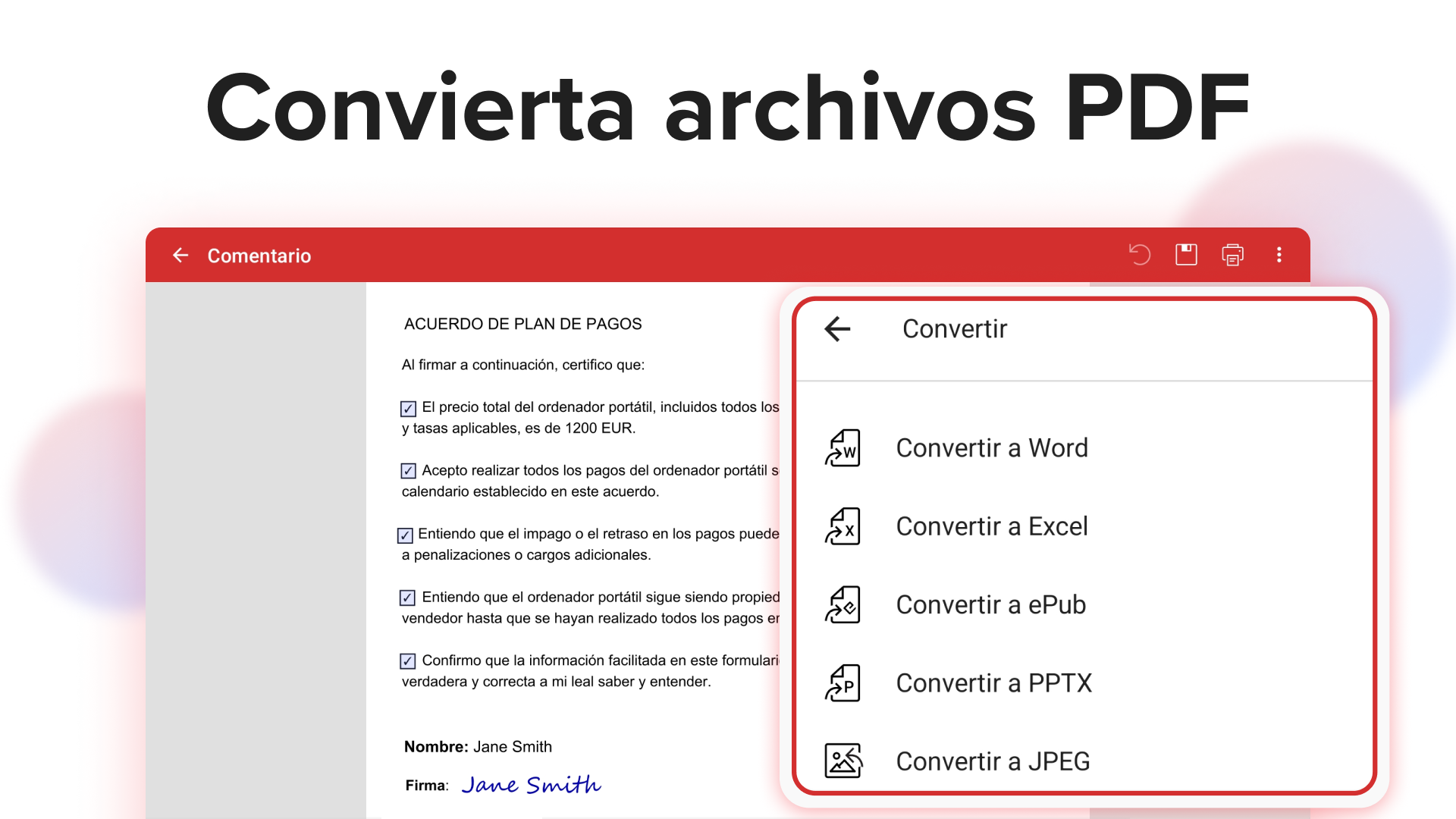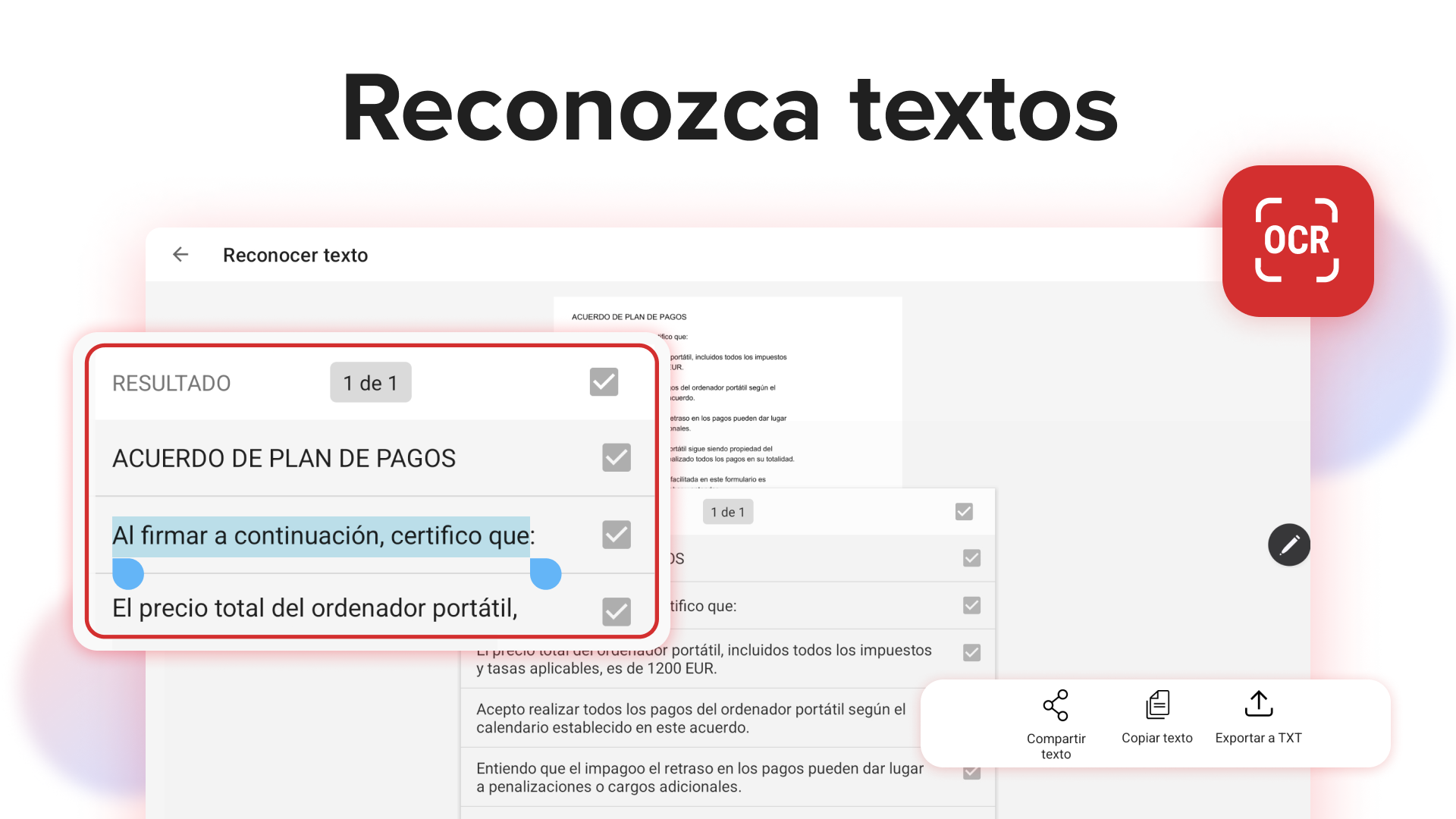 El editor y escáner de MobiPDF te ofrecen una potente colección de herramientas especializadas para ver, revisar, editar, crear y proteger archivos PDF de forma rápida y sencilla en tu teléfono, estés donde estés. MobiPDF se enorgullece de formar parte de PDF Association. 📃 Escaneo a PDF con IA Descubre el escaneo con ayuda de la tecnología de la inteligencia artificial, que mejora la detección de bordes y captura imágenes nítidas de tus documentos en papel y los convierte en archivos PDF editables. Desde recibos y contratos hasta facturas, notas, certificados, informes, identificaciones y pasaportes, MobiPDF ofrece un escaneo rápido y confiable. 👁️ Reconoce texto (OCR) Aprovecha la tecnología de reconocimiento óptico de caracteres (OCR) para reconocer texto tras escanearlos o de imágenes, y comparte fácilmente el texto reconocido por correo electrónico, aplicaciones de mensajería o subiéndolo a la nube. ✏️ Edita archivos PDF Accede a uno de los editores de PDF para móvil más avanzados del mercado y edita PDF, crea PDF en blanco e inserta, elimina o modifica diversos aspectos del documento, como texto, imágenes, firmas, comentarios, dibujos, certificados y mucho más. ✒️ Rellena y firma Rellena y comparte formularios, y firma documentos estés donde estés, aprovechando la compatibilidad avanzada con archivos PDF rellenables, que te permite dibujar tu firma directamente en los documentos o reutilizar las firmas electrónicas guardadas, además de realizar todos los cambios que necesites. 🖨️ Imprime archivos PDF Imprime documentos PDF de forma inalámbrica directamente desde tu teléfono. ➕ Convierte archivos PDF Convierte documentos PDF a archivos Word, Excel, PowerPoint o ePub conservando el diseño y el formato originales, y guarda archivos Word, Excel, PowerPoint y ePub como PDF para compartirlos fácilmente. Disfruta de una conversión fiable de imágenes PNG y JPEG en archivos PDF editables o utiliza el conversor gratuito de PNG y JPEG dentro de MobiPDF para convertir fácilmente documentos PDF en imágenes. 🔐 Protege archivos PDF Protege tus documentos confidenciales con contraseñas para bloquear, encriptar y restringir el acceso de los usuarios, y utiliza certificados digitales para validar la autenticidad. ☁️ Haz copias de seguridad de tus escaneos y PDF Inicia sesión en tu cuenta para acceder a 5 GB de almacenamiento gratuito en la nube en MobiDrive. Sube de categoría a MobiPDF Premium para obtener 50 GB adicionales de almacenamiento. 🗨️ Visualiza y comenta Mejora tu experiencia de lectura con el visor avanzado de PDF incluido en MobiPDF y cambia fácilmente entre distintos modos de página, o activa el modo de lectura para poder leer sin distracciones. Añade fácilmente comentarios, resalta y marca texto, inserta sellos o adjunta archivos a tu PDF. 📚 Organiza las páginas de los PDF Disfruta de un control total sobre tus documentos PDF: visualiza, reorganiza, inserta, elimina, extrae, duplica y rota páginas, o combina varios archivos PDF en uno solo para darles a tus PDF un diseño perfectamente organizado. Utiliza las compras desde la aplicación para desbloquear la mejor experiencia de escáner y editor móvil. Ten en cuenta lo siguiente: • Todos los pagos son cargados por Google Play Store después de confirmar la compra. • Si no cancelas al menos 24 horas antes de que finalice el período actual, se cargará la renovación automáticamente en tu cuenta. • Puedes administrar tus suscripciones desde la configuración de tu cuenta de Google Play. ¿Necesitas más? Échale un vistazo a nuestra versión gratuita de MobiPDF para el escritorio de Windows: https://mobisystems.com/en-us/mobipdf Centro de ayuda: https://support.mobisystems.com/hc/en-us/sections/20794400214045-Android Política de privacidad: https://mobisystems.com/en-us/privacy-policy Condiciones de uso: https://mobisystems.com/en-us/terms-of-use