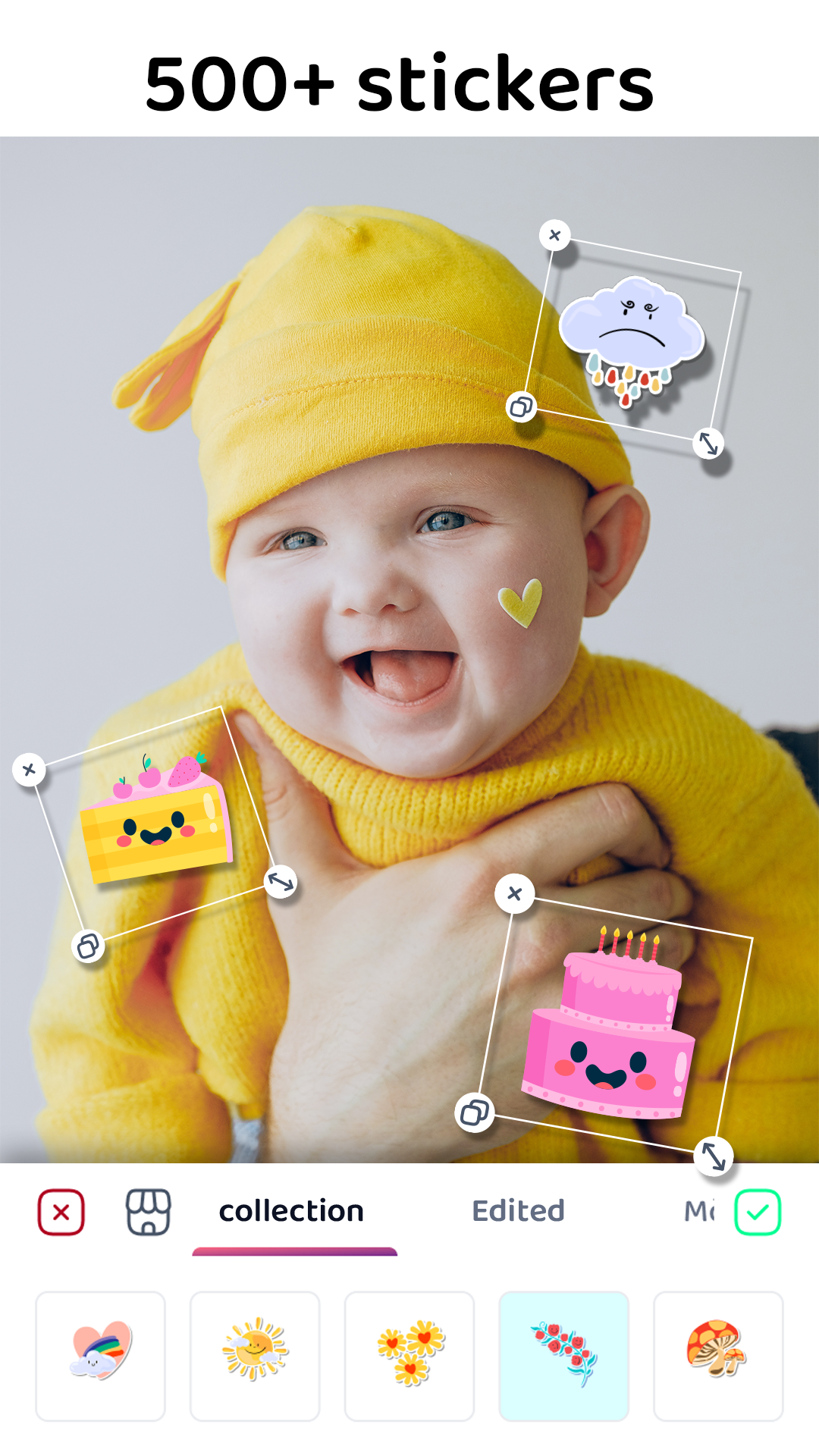 Da rienda suelta a tu imaginación con más de 500 pegatinas. Encuentra íconos lindos, elementos modernos y artísticos para embellecer tus creaciones. Expresa tu estilo o simplemente diviértete explorando.