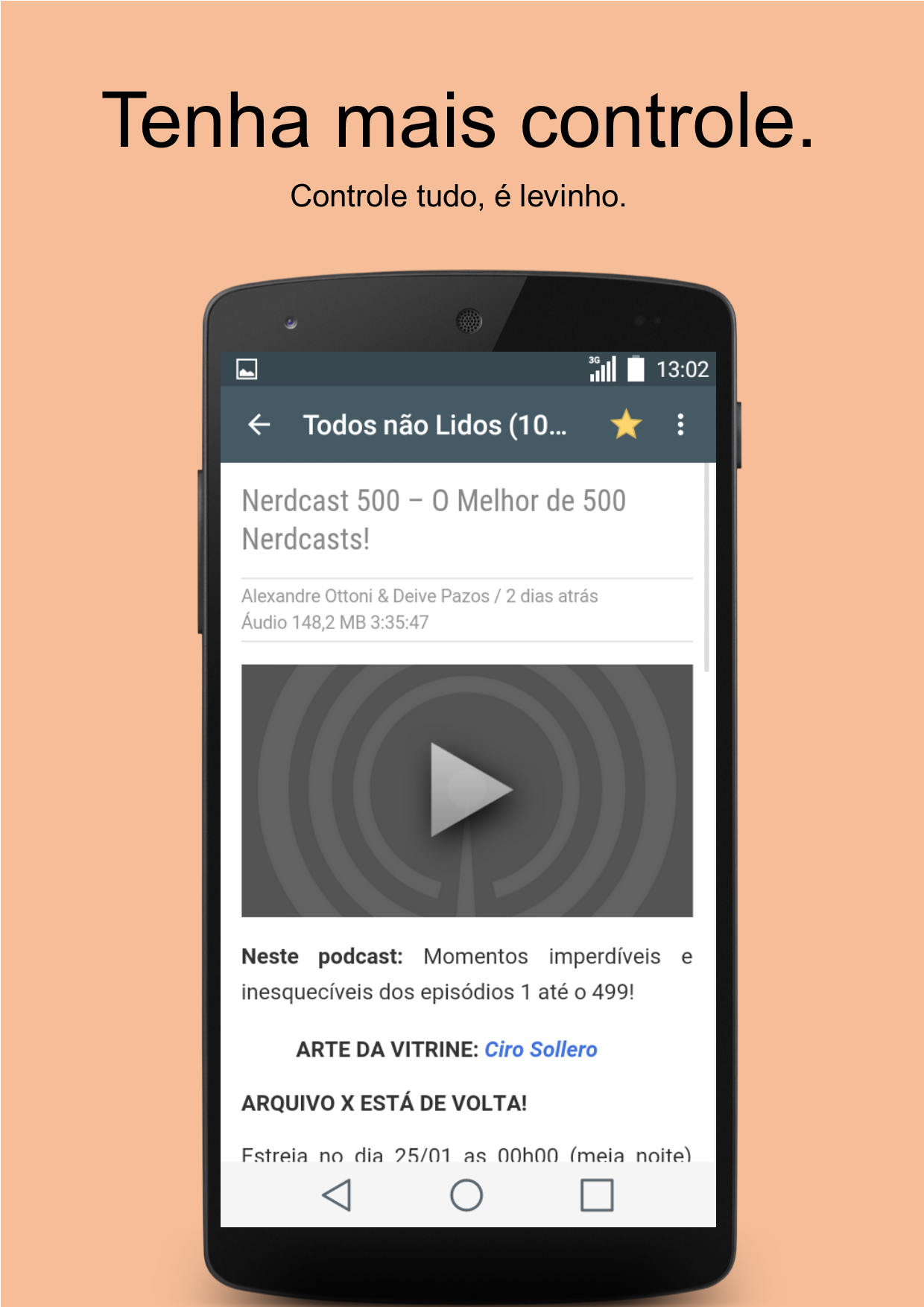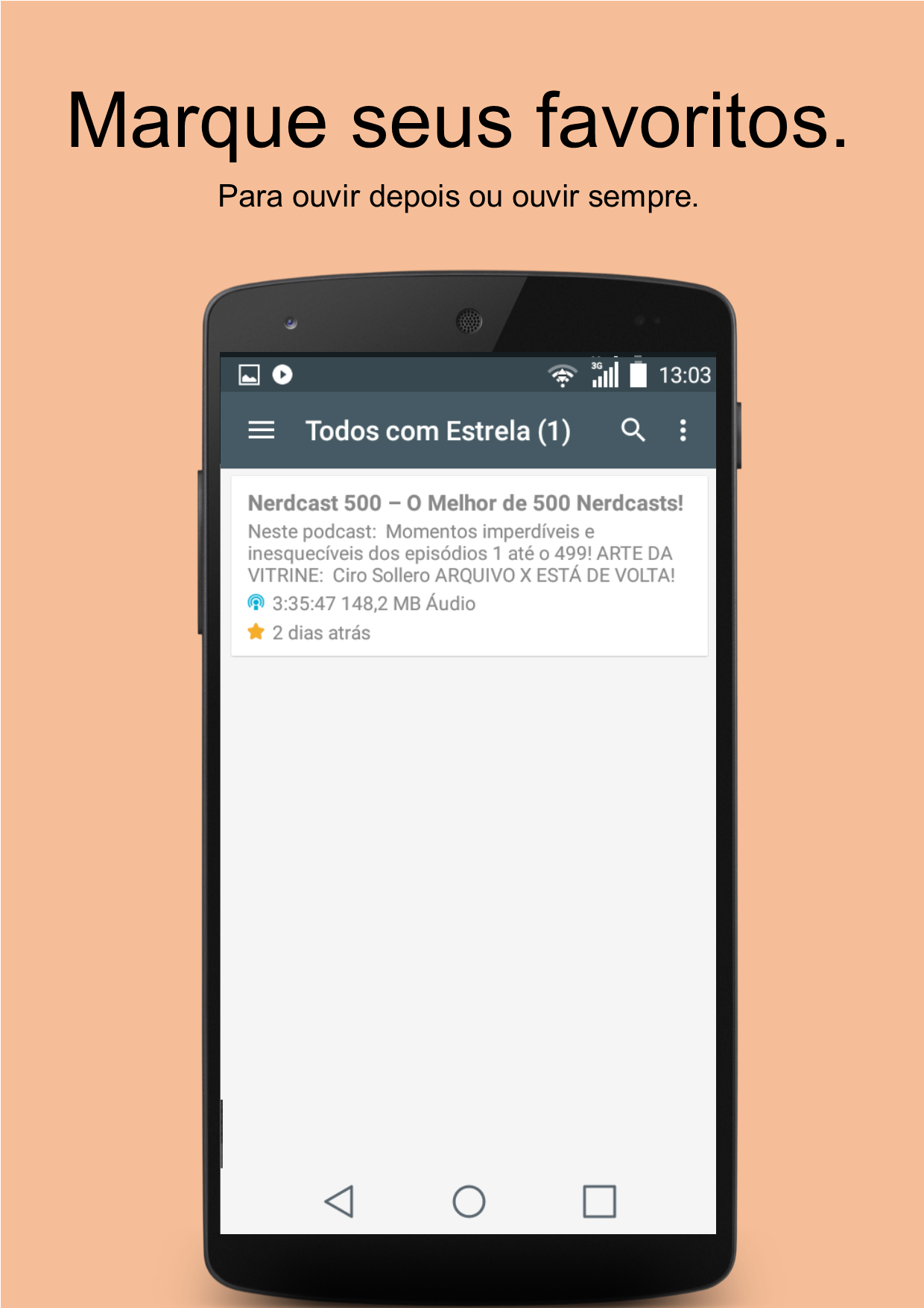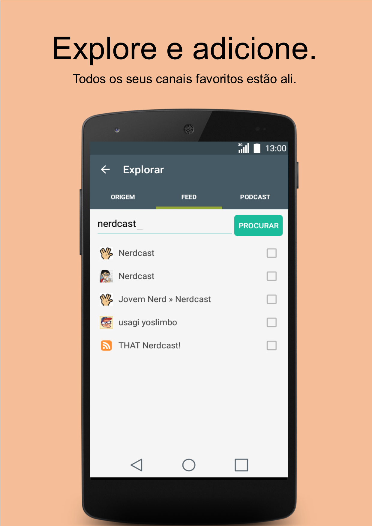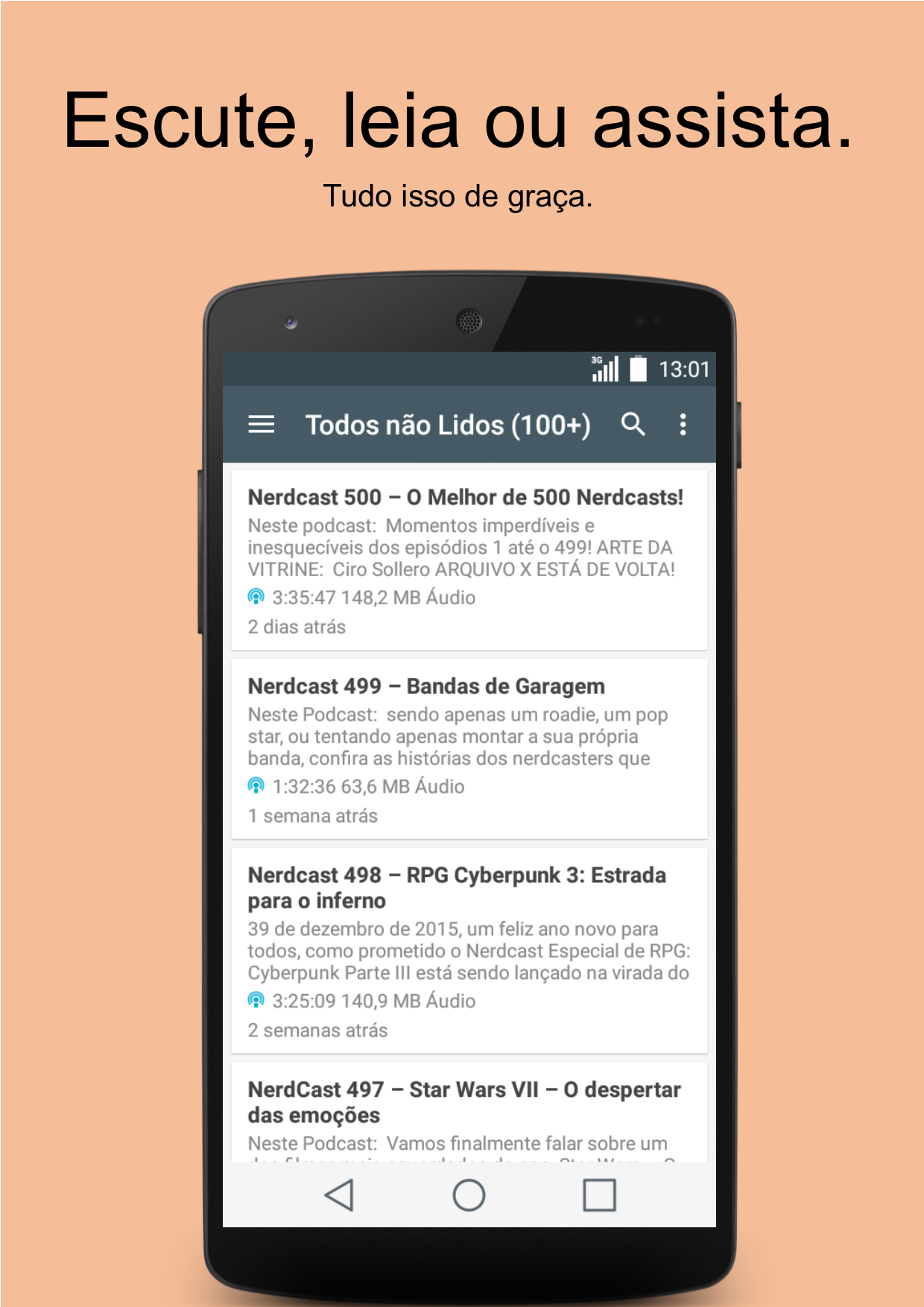 Podcast es una aplicación hecha para escuchar y descargar podcasts y leer las noticias de sus canales favoritos. Centrado en la sencillez, nos encontramos con las principales necesidades de los oyentes de podcast. Escuchar o descargar sus episodios favoritos de Podcasts como Nerdcast, Rapaduracast y otras personas de todo el mundo. Utilice el menú Explorar para buscar y añadir cualquier canal disponible. Usted disfruta de escuchar? Escuchar activar el modo de flujo. Prefiere descargar escuchar ahora? Descargar y escuchar en línea en cualquier momento. ¿Quieres celebrar tu favorito? Marcarlos para organizarlos mejor. Quieres marca ya oído o visto? No te preocupes, porque Podcastor es inteligente y se vuelve para ayudarle. Para aquellos que prefieren leer, simplemente, buscar y añadir sus canales de noticias favoritos a través del menú Explorar. Otros modos de diseño están disponibles en la configuración de la aplicación. Perfecto para los teléfonos móviles con recursos limitados sin perder un buen diseño y una hermosa interfaz. Problemas con la aplicación? Utilice el menú de Opinión para ponerse en contacto con el desarrollador, estoy encantado de ayudarle.