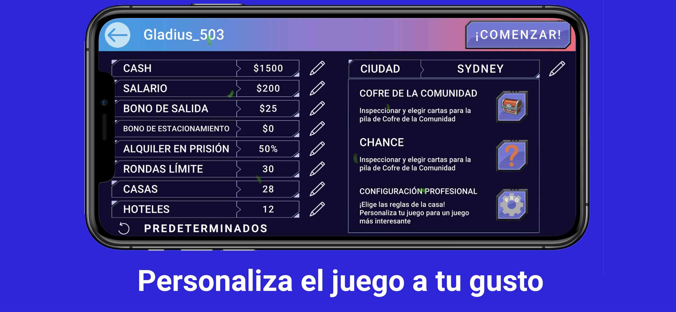 🎻 Amplias opciones de personalización del juego