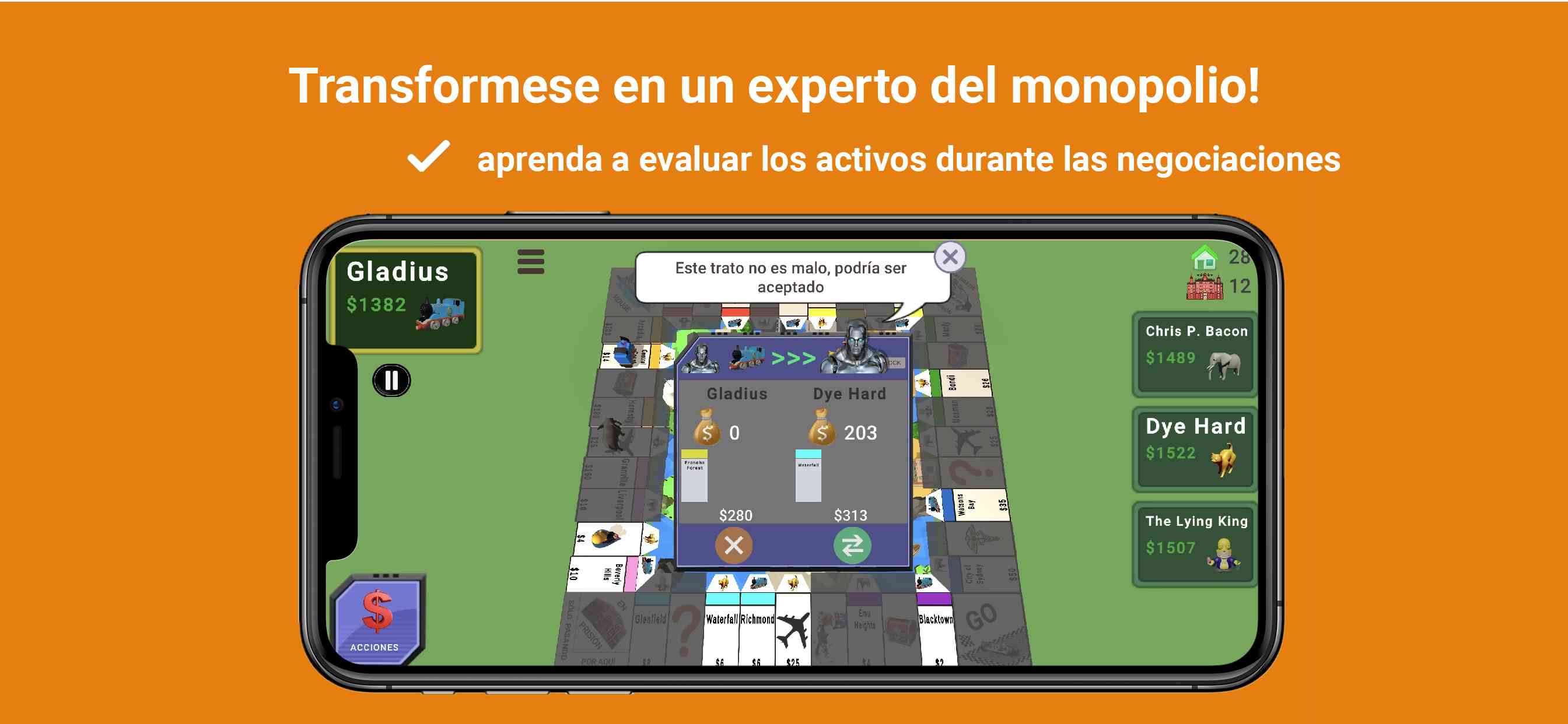 🎭 Cada nivel de IA en cada juego es única, y tiene su propia personalidad y tendencias a asumir riesgos de forma diferente, así como actitudes diferentes hacia la propiedad. Las IA son excelentes imitando personas reales, podrían estar molestas, desesperadas o codiciosas en diferentes momentos