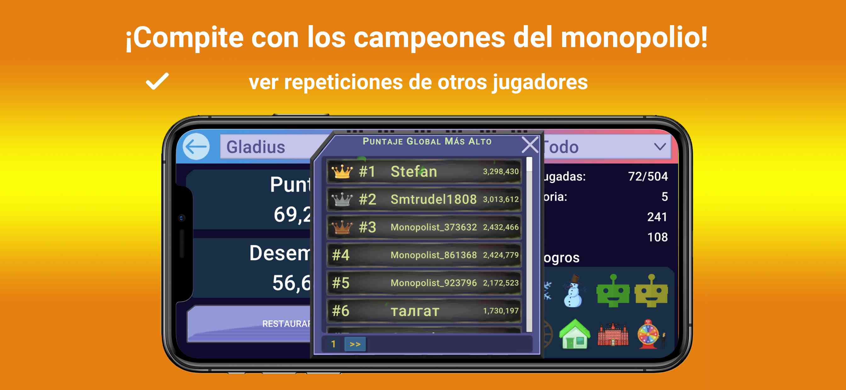 🎥 Posibilidad de ver repeticiones de partidas de los 100 mejores jugadores clasificados. ¡Esta es una de las mejores formas de aprender nuevas tácticas!