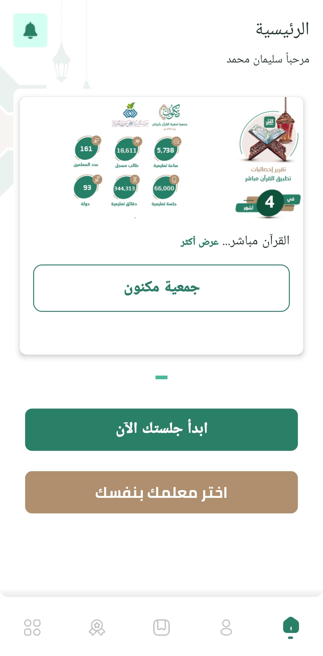 La aplicación "Quran Live" es la primera aplicación gratuita en el mundo para corregir la recitación que permite aprender el Sagrado Corán de forma remota con audio y video a través de sesiones interactivas con maestros calificados y distinguidos; Donde la aplicación satisface las necesidades de aquellos que quieren aprender el Noble Corán de todos los grupos (hombres y mujeres, viejos y jóvenes) La aplicación funciona las 24 horas del día de forma gratuita y proporciona a los maestros certificados la escritura relacionada con el Profeta, que Dios lo bendiga y le conceda paz. La aplicación se preocupa por la calidad de la educación donde los docentes son monitoreados constantemente y su desempeño es evaluado a través de la gestión de calidad y desarrollo y donde el estudiante puede evaluar al docente al finalizar cada sesión.