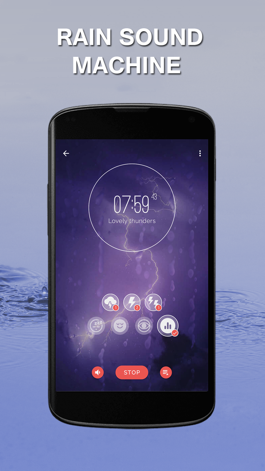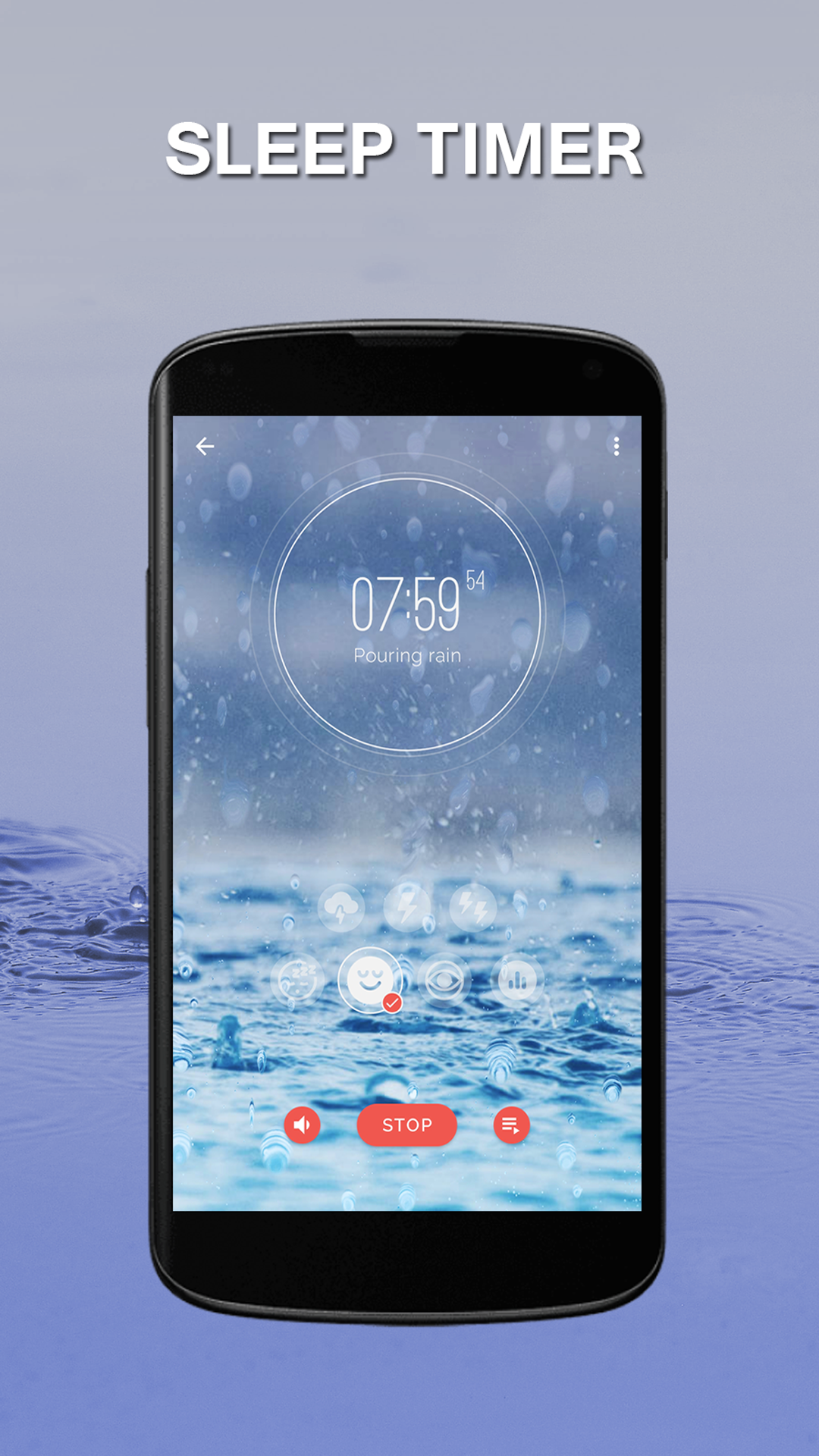 Muchos adultos pueden usar los sonidos de las tormentas para crear un ambiente tranquilo, pacífico y relajante para dormir. Las personas que sufren de insomnio u otros trastornos del sueño pueden usar esta aplicación para ahogar las distracciones de los ruidos externos. Los sonidos de la lluvia también pueden ser útiles para la relajación, el estudio y la concentración.