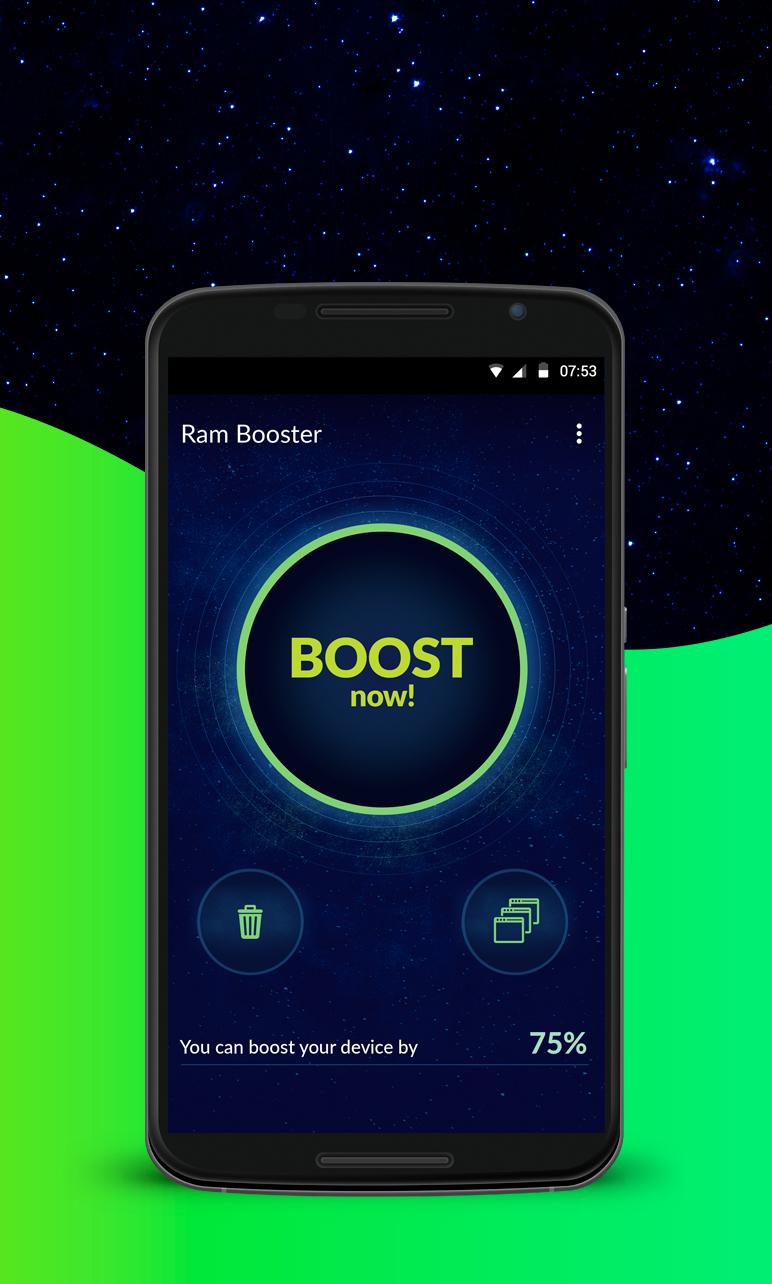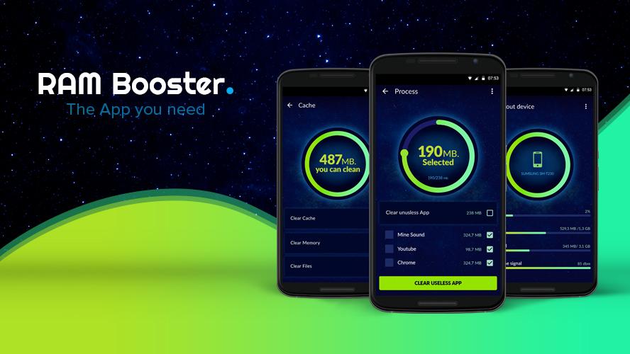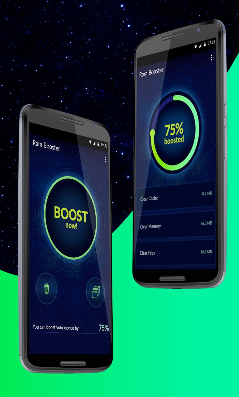 RAM Booster is a utility app that speeds up your android phones performance just by the click of a button.It aims to take away the complexity of other task manager apps and provide the user with an easy to use and convenient interface. By killing all unwanted background processes that use up memory and also clears cache for all apps not in use RAM Booster frees up precious memory(RAM) for use.if you have tones of apps open and your device is lagging ,this app will greatly improve your speed and performance. RAM booster also has a nifty feature for letting you know when your phone is running out of memory so you can free up memory before things get worse. If you have any suggestions on improvements please leave them on the ratings and reviews section. The best part is that you can enjoy Ram Booster for FREE!! 6dcf349afd