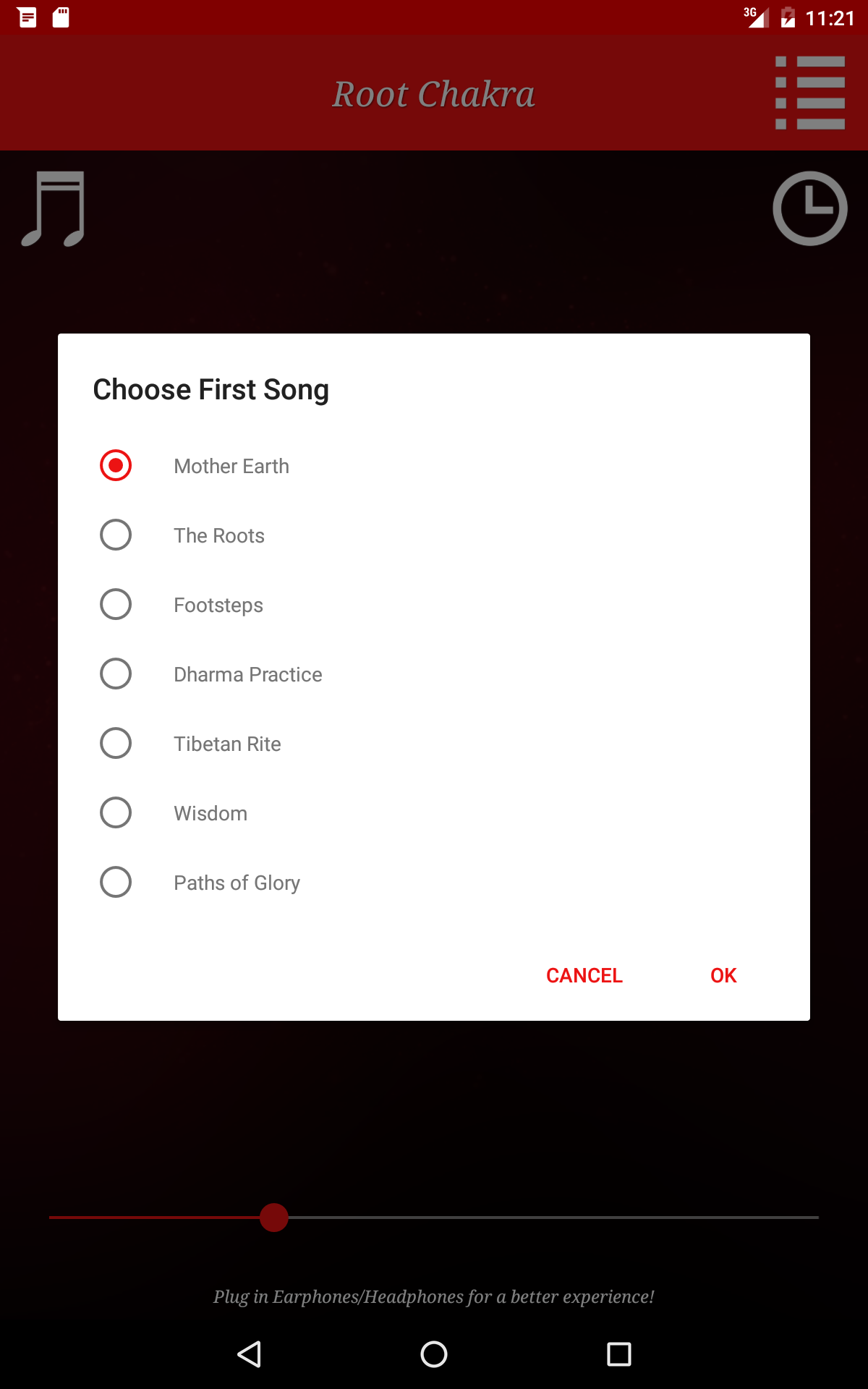 Para equilibrar este chakra, hemos creado: Limpiar Chakra Raíz 228Hz , una aplicación que te permitirá reproducir un tono de 228 Hz que te ayudará a limpiar este centro de energía mientras tu meditas. Este tono isocrónico binaural se puede hacer aún más agradable gracias a las 7 canciones relajantes de fondo que puedes escuchar. La primera es gratis, mientras que las otras se pueden descargar en la versión de pago. Los títulos de nuestras canciones en la lista de reproducción son los siguientes, y se pueden utilizar para sanar tu alma: