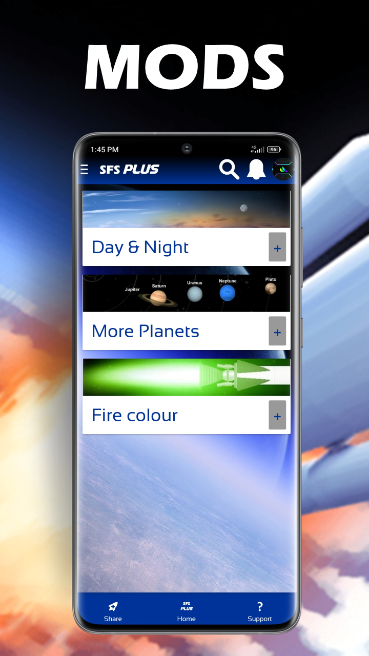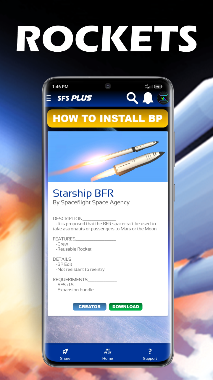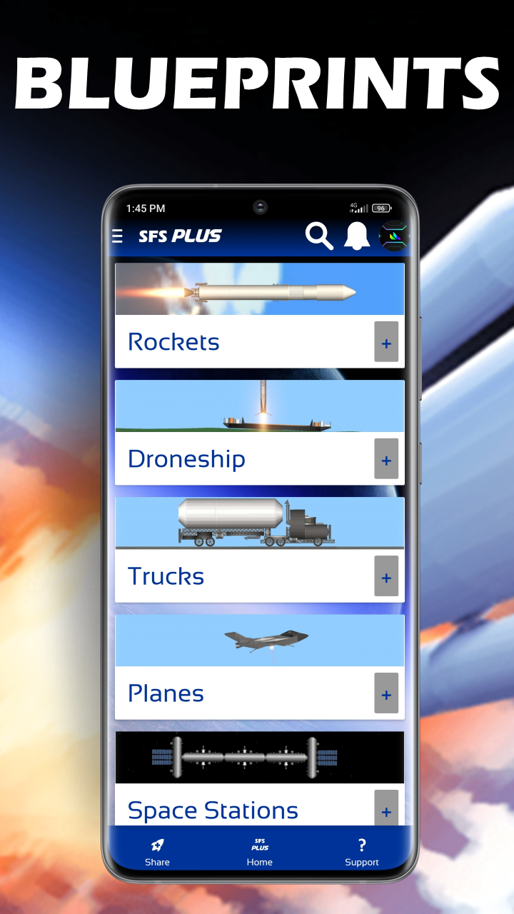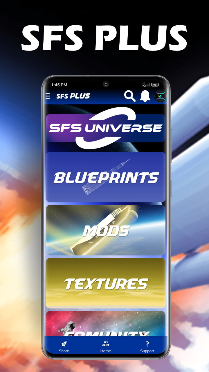 Blueprints, Texturas, Tutoriales, Comunidad, Mods y más para Spaceflight Simulator. Comparte tus creaciones. Chatea con otros jugadores. Conoce a otros jugadores. Tutoriales Y mucho más en SFS PLUS +30 Blueprints