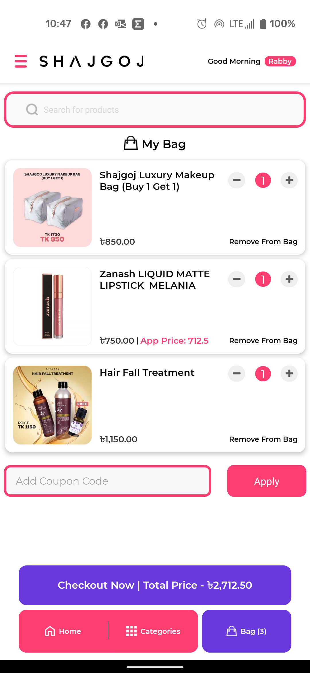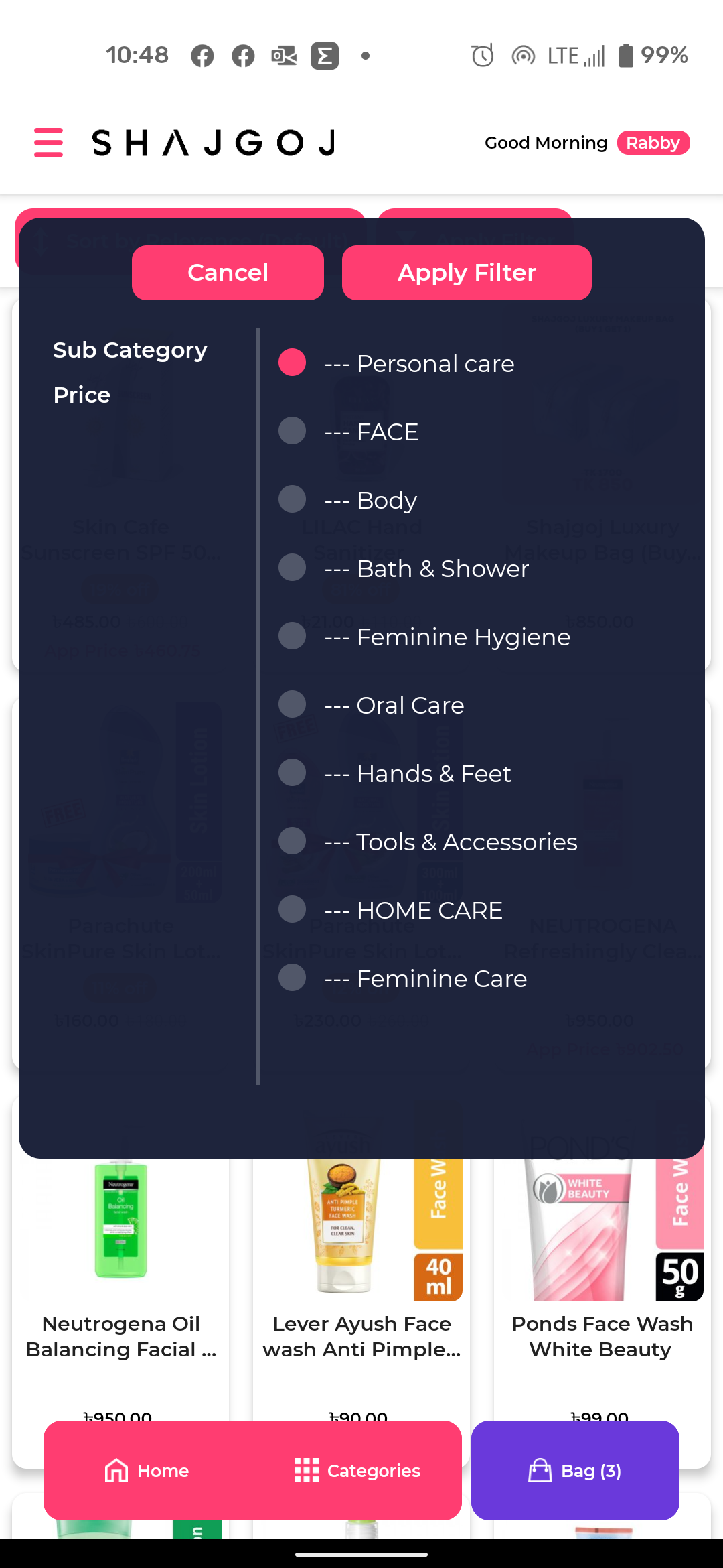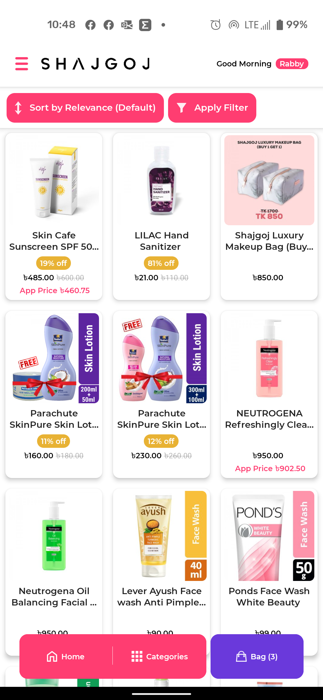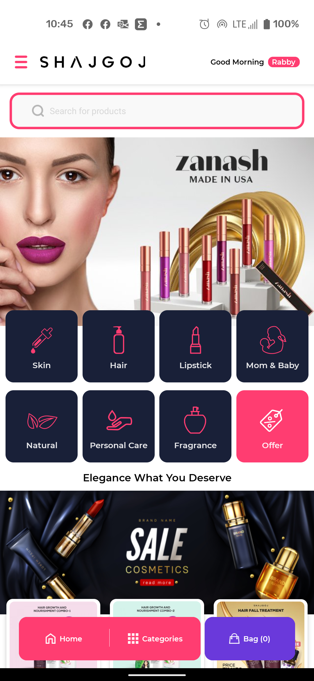 Shajgoj es la primera aplicación de compras de belleza de Bangladesh que no solo te permite elegir Más de 10.000 productos que abarcan más de 450 marcas, pero también proporcionan la consulta de belleza necesaria con respecto a esto. Explore la mayor colección de cosméticos, productos para el cuidado de la piel y el cabello y compre de acuerdo con su elección, necesidad y presupuesto. Explore nuestra gama de productos completa de pies a cabeza y compre las mejores soluciones para usted - Regístrate para ofertas exclusivas y descuentos increíbles. - Inicie sesión en su cuenta Shajgoj y haga su pedido o vea su historial de pedidos - Compre por categoría y filtre por marca, precio, best sellers y recién llegados. - Revise la revisión detallada del producto escrita por los expertos en belleza. - Obtenga una consulta de belleza gratuita y una sugerencia de producto de acuerdo con su inquietud. - Califica y revisa tu producto comprado. - Las opciones de pago incluyen COD, bKash, banca por Internet, tarjeta de crédito / débito Descarga la aplicación para la mejor experiencia de compra. ¡Es como llevar la tienda en tu bolsa!