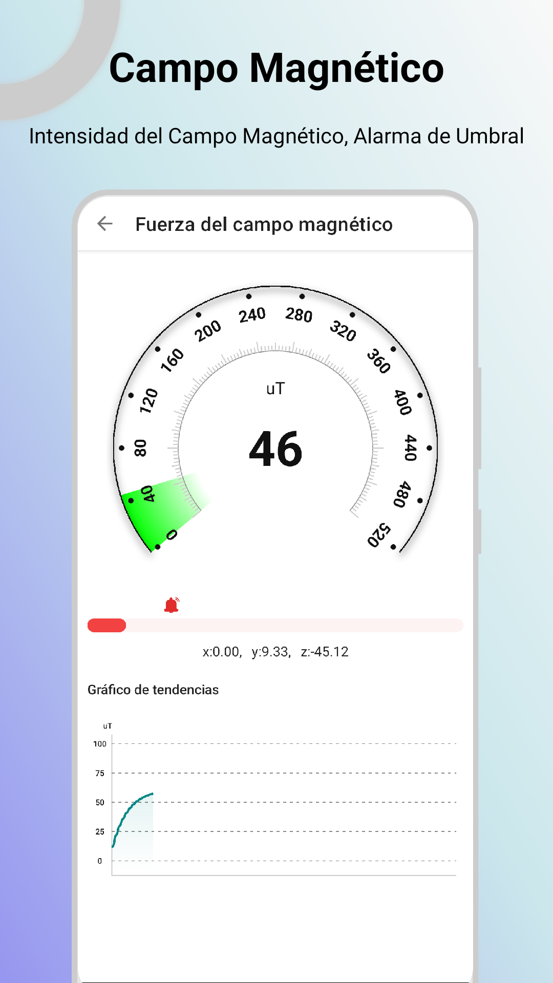 7. Campo magnético: detección de campo magnético, alarma de umbral;
