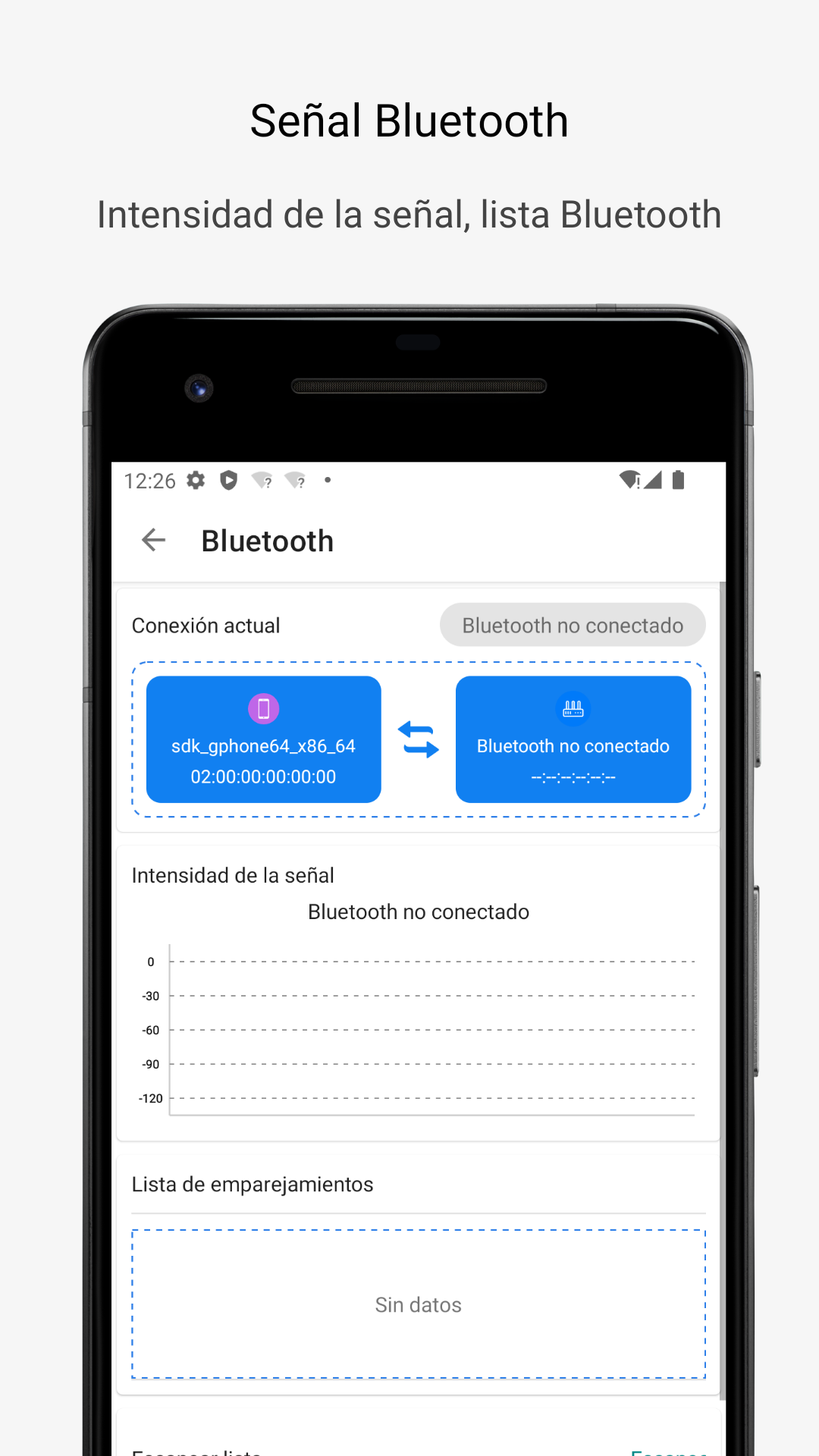 4. Señal Bluetooth: detecta la intensidad de la señal Bluetooth en tiempo real y obtiene información como la dirección MAC Bluetooth actualmente conectada. Consulte la lista de emparejados, escanee para descubrir más dispositivos y otras funciones.