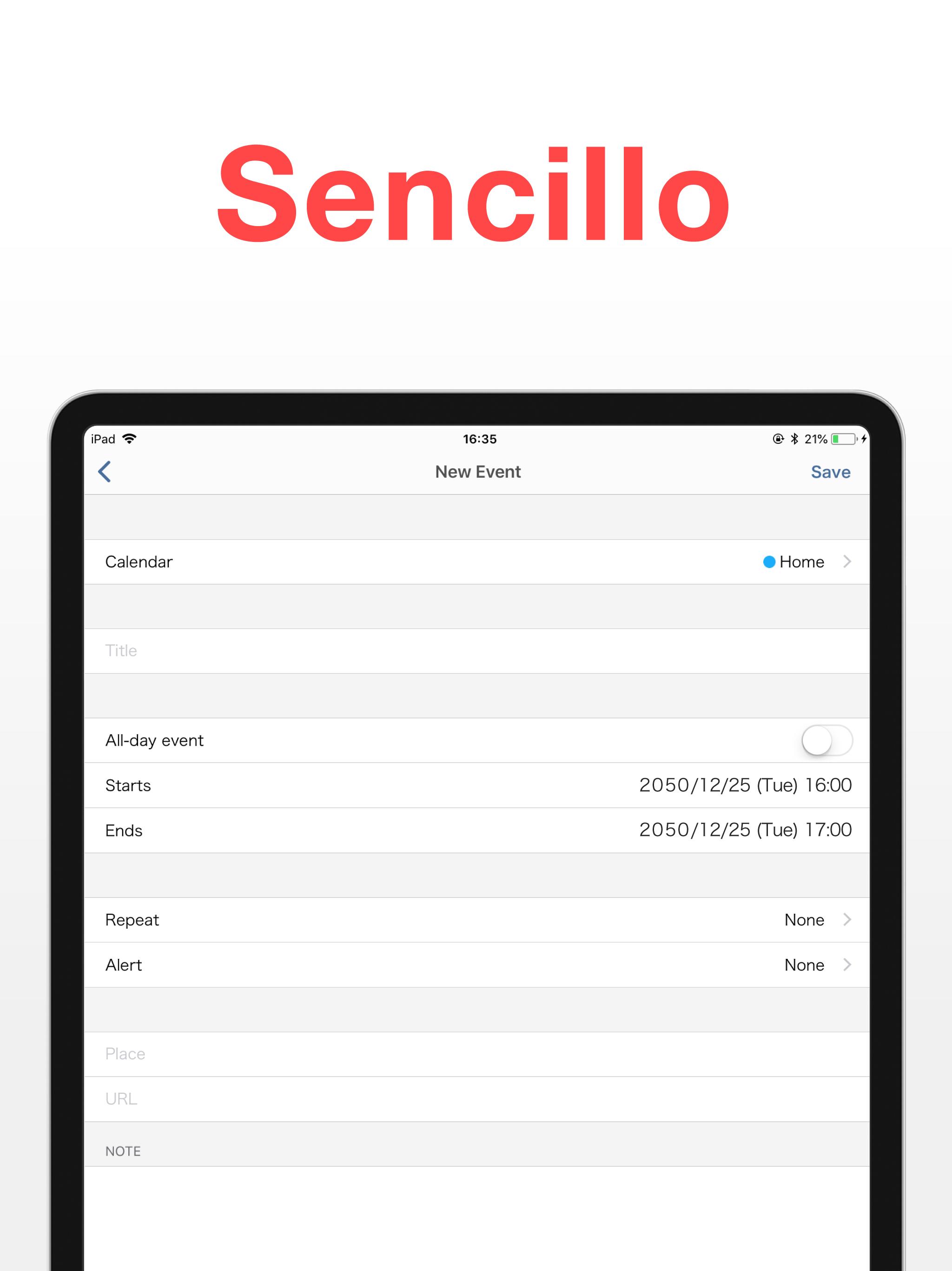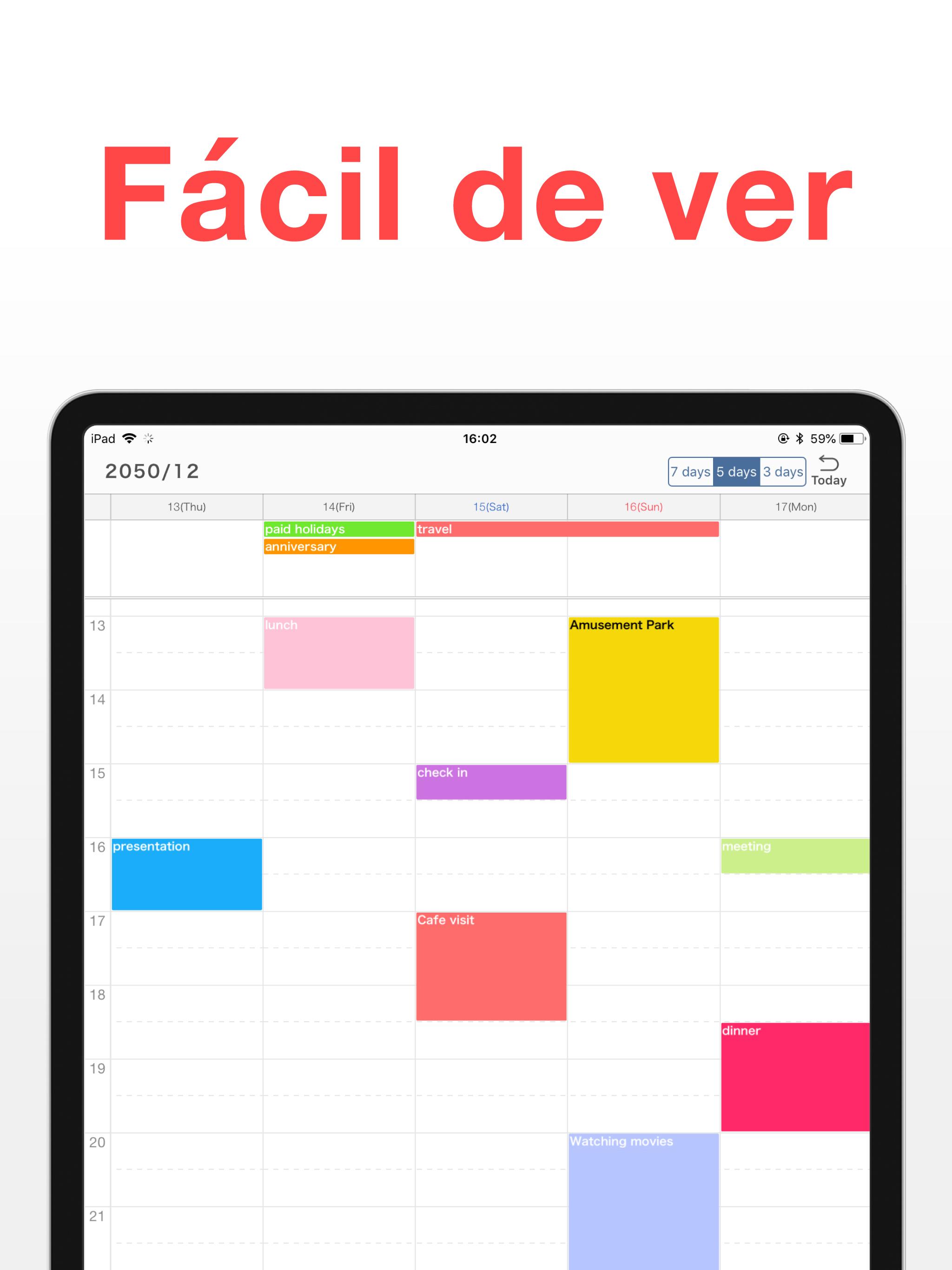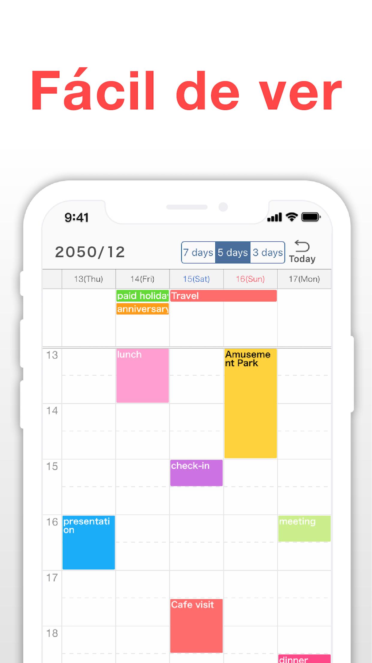 Mantenga la gestión del tiempo simple con la aplicación: un organizador gratuito para todas sus actividades: familia, trabajo, estudios, vacaciones y fechas importantes. Tan simple como el ABC, basta con un toque para abrir un planificador diario, elegir la hora y programar una tarea para cualquier día. También puede tomar notas y programar una alarma o recordatorio de una cita para no perderse nada. Simple Calendar también es una aplicación de listas fácil de hacer. Todas las actividades están organizadas con precisión con códigos de colores. No se necesita ningún esfuerzo para comprender cuándo trabajar, estudiar, pasar tiempo con sus seres queridos, practicar deportes. Planificador de horarios para todo • calendario de trabajo para mantener su productividad • calendario de citas para eventos de negocios • planificador de estudios • lista de verificación de tareas para el hogar • calendario de vacaciones para celebrar fechas importantes • organizador familiar Planifique con anticipación para un día, una semana o meses Planifique para el período de tiempo que desee. Elija un modo de visualización cómodo: un planificador diario para ver solo lo que está en la agenda de hoy o un calendario semanal para prepararse con anticipación. Calendario compartido para colegas, familiares, amigos Simple Calendar es un creador de horarios que se puede compartir Puede compartir su calendario de trabajo con colegas para sincronizar tareas o con la familia para que sepan cuándo está ocupado. Puede crear un calendario para compartir con su ser querido y planificar cenas o entrenamientos juntos. O sincronícelos con el horario de estudio de sus hijos y sepa exactamente cuándo recogerlos en la escuela. No se pierda nada con un recordatorio de tareas pendientes Con nuestro planificador por horas, no solo verá su rutina diaria, sino que también le recordará los eventos que se avecinan. Nada se le escapará de su calendario de tareas. Lo que hace que Simple Calendar sea útil: • Ajuste del tamaño de fuente (10 tamaños para que la aplicación sea agradable a la vista) • Varios modos de visualización para su programa semanal (7 días · 5 días · 3 días) • Codificación de colores para bloques de tiempo • Tome de notas • URL y mapas • Recordatorios • Calendario compartido (usando Google Calendar) • Se puede vincular con otras aplicaciones de administración del tiempo • Muchos colores de temas (20 colores) • Bloqueo de código de acceso para proteger la privacidad • Eliminar anuncios (compras dentro de la aplicación) Programe en cualquier lugar, incluso sobre la marcha. Simple Calendar es tan fácil de usar que seguramente se convertirá en su planificador de rutina favorito. Y gracias a un nuevo widget de calendario, será aún más fácil mantenerse organizado. ¡Aproveche su día al máximo! Nuestro programador de citas no le permitirá perderse ni una sola reunión de negocios. Busque una lista de verificación diaria para ver lo que está a punto de suceder y llegar a tiempo. Revise el calendario familiar compartido y haga planes con sus familiares. Ayude a sus hijos a crear un planificador escolar para que se mantengan productivos mientras aprenden. O puede crear un programa semanal con una lista de tareas pendientes compartida. Esta es una manera encantadora de mantenerse en contacto con amigos y familiares, ya que pueden consultar su agenda y unirse a sus actividades. También puede tomar notas y escribir cosas que estas personas necesitan saber. ¡Forme equipo con sus colegas! Cree un planificador de trabajo, organice todas las tareas y citas. Incluso puede mantener un calendario mensual y programar eventos para muchos días antes. Tenga en cuenta que puede utilizar la aplicación con y sin una cuenta de Google Calendar. También puede sincronizarlo con Outlook, iCloud, Exchange, Office365 y Facebook, etc. ¡Organice su vida en segundos y complete su lista diaria de tareas con éxito con nuestro planificador de horarios!