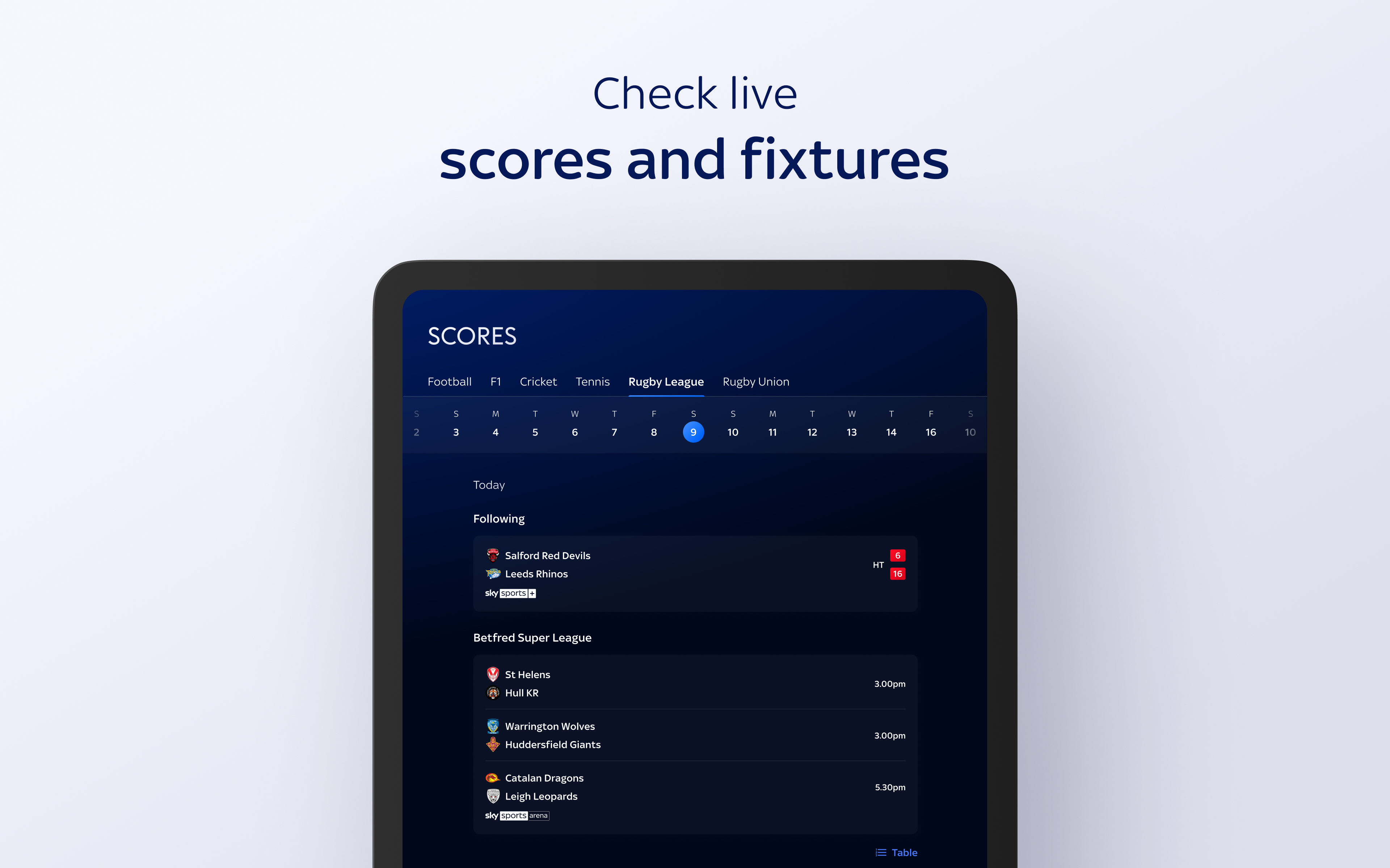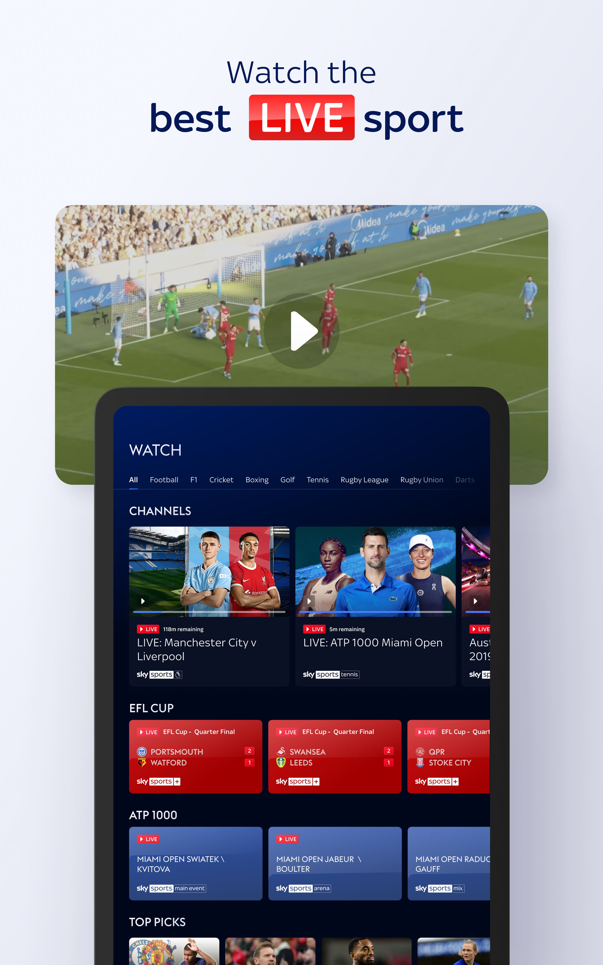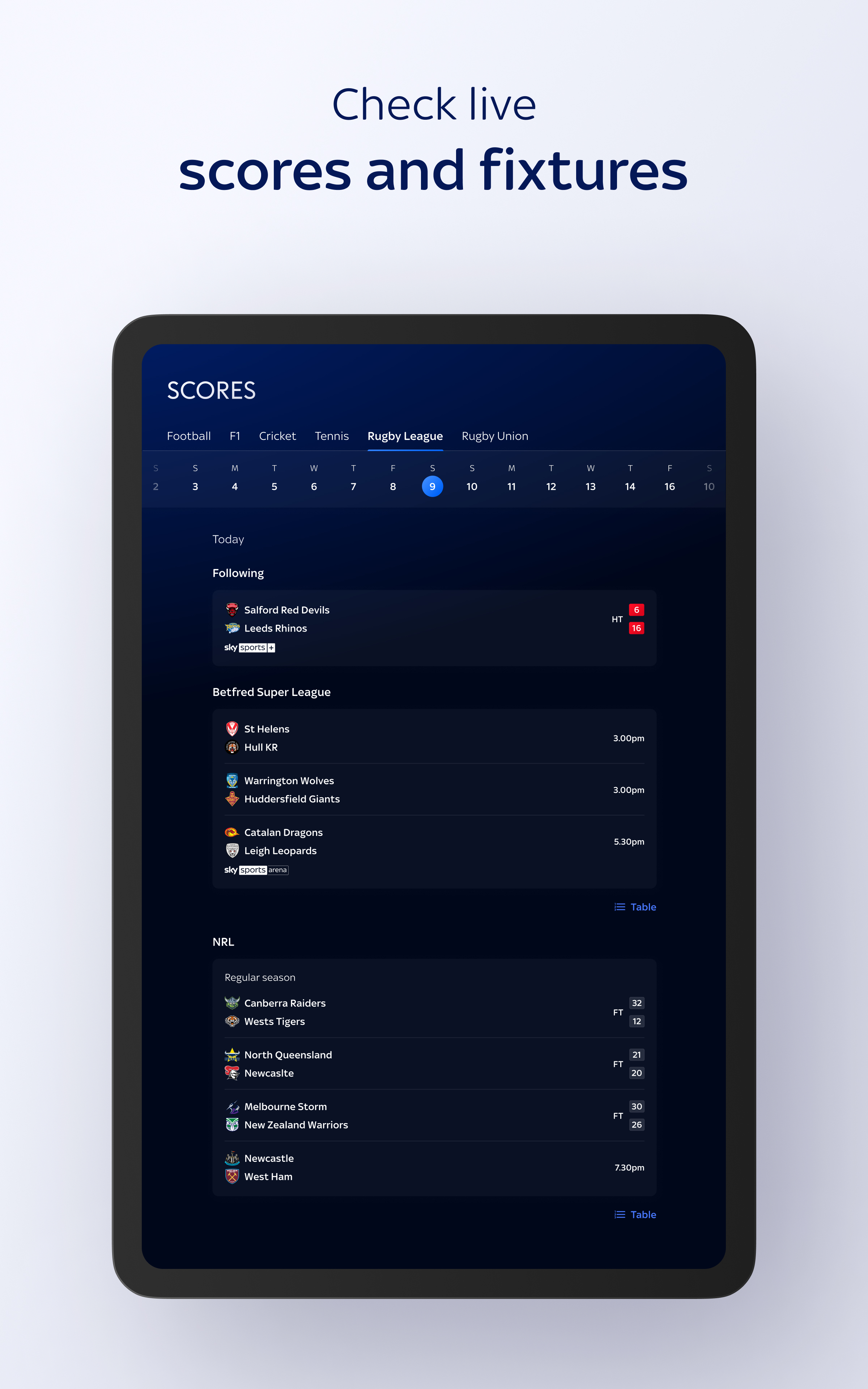 Recibe noticias de última hora sobre las historias más importantes, sigue a tus equipos y deportes favoritos, consulta resultados en vivo y ponte al día con lo más destacado de las competiciones más importantes. Con una suscripción a Sky Sports, mira también la mejor acción en vivo con acceso a todos los canales de Sky Sports. ¡Vea lo que está sucediendo en fútbol, F1, cricket, boxeo, golf, tenis, liga de rugby, rugby union, dardos, NFL, carreras, netball y más! SIGUE TUS FAVORITOS: Agrega tus equipos y deportes favoritos a tu pantalla de inicio y accede directamente a las transmisiones en vivo, las noticias y los momentos destacados que más te importan. MIRA SKY SPORTS EN VIVO: ¿Tienes una suscripción a Sky Sports? Vea los eventos deportivos más importantes EN VIVO con acceso a todos los canales de Sky Sports, así como transmisiones adicionales, todo directamente desde la aplicación. Premier League, EFL, WSL, SPFL, F1, tenis US Open, ATP y WTA Tours, Super League, Lions Tour, The Open, The Masters, NFL, IPL, The Hundred, Premier League Darts, Netball: ¡lo tenemos cubierto! Sube a bordo con nuestras cámaras para pilotos de F1, cambia entre múltiples partidos de tenis o mira clips de fútbol de momentos clave mientras disfrutas del partido en vivo. Acércate más que nunca a la acción. SÓLO en la aplicación Sky Sports. Si tienes Sky Mobile, también puedes transmitir en la aplicación Sky Sports sin usar tus datos móviles*. REFLEJOS: Mire una selección inmejorable de videos que incluyen momentos destacados de partidos, noticias, entrevistas y análisis GRATIS dentro de la aplicación Sky Sports. PUNTOS DE VIDA: Manténgase actualizado con los resultados en vivo de fútbol, críquet, tenis, liga de rugby y rugby union, así como con los tiempos de F1 en vivo en todas las sesiones de cada Gran Premio. Tenga en cuenta: La transmisión en vivo y videos seleccionados solo están disponibles en el Reino Unido e Irlanda. Es posible que se apliquen cargos adicionales de red móvil y/o WiFi. Para obtener más información sobre cómo Sky utiliza sus datos, consulte nuestro aviso de privacidad en https://www.sky.com/help/articles/privacy-hub-home Lea atentamente los términos y condiciones antes de utilizar la aplicación. *Requiere un plan de tiempo aire de Sky Mobile activo y al menos 50 MB de datos. Vaya al sitio web de Sky para obtener más información.