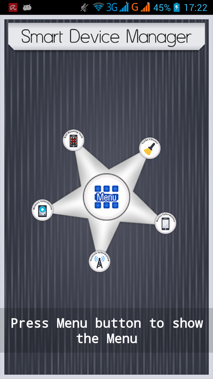 Ahora la gestión de sus dispositivos inteligentes no es un gran problema. Administrador de dispositivos inteligentes tiene todas las herramientas necesarias en el mismo si se trata de Cache Cleaner, Dispositivo de información, información de memoria del dispositivo y el asesino de tareas. Este administrador de dispositivos único y elegante cuenta con cinco módulos en él, que incluyen: 1. Información de la memoria 2. Task Killer 3. Información de la Red Limpiador 4. Caché 5. Información y dispositivos. Con esta aplicación se puede comprobar el estado de la memoria de su dispositivo, Matar a todas las tareas que no necesarios para aumentar su velocidad, llegar Red wifi etc información de la información y de dispositivos de forma gratuita. Así que disfruten de esta aplicación gratuita y la velocidad y animarnos.