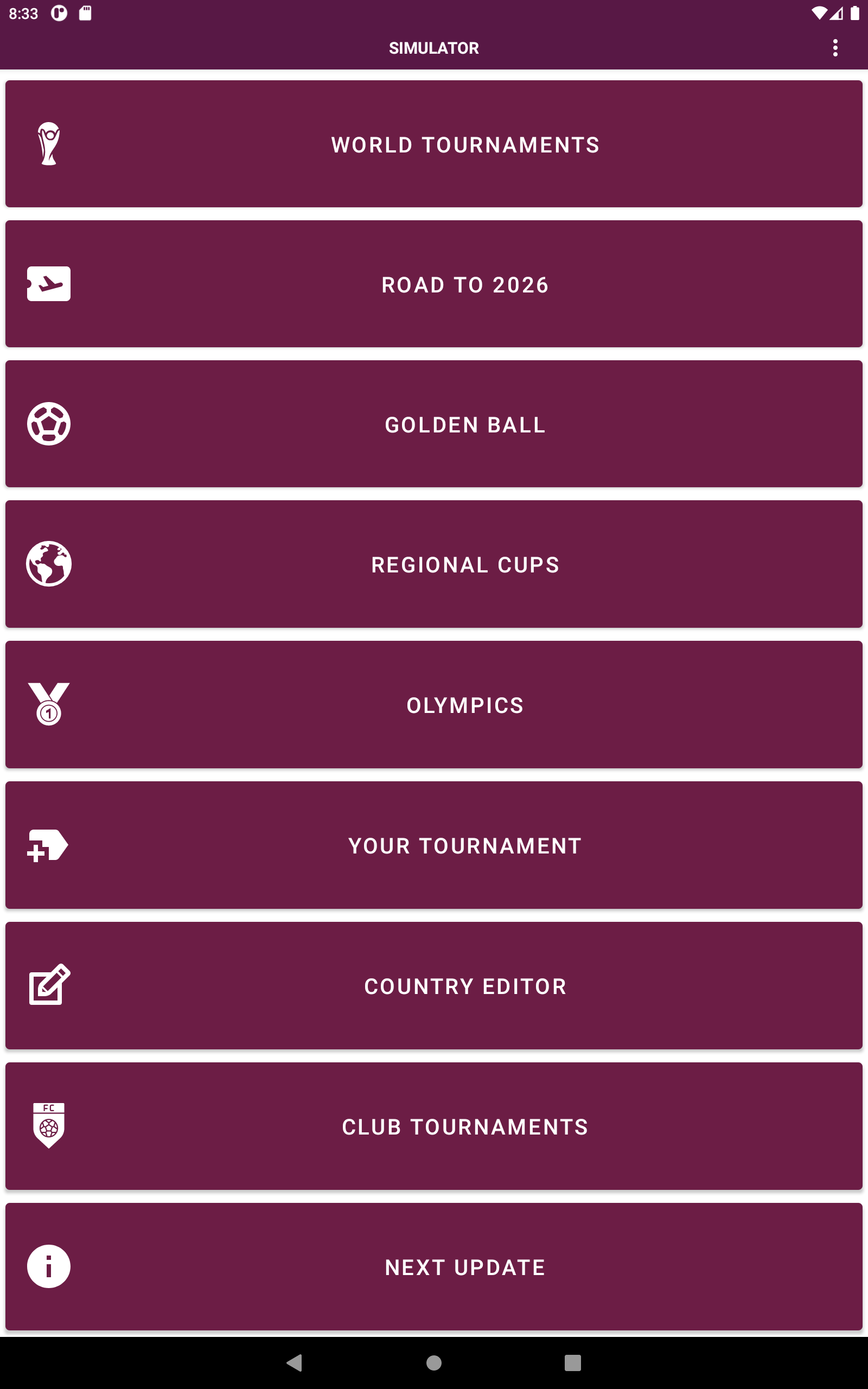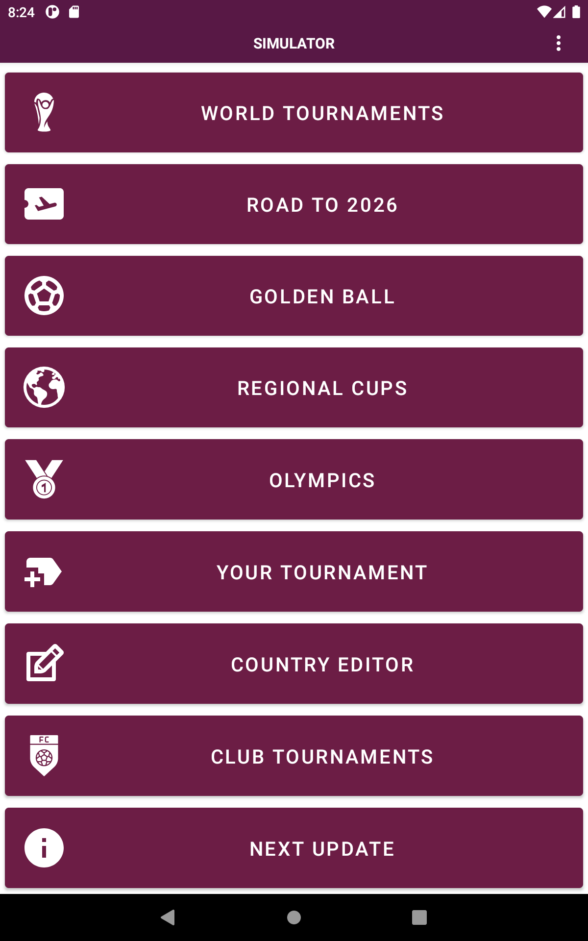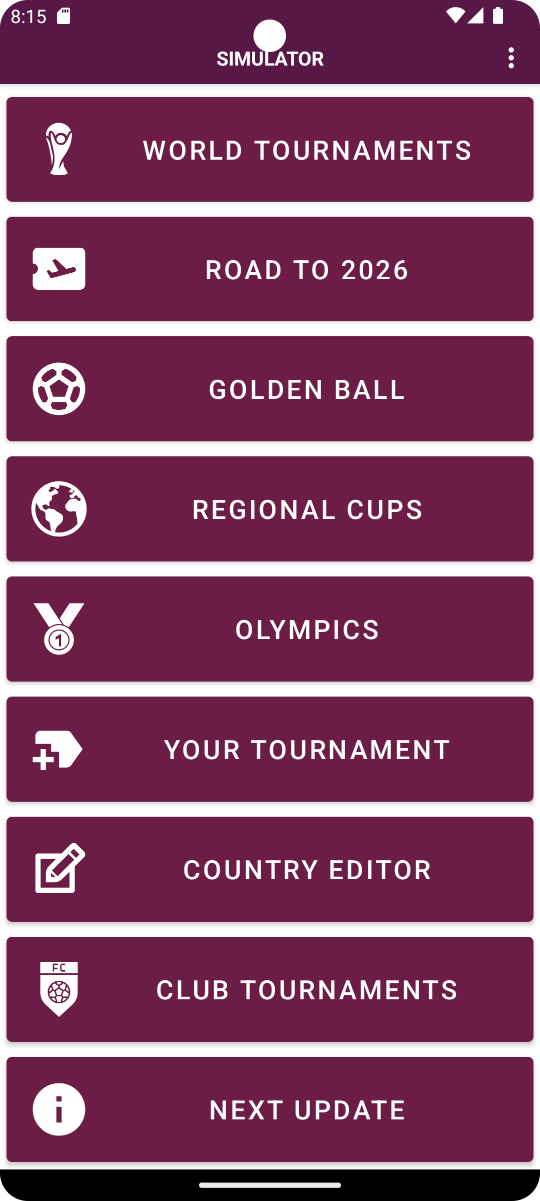 ¡Sumérgete en la emoción de los torneos más prestigiosos del mundo con nuestra increíble aplicación de simulación de resultados de fútbol! Revive la emoción de cada edición de los torneos mundiales, desde la icónica década de 1930 hasta la actualidad. ¡Experimente la intensidad de torneos anteriores como los emocionantes 2022, 2018, 2014 y muchos más, e incluso eche un vistazo al futuro con las próximas ediciones de 2026 y 2030! Además de los torneos de la Copa Mundial, sumérgete en las emocionantes eliminatorias de la Copa 2026 para vivir una experiencia auténtica. No te pierdas las Copas Mundiales Femeninas, las Copas Mundiales Sub-20 y la emoción de los Juegos Olímpicos, donde puedes crear tu propio medallero. Explore una amplia variedad de copas regionales en todos los continentes, desde las vibrantes competencias en las Américas hasta los cautivadores torneos en Europa, Asia, África y Oceanía. ¿Prefieres los torneos de clubes? Lo tenemos cubierto con torneos de renombre como Copa Libertadores, Sudamericana, Liga de Campeones, Europa, Conferencia, Ligas, Copas Nacionales y mucho más. Da rienda suelta a tu creatividad creando tu propio torneo personalizado. Seleccione equipos, grupos, anfitriones, puntos por victoria y más. Incluso puedes editar y crear equipos, así como personalizar jugadores para cada equipo según tus preferencias. Con más de 220 países y 1500 clubes disponibles, nuestra aplicación ofrece una variedad incomparable de opciones para disfrutar de la simulación de resultados deportivos como nunca antes.
