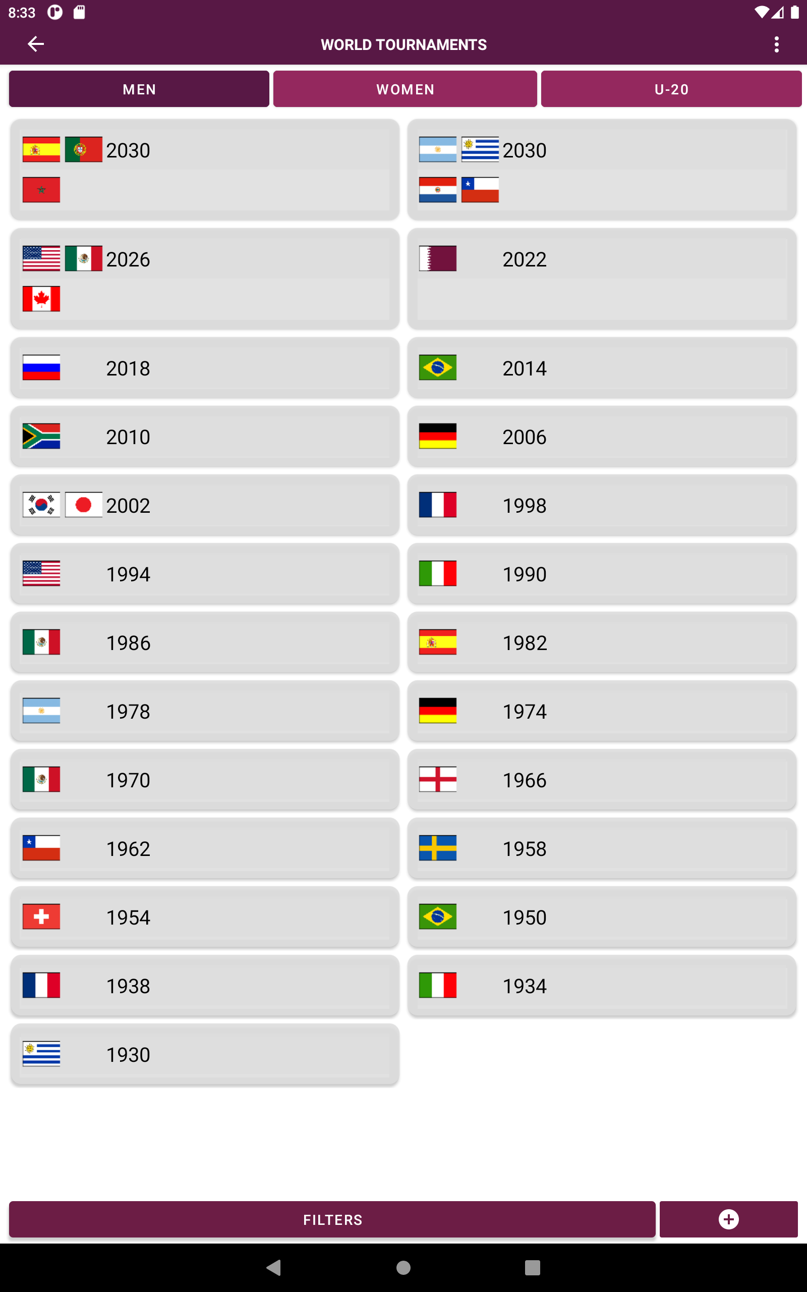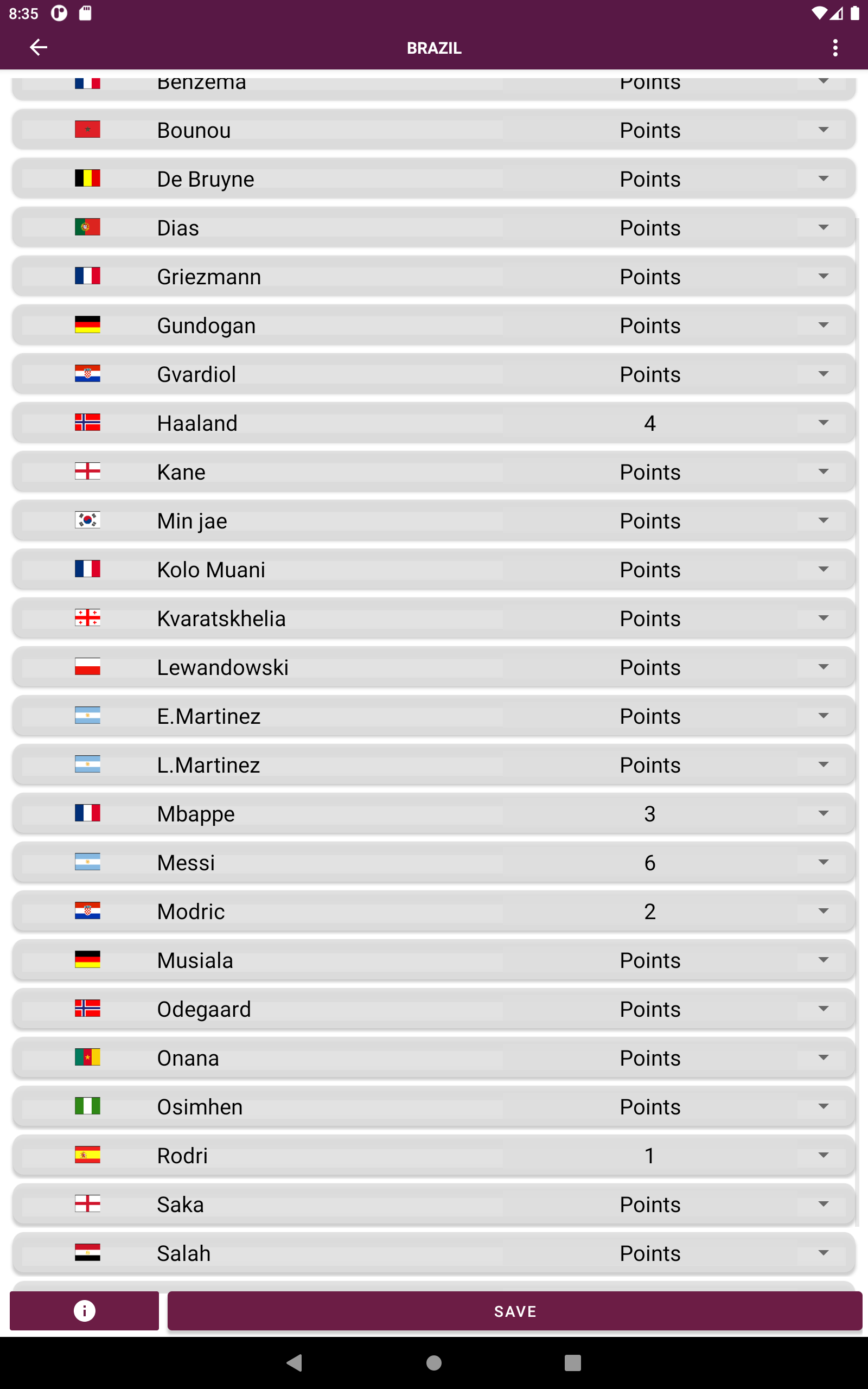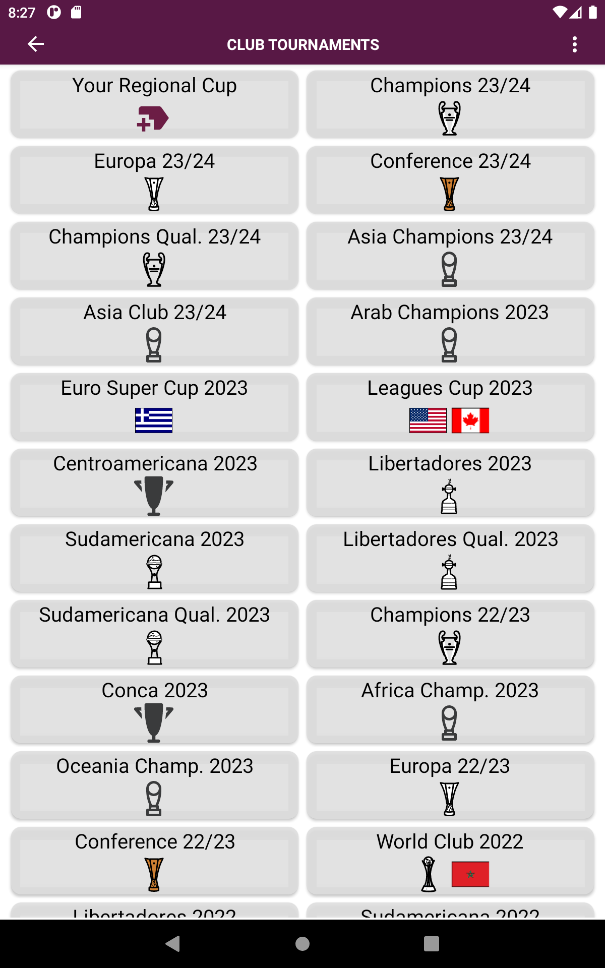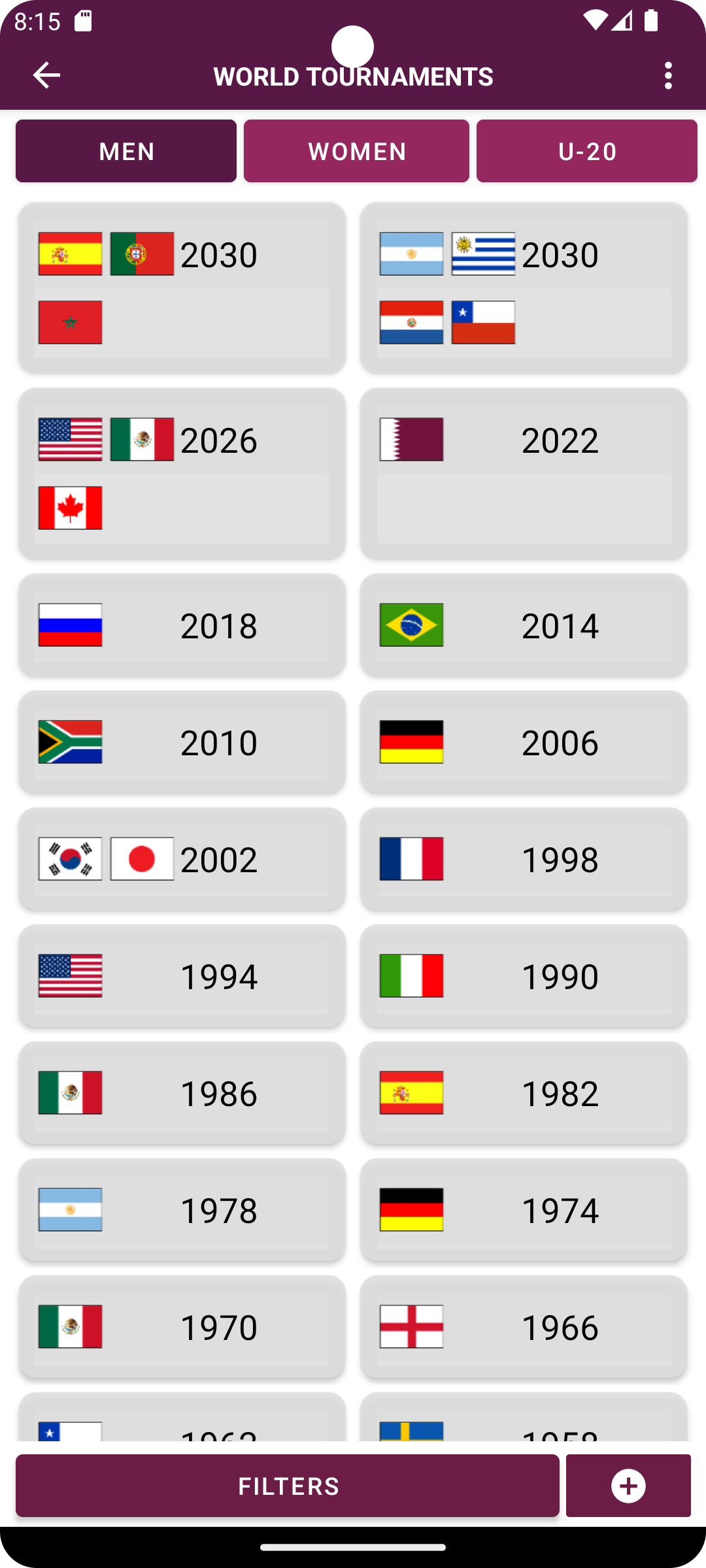 ¡Sumérgete en la emoción de los torneos más prestigiosos del mundo con nuestra increíble aplicación de simulación de resultados de fútbol! Revive la emoción de cada edición de los torneos mundiales, desde la icónica década de 1930 hasta la actualidad. ¡Experimente la intensidad de torneos anteriores como los emocionantes 2022, 2018, 2014 y muchos más, e incluso eche un vistazo al futuro con las próximas ediciones de 2026 y 2030! Además de los torneos de la Copa Mundial, sumérgete en las emocionantes eliminatorias de la Copa 2026 para vivir una experiencia auténtica. No te pierdas las Copas Mundiales Femeninas, las Copas Mundiales Sub-20 y la emoción de los Juegos Olímpicos, donde puedes crear tu propio medallero. Explore una amplia variedad de copas regionales en todos los continentes, desde las vibrantes competencias en las Américas hasta los cautivadores torneos en Europa, Asia, África y Oceanía. ¿Prefieres los torneos de clubes? Lo tenemos cubierto con torneos de renombre como Copa Libertadores, Sudamericana, Liga de Campeones, Europa, Conferencia, Ligas, Copas Nacionales y mucho más. Da rienda suelta a tu creatividad creando tu propio torneo personalizado. Seleccione equipos, grupos, anfitriones, puntos por victoria y más. Incluso puedes editar y crear equipos, así como personalizar jugadores para cada equipo según tus preferencias. Con más de 220 países y 1500 clubes disponibles, nuestra aplicación ofrece una variedad incomparable de opciones para disfrutar de la simulación de resultados deportivos como nunca antes.