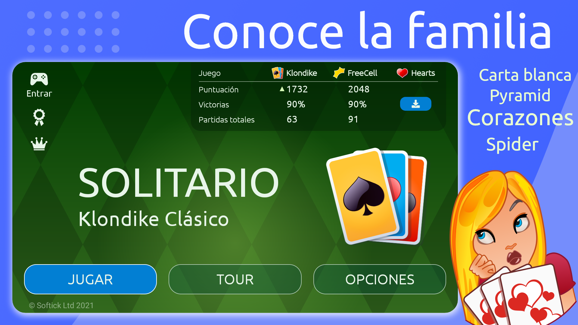 ¡Descubre la versión mejorada de Solitario Clásico, el querido juego de cartas conocido como Solitaire, Klondike o Paciencia! Aquí no solo ponemos a prueba tu habilidad, sino también tu paciencia y estrategia, brindándote una experiencia de entretenimiento auténtica, emocionante y competitiva. - Juega al Solitario en cualquier dispositivo Android Llevamos más de 10 años optimizando Solitario para que puedas disfrutarlo en cualquier dispositivo Android, ya sea un teléfono compacto o una tablet amplia. Juega en el metro, en el sofá o donde quieras y ejercita tu mente en cualquier momento con los juegos de Solitario de Softick. - Opciones de juego para todos los gustos Con modos de juego como "Repartir por 1", "Repartir por 3" y "Vegas", puedes elegir la dificultad y el estilo que prefieras. Además, ofrecemos características adicionales: diferentes niveles de dificultad, soluciones automáticas, clasificaciones y rankings, y competiciones de temporada para añadir emoción y retos constantes. Tanto principiantes como expertos encontrarán una experiencia adaptada a su nivel. - Experiencia de juego suave y visualmente amigable Nos aseguramos de que jugar al Solitario sea una experiencia cómoda y fluida. No necesitas precisión exacta para mover las cartas; nuestro diseño intuitivo facilita el juego para que puedas concentrarte en tu estrategia. Además, cuidamos tus ojos con un diseño visualmente agradable que minimiza la fatiga visual. Explora nuestro tutorial interactivo de bienvenida para familiarizarte rápidamente con todas las funciones. - Personalización total para un juego único Dale tu toque personal al juego con nuestras opciones de personalización. Cambia fondos, elige barajas, ajusta los tamaños de las cartas y hasta personaliza el fondo con una imagen propia. Crea un ambiente único y agradable para tus partidas de Solitario. - Compite y mide tu rendimiento Con nuestro sistema de puntuación ELO, inspirado en el ajedrez, podrás competir contra jugadores de todo el mundo o simplemente superarte a ti mismo. Consulta tus estadísticas personales, analiza tu progreso y celebra tus logros. La competencia se adapta a tus intereses: compite globalmente o disfruta del juego en solitario. - Descarga gratuita con soporte opcional sin anuncios Nuestra aplicación de Solitario es completamente gratuita y apoyada por anuncios, con una opción para eliminarlos si prefieres una experiencia sin interrupciones. - ¡Descarga ahora y únete a la comunidad de Solitario! ¿Listo para comenzar? Descarga la aplicación ahora y sumérgete en el mundo de Solitario Klondike. Además, te invitamos a explorar nuestras otras aplicaciones de juegos de cartas, como Carta Blanca y Pirámide. Si te gusta el juego, una reseña positiva o valoración en Google Play nos ayuda a crecer y llegar a más usuarios. Y si tienes alguna consulta, nuestro equipo de soporte multilingüe está aquí para ayudarte. ¡Descarga Solitario Klondike y disfruta de una experiencia clásica con un toque moderno!