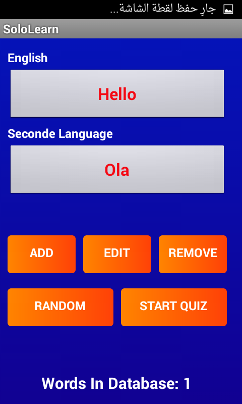 SoloLearn allows you to learn languages quickly and effectively. It allows you to add the words you have learned. Of course, English is a native language and you can add the corresponding word in another language you want to learn. You can also edit or delete words and browse them in an easy and quick way. You can also test yourself to know the level of your progress and the speed of learning the words of the language you have chosen with " Start Quiz " :)