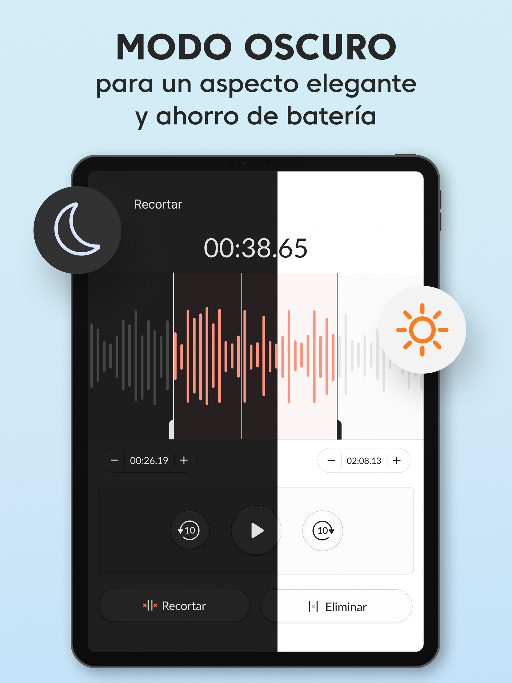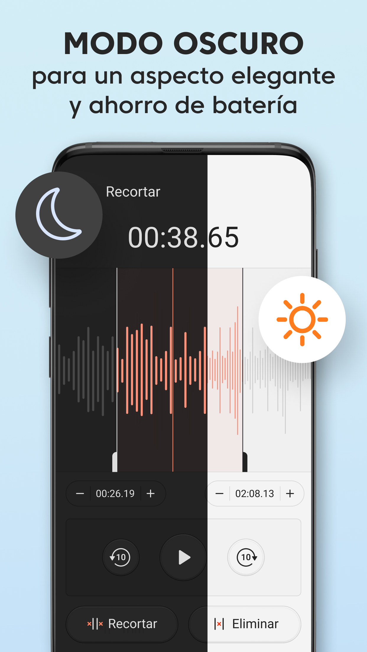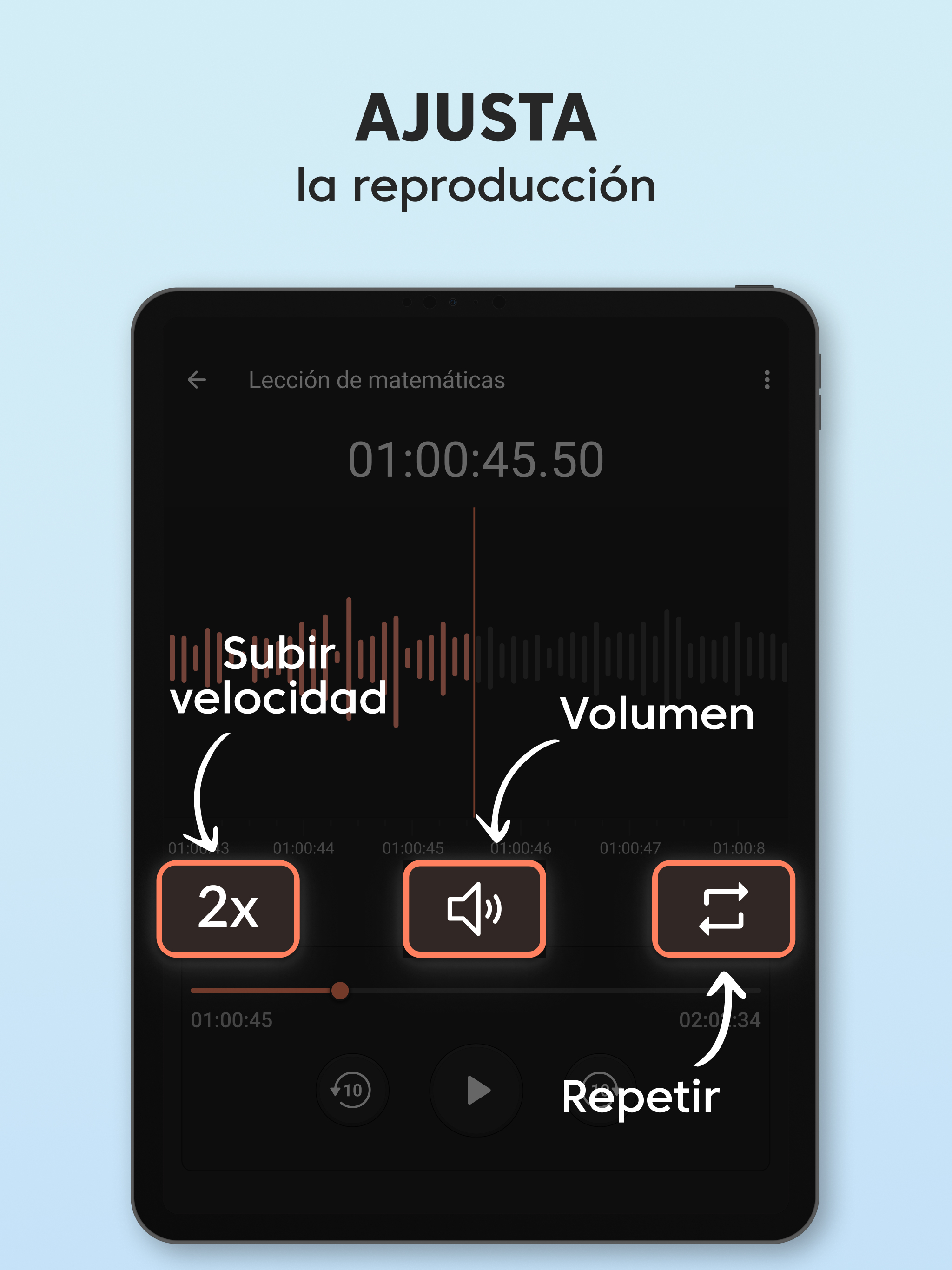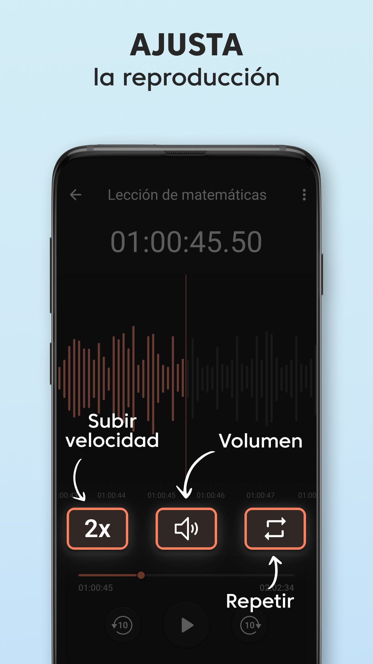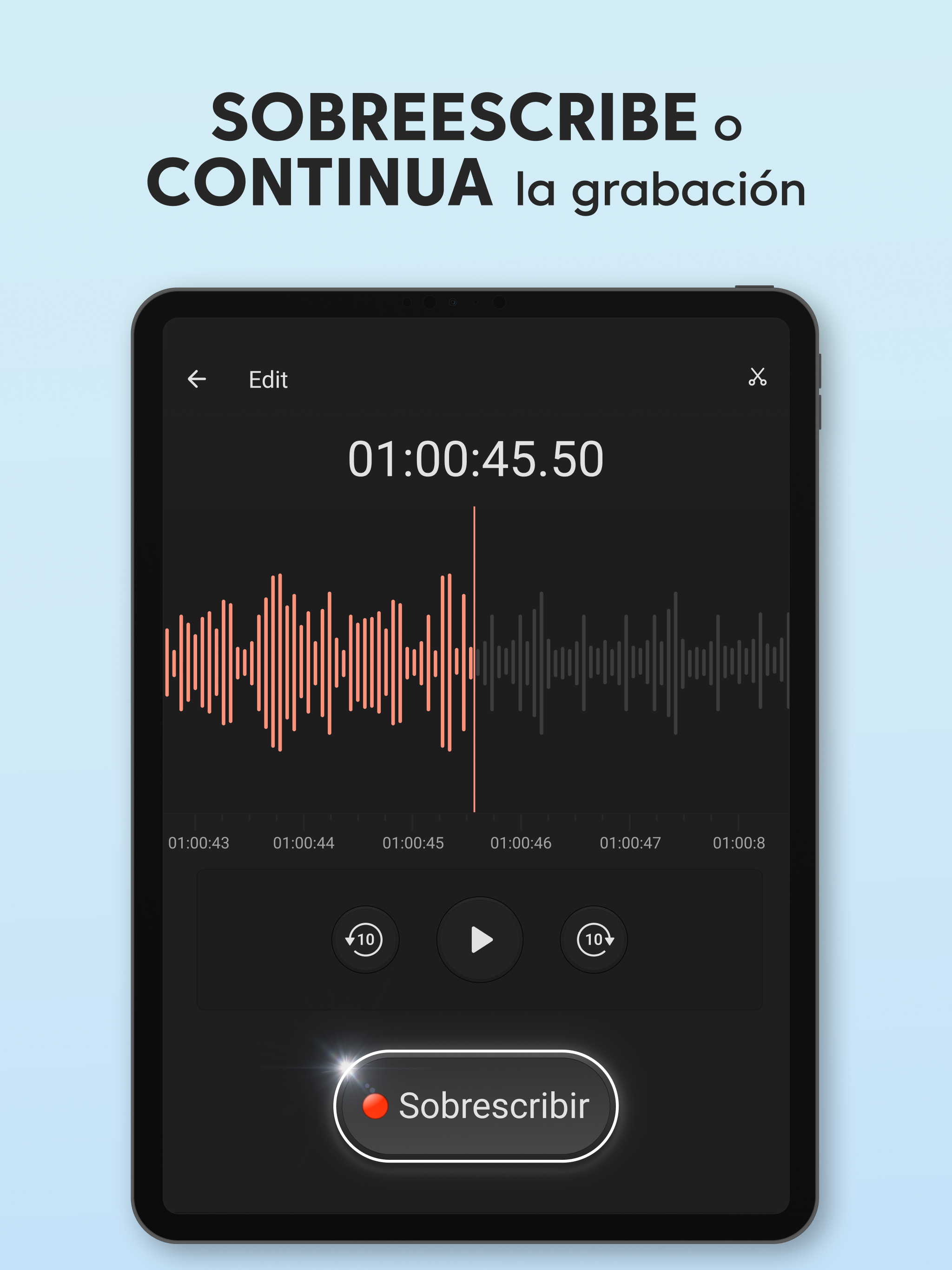 Grabadora de Voz Plus gratis es una aplicación de grabación de audio limpia y bien diseñada que es fácil de usar y captura un sonido increíble. Grabar un mensaje de voz, un recordatorio, una canción encantadora, una nota de audio o hasta el canto de los pájaros siempre estará al alcance de tu mano con nuestra grabadora de audio. Grabadora de Voz Plus tiene un conjunto de funciones robustas para grabar, reproducir y compartir en redes sociales: GRABACIÓN Sobrescribe grabaciones al instante Solo pon en pausa la grabación actual, regrésala al inicio, arrastrando hacia atrás la línea de avance, y sobrescribe el audio desde el punto seleccionado. Impresionante calidad de audio con opciones de sonido mono y estéreo La Grabadora de Voz Plus es compatible con los formatos AAC y WAV de grabación de voz. Grabación en segundo plano Sigue grabando aunque la pantalla esté apagada, cuando presionas el botón Inicio, los controles de grabación se moverán a la barra de notificaciones para tener un acceso rápido. Guardado automático Si la grabación es interrumpida, se guarda automáticamente con el nombre predeterminado, así no perderás la voz o música que capturaste. Alternativamente, también puedes guardar la grabación bajo tus términos, o desechar la grabación si quieres volver a intentarlo. Tiempo de grabación ilimitado Captura archivos de audio de cualquier tamaño, el único límite para el tamaño de tu grabación es tu deseo y el tamaño de la memoria de tu teléfono. REPRODUCCIÓN Un minirreproductor y un reproductor de pantalla completa Un minirreproductor disponible en la lista de grabaciones te permite escuchar la grabación de inmediato, y el reproductor de pantalla completa ofrece una conjunto de funciones avanzadas de reproducción. Velocidad de reproducción ajustable Reduce la velocidad hasta 0.25x, y acelera al doble de la velocidad de reproducción normal hasta 2.0x usando el reproductor de audio integrado. Compartir en redes sociales Comparte con otros tus momentos especiales, notas, talentos e ideas. Controles convenientes para la reproducción de audio Arrastra la línea de avance para saltar a un punto específico de la grabación. Puedes usar la Grabadora de Voz Plus para una amplia variedad de actividades que involucran la grabación de audio y la reproducción de la voz o música capturadas: Para el trabajo Graba reuniones importantes en la vida real y en zoom Practica tus discursos antes de presentarlos en público. Crea recordatorios de voz para capturar ideas brillantes que salen de la nada. Graba entrevistas o conversaciones para transcribirlas más tarde. Para estudiar Obtén las calificaciones más altas con las grabaciones de lecciones y seminarios en tu bolsillo. Incluso si el orador está legos y hay ruido de interferencia, las configuraciones del micrófono en la aplicación garantizan una alta calidad del audio. Para practicar música Grábate y a otros tocando instrumentos musicales y cantando, ya sea una sesión de práctica, una lección, una audición o un concierto en vivo. Captura melodías antes de que las olvides para compartirlas con el mundo. La Grabadora de Voz Plus remplazará perfectamente tu micrófono en esta situación. Para situaciones cotidianas Usa la Grabadora de Voz Plus en situaciones donde es importante tener grabados los detalles importantes, como una visita al médico. Captura el sonido de momentos especiales de tu vida o diviértete haciendo tonos de llamadas. Si buscas una aplicación gratis de grabación de voz, pero no quieres tener que usar funciones complicadas, la Grabadora de Voz Plus es lo tuyo. Es rápida, receptiva y útil, y te permite grabar en prácticamente cualquier situación sin tantos problemas.