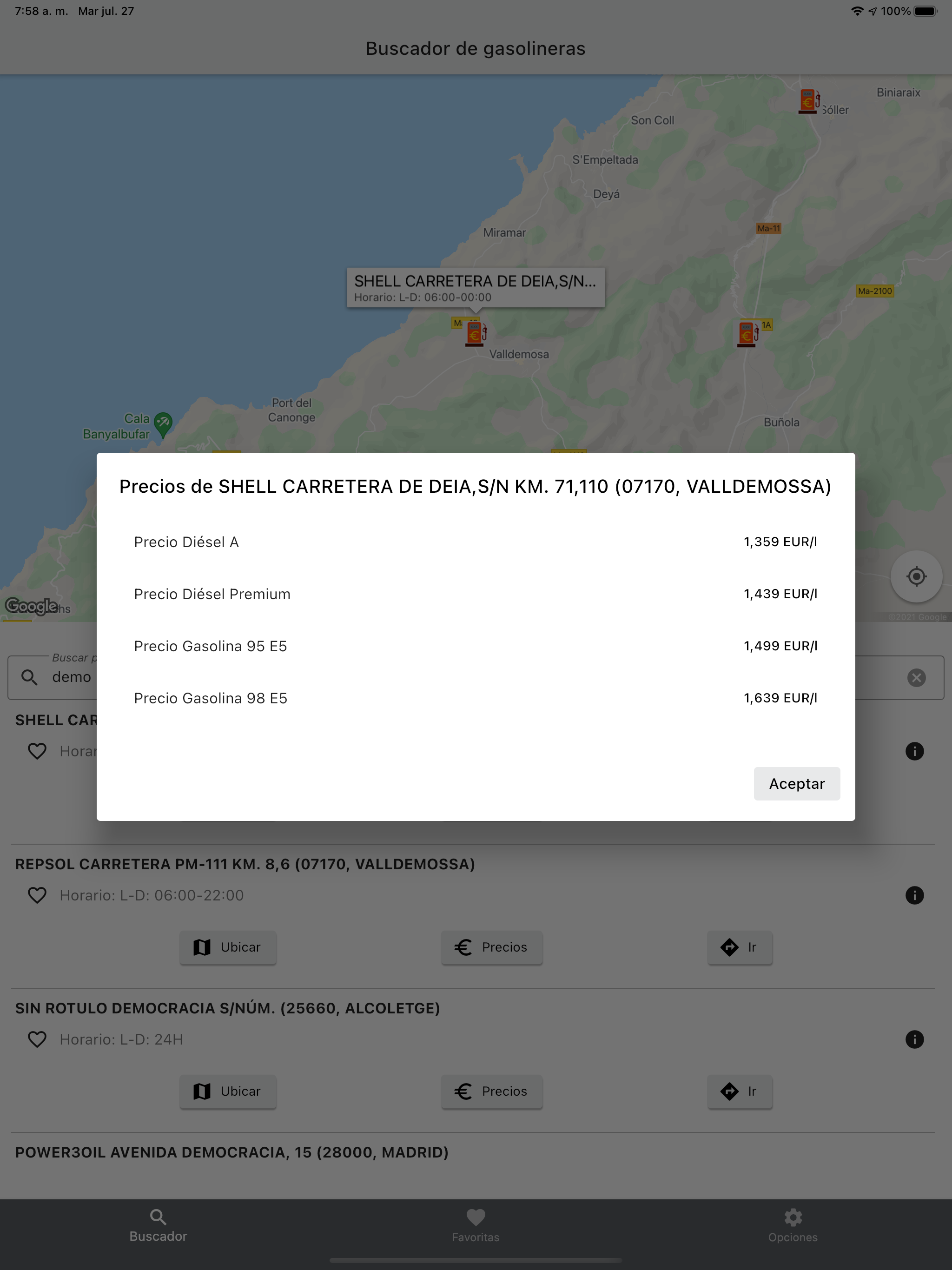 La forma fácil de saber los precios de cada estación de servicio en España. La app permite guardar las estaciones de servicio favoritas. Para ayudarte a encontrar la estación de servicio más cercana requiere la activación del GPS. Modo "Ir" compatible con la mayoría de aplicaciones de navegación de coche.