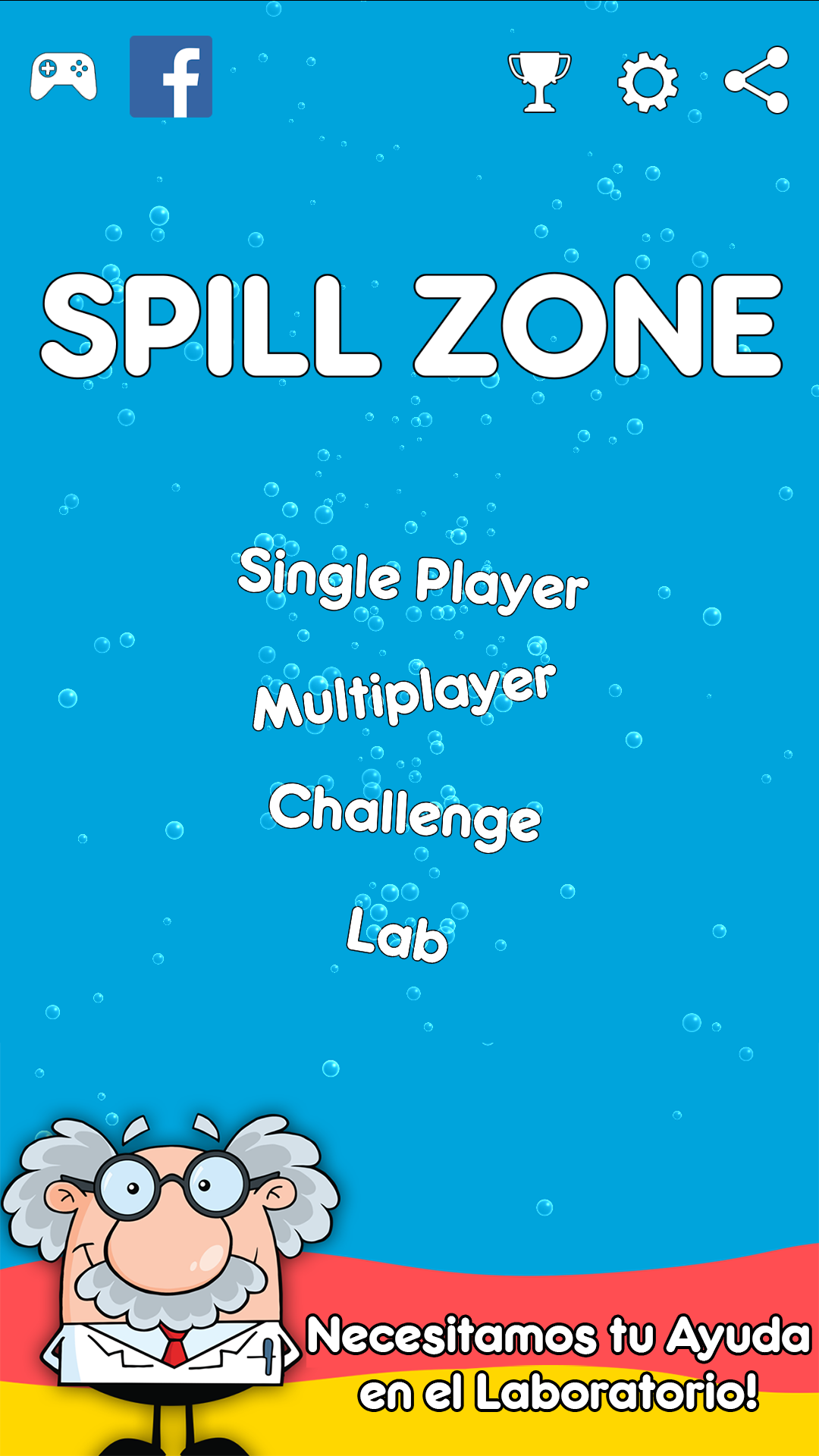 Querido científico- Estamos desesperados por tu ayuda en el laboratorio. Derrama un químico en otro hasta que quede un solo color. Ayúdanos a encontrar la mejor solución posible, pero ten mucho cuidado- demasiados derrames de químicos y tendrás que repetir el nivel! Spill Zone es un nuevo juego de acertijos único y desafiante donde la meta es convertir todos los químicos en un solo color. Solo sigue derramando hasta que todo este de un solo color. Aunque es un concepto sencillo, tendrás que experimentar y planear estrategias nuevas para completar el acertijo en la menor cantidad de movidas posible. Juega todos nuestros niveles en el modo de Single Player. Conéctate con Google Play o Facebook para ver en que nivel están tus amigos. También tenemos un modo de multijugador donde puedes competir con tus amigos a ver quien es el verdadero campeón de Spill Zone. Hay tanto que investigar en Spill Zone, te esperamos en el laboratorio así que “Experimenta. Falla. Repite”. CARACTERÍSTICAS 💧 200 acertijos únicos y desafiantes! 💧 El Daily Challenge entrega un acertijo nuevo cada día! 💧 Crea y comparte tus propios acertijos en el Laboratorio (disponible en el nivel 10) 💧 Comparte tu puntuación con tus amigos atreves de Google Play y Facebook 💧 Toma el tiempo que necesites para completar los acertijos, no es contra el reloj 💧 Multijugador de turno atreves de Google Play 💧 Colores brillantes y alegres 💧 Cambia estrellas por pistas en el juego para retractar una movida 💧 Desbloquea nuevos químicos y mas características del juego mientras juegas 💧 Vuelve a jugar los mismos niveles para obtener un puntaje perfecto y ganar mejores recompensas REGLAS 📋 Derrama un grupo de químicos en otro grupo adyacente hasta que quede un solo color 📋 Resuelve los acertijos en cantidad minima de movidas COMPARTE 👥 Ingresa con to cuenta de Google Play y Facebook para ver el puntaje de tus amigos 👥 Comparte el rango de tu nivel tocando en el icono de tu jugador 👥 Comparte tus premios y tus niveles después de haberlo completado desde el menú de Replay 👥 Puedes compartir tus creaciones dentro del laboratorio con un URL sencillo para que otros puedan importar y jugar tu acertijo Para información adicional sobre las estrellas, premios, y compras desde el app por favor visite nuestra pagina web: http://www.tmsoft.com/spillzone/ Visita el laboratorio de Spill Zone y descarga nuevos experimentos: http://spill.zone/lab
