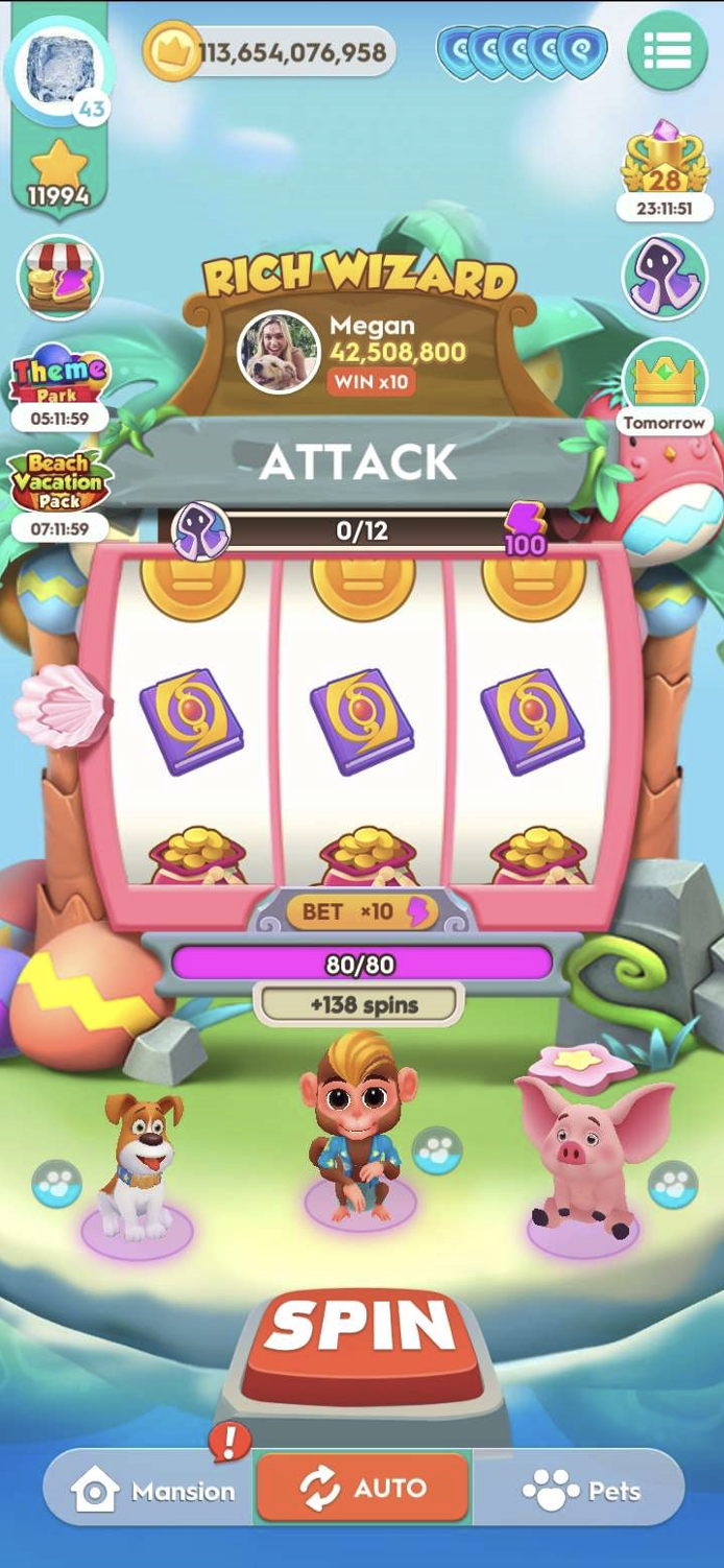 🐾 Explora la Mansión Mágica y reúne a tus mascotas favoritas. Cada mascota tiene una habilidad especial con intentos gratis para obtener una Superbonificación. Usa pienso para subir de nivel y potenciar a tus mascotas para aumentar las recompensas de bonificación.