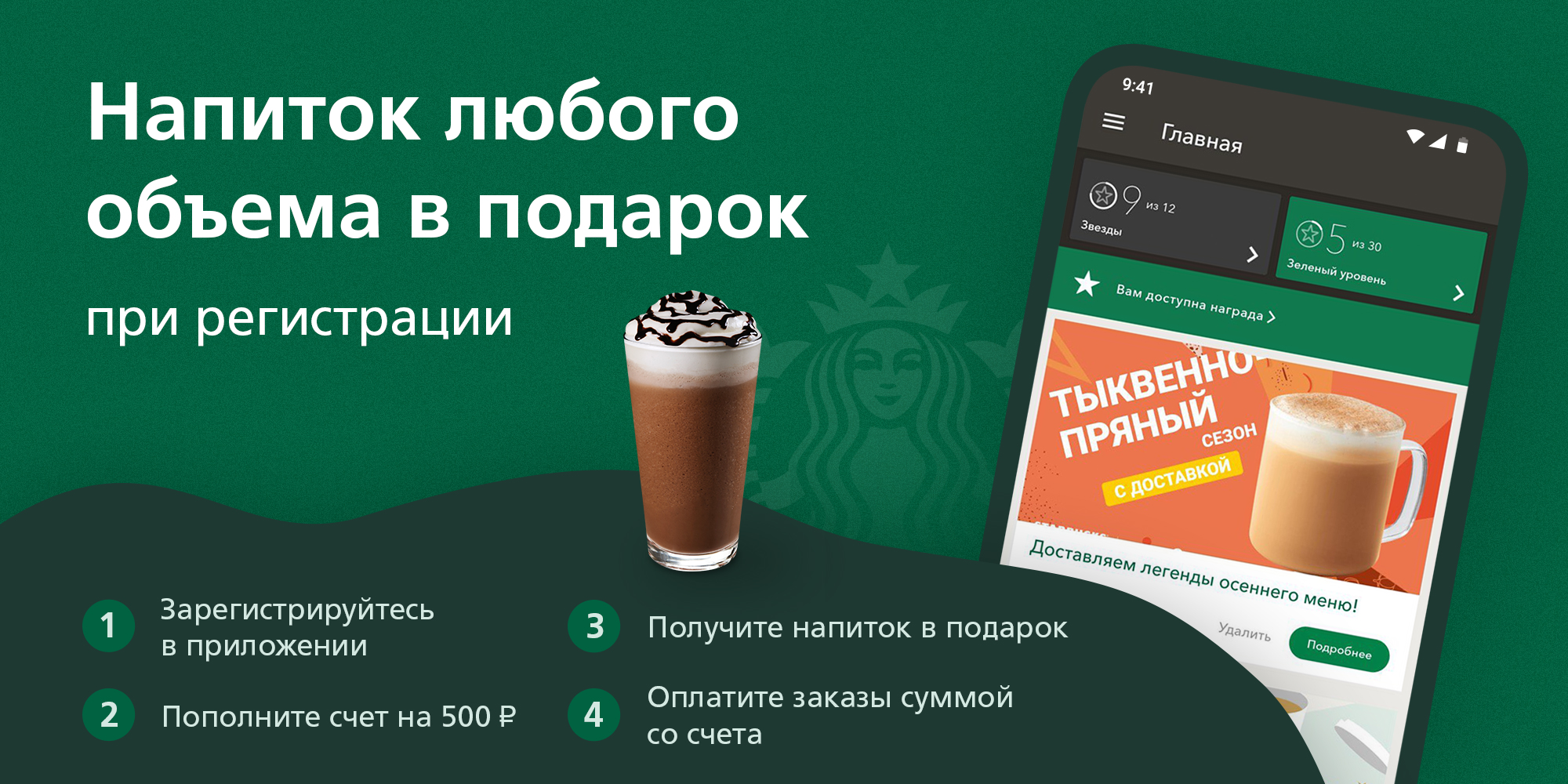 Присоединяйтесь к программе лояльности “Мои Награды Starbucks” и будьте всегда в курсе специальных предложений и эксклюзивных акций в приложении. Push-уведомления помогут вам не упустить самые актуальные скидки и предложения для членов клуба привилегий. Вместе с картой скидок вы также получаете возможность попробовать самые горячие новинки меню еще до того, как они будут доступны в продаже для всех.