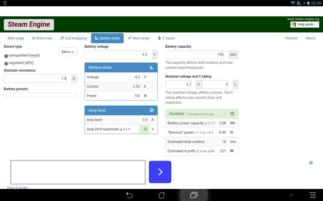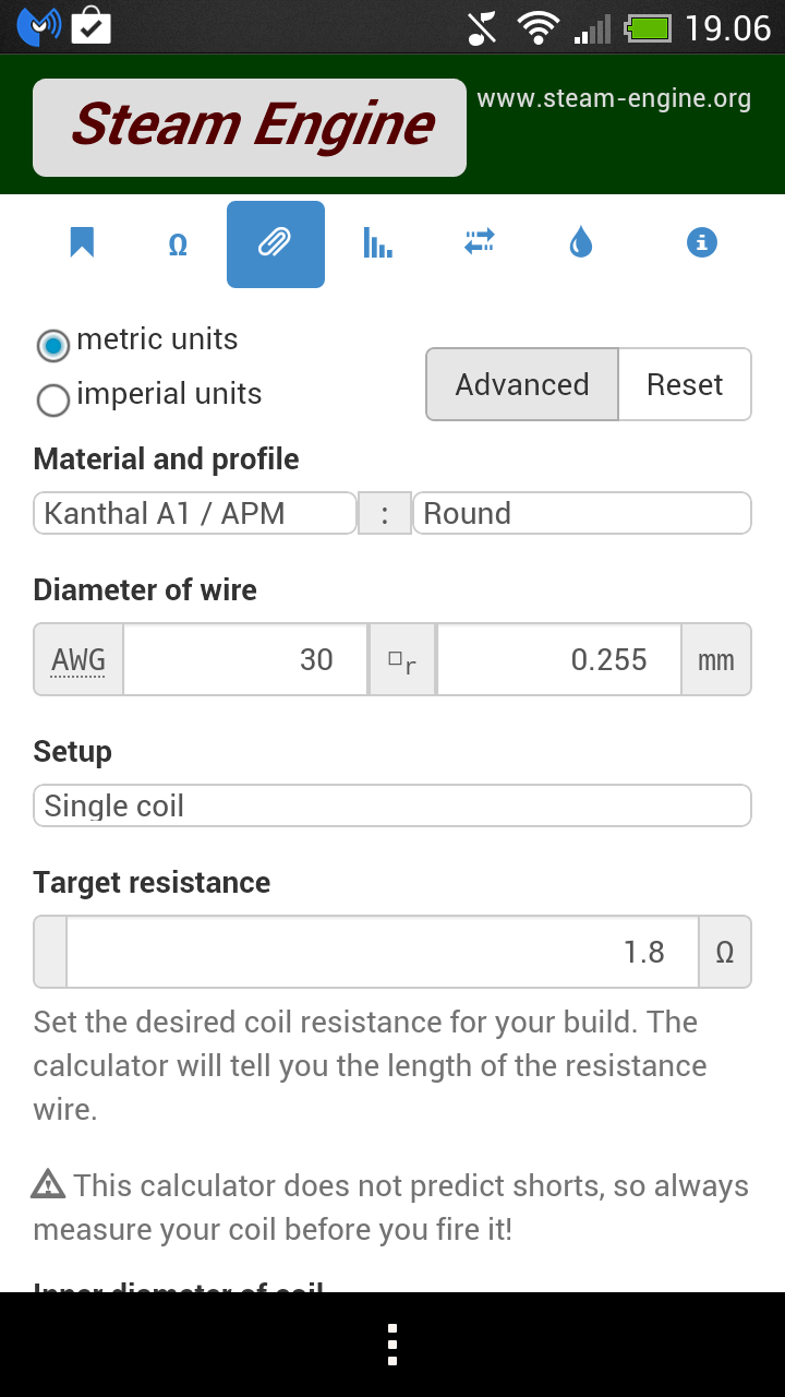 Note: If you are having problems entering decimal numbers because your onscreen keyboard does not show a period or a comma, here is the solution: Go to the settings tab and set input type to text. This will give you a full keyboard. The keyboard is different from device to device, so I had to make it user selectable.