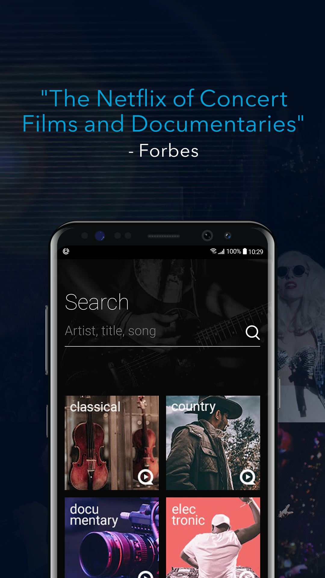 Transmita la colección más grande del mundo de actuaciones musicales de larga duración a pedido, películas de conciertos y documentales musicales. Qello Concerts transforma sus dispositivos conectados en la mejor experiencia cinematográfica de conciertos de música en vivo. ¡Dale a tus cabezas de cartel favoritos una ovación de pie desde el mejor asiento de la casa en cualquier lugar, en cualquier momento! Obtenga su asiento delantero para espectáculos de Queen, Pink Floyd, Paul McCartney, Aerosmith, Carlos Santana, Lady Gaga, Coldplay, Metallica, Eric Clapton, Nirvana, The Rolling Stones, Heart, Beyoncé, Bob Marley, Linkin Park, Metallica, Bon Jovi , Imagine Dragons, Mumford & Sons y muchos más. Ya sea que te guste el rock, el country, el pop, el jazz, lo encontrarás en Qello Concerts. La revista Billboard describió a Qello Concerts como "Un Netflix súper moderno para películas de conciertos". La descarga GRATUITA de la aplicación proporciona: * Una o más pistas gratuitas de miles de películas de conciertos y documentales musicales * Más de 30 canales gratuitos de momentos continuos de películas de conciertos en Qello TV en todos los géneros: rock, country, jazz, pop, metal, folk, blues y más * La oportunidad de rockear con tu air guitar, experimentar el dulce y conmovedor sonido de las leyendas del jazz, recorrer un antiguo camino rural con tu estrella country favorita y transmitir momentos pop inolvidables de la historia de la música. Un pase de acceso total de solo US $ 11,99 / mes le brinda acceso ilimitado a pedido a: * Transmita increíbles películas de conciertos de una gran selección de artistas icónicos y nuevos, de una amplia variedad de géneros, que incluyen rock, country, jazz y mucho más. * Documentales musicales premiados y aclamados por la crítica * Episodios favoritos de los mejores programas musicales, incluidos MTV Unplugged, álbumes clásicos de VH1, sesiones de Guitar Center, Front Row Center y más. * Setlists personales de tus momentos favoritos de películas de conciertos * Nuevas películas de conciertos y documentales musicales añadidos semanalmente. ¡Comience a transmitir las mejores películas de conciertos y documentales musicales con su PRUEBA GRATIS DE 7 DÍAS hoy! Cancela en cualquier momento. Todo el mundo habla de los conciertos de Qello: * Forbes: "Esta empresa es la Netflix de películas de conciertos y documentales" * USA Today: "Un paraíso para las películas musicales" * Fuse: "la aplicación de música número uno que debe descargarse" * Maxim: "Una de las aplicaciones más cautivadoras que hemos visto en cualquier tienda de aplicaciones" Si eres un fanático de la música, ¡Qello Concerts es imprescindible! Con todos los mejores documentales musicales y películas de conciertos en nuestra aplicación, la única parte difícil será elegir qué transmitir. ¡Prepárate para rockear! Una vez que finalice la prueba gratuita, su suscripción al Pase de acceso total de Qello Concerts se renovará automáticamente a US $ 11,99 cada mes. No tiene riesgos porque puede cancelar en cualquier momento. La suscripción se renueva automáticamente a menos que la renovación automática se desactive al menos 24 horas antes del final del período actual. No se permite la cancelación de la suscripción actual durante el período de suscripción activo. Política de privacidad de Stingray Qello: https://qello.com/privacy_policy Términos de Stingray Qello: https://qello.com/terms_of_use