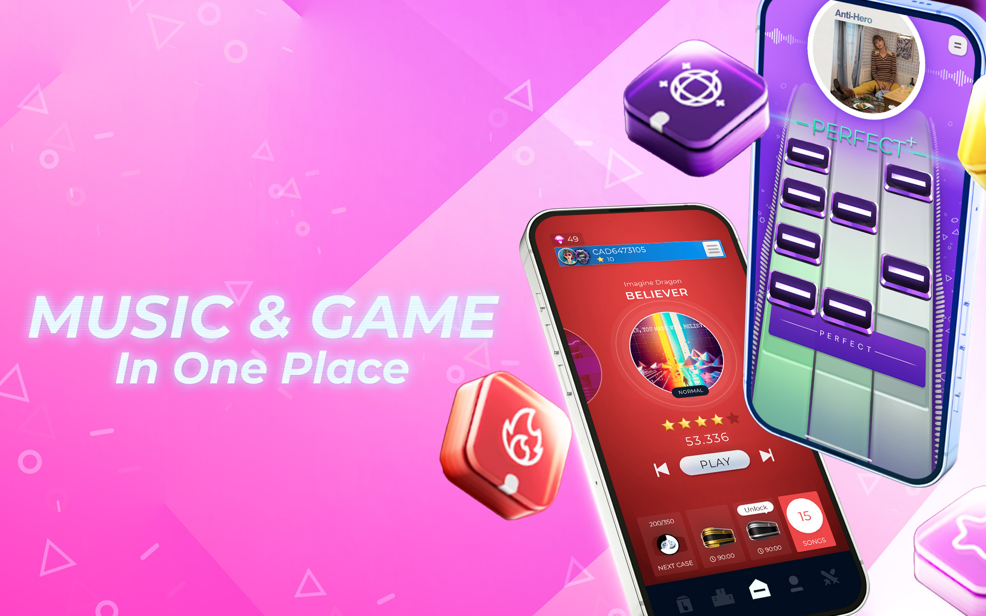 ● Modo de batalla con 2 campos de juego para que compitas: partida rápida para competiciones aleatorias con fanáticos de los juegos de música de todo el mundo, mientras que partida personalizada para que disfrutes tú y tus amigos.