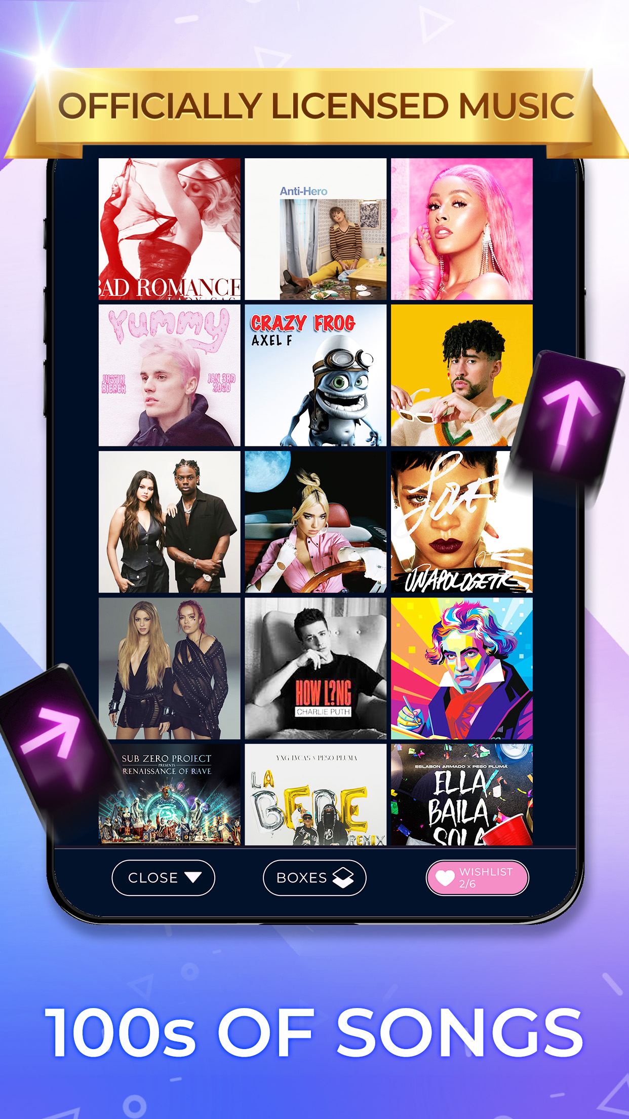 ● Más de 1000 canciones indie y exitosas de diferentes géneros musicales, artistas y culturas para que tú y tus compañeros de juego las exploren libremente