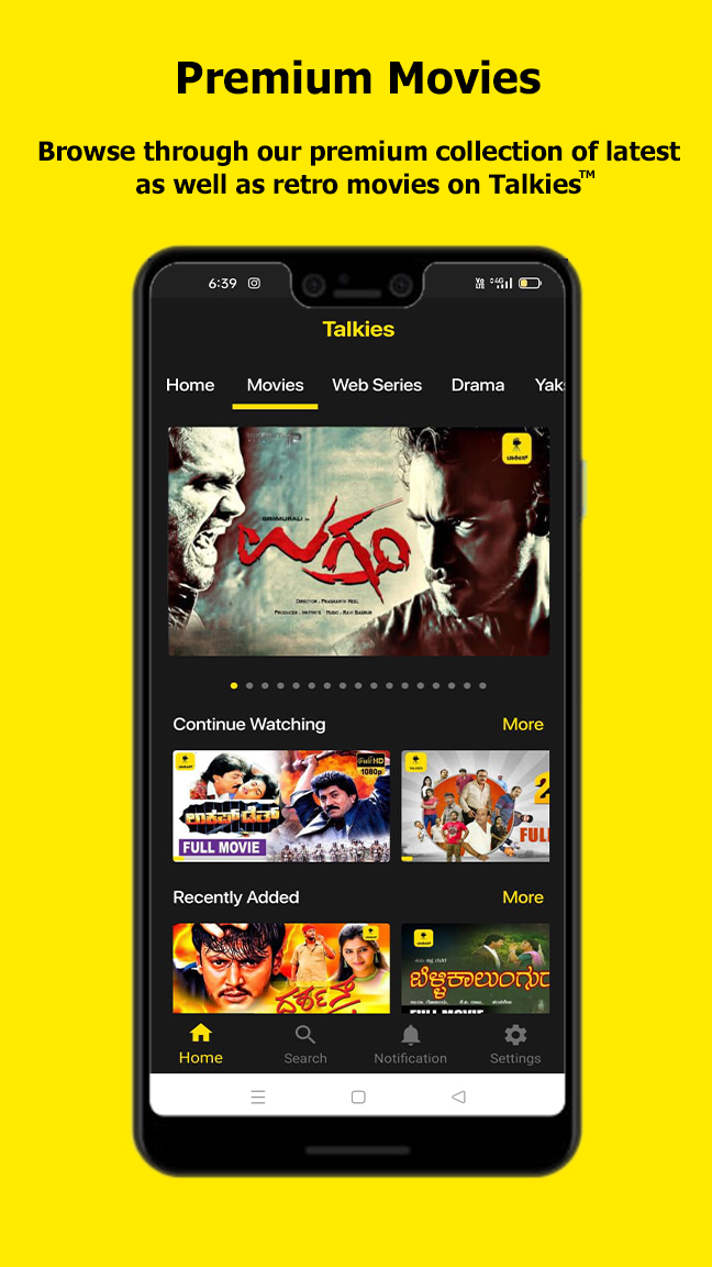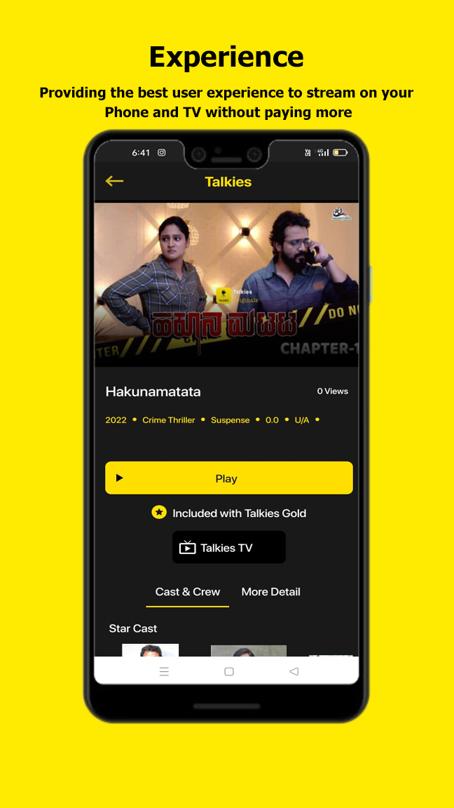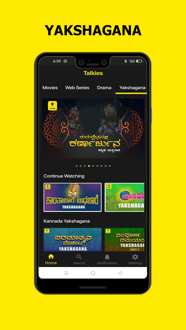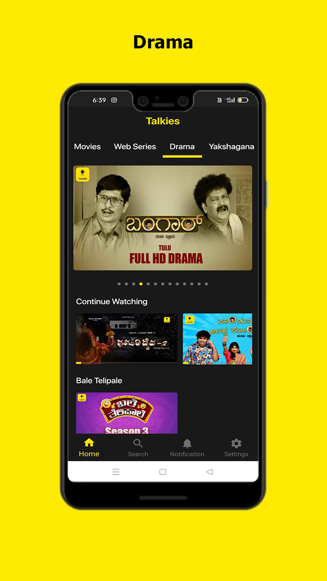 La aplicación "Talkies" es la primera plataforma de entretenimiento digital del mundo para Tulu, Kannada y Konkani. Ahora suscríbete y disfruta viendo tus películas, series web, originales de Talkies, dramas, programas de televisión y Yakshagana favoritos en Talkies. Instale la aplicación y vea Talkies Reels sin iniciar sesión. Lanzaremos nuevos carretes a intervalos regulares. Desplázate y disfruta de Talkies Reels. Mire Talkies Originals, que son contenidos exclusivos que se publican cada mes. Siéntese y disfrute de una gran selección de contenido regional. Características de la aplicación: • "Talkies" hace que tu viaje diario al trabajo sea más divertido con la opción de ver todos los contenidos en línea mientras viajas, en cualquier momento y en cualquier lugar. • Explore un amplio catálogo de películas, series web, originales sonoros, dramas, programas de televisión y Yakshagana en kannada, Tulu, Konkani, etc. • Cada semana nuevos lanzamientos. • Transmisión completamente sin publicidad. • Transmita en su teléfono, TV sin pagar más. • Todo esto y más a un precio muy asequible. La suscripción comienza en Rs. 49/- para India y a 2,5 $ para otros países. Planes de suscripción: • Talkies Gold: Rs.799/- por 1 año, Rs. 99/- por 1 mes y Rs.49/- por 1 semana en India. Para otros países 2,5$ por 1 semana, 4,9$ por 1 mes y 18$ por 1 año. Comience a mirar en 2 pasos: 1. Descargue la aplicación "Talkies" haciendo clic en Instalar en Play Store en su dispositivo móvil e instale la aplicación directamente. 2. Cuando la aplicación esté instalada, inicie sesión con su número de teléfono o cree una cuenta para ver videos en línea. Como miembro de Talkies, mira tus programas de televisión, películas y dramas populares favoritos. ¡Descarga tu aplicación Talkies hoy!