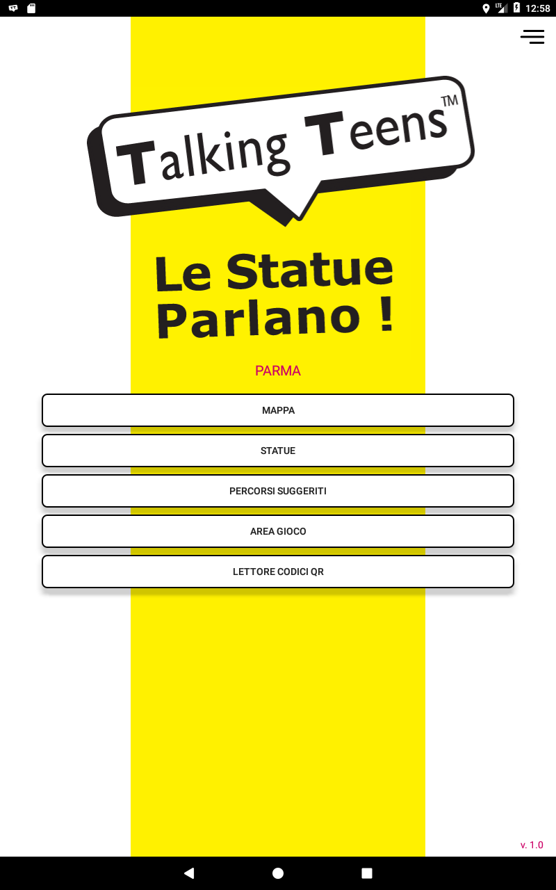 Adolescentes que hablan - ¡Las estatuas hablan! Es un viaje en el tiempo: un viaje a través de 16 estatuas de la ciudad para conectar con el teléfono móvil la historia y la vida de Parma a través de la voz viva de los personajes de la gran historia y la historia local. Un proyecto innovador de puesta en valor cultural realizado por adolescentes y accesible a todos (para todos) Características de la aplicación: • ¡Una ubicación geográfica precisa, para dar a las estatuas la posibilidad de "llamarte" cuando pases! • Un Mapa con todas las estatuas, para poder encontrar fácilmente todos los monumentos de la ruta, así como Parking, alquiler de bicicletas y puntos de información • Una tarjeta para cada estatua, para conocer más sobre la persona retratada, la historia de la estatua, conocer al actor que le dio la voz a la estatua y la clase que escribió el texto de la convocatoria. • Dos "Rutas sugeridas", una "completa" y otra "centro histórico", que te guían por el ruta mientras escucha cada llamada telefónica y en la que puede "entrar" desde cualquier punto de la ciudad que eres • Un "Área de juegos" con pequeños cuestionarios para cada monumento para poner a prueba tu memoria y tu cultura. • Un lector de códigos QR para poder escanear los códigos QR en las placas colocadas cerca de las estatuas y tener un segundo modo de acceso para escuchar llamadas telefónicas (más allá de la geolocalización) "Talking Teens: The Statues Talk" es un proyecto de la asociación sin fines de lucro "ECHO | EducationCulture Human Oxygen ”, nacido en 2017 El proyecto también nació con la idea de involucrar a los niños de secundaria, dándoles una nueva idea de cultura y abriéndoles una puerta al pasado. De hecho, 15 escuelas secundarias de Parma participaron en el proyecto: las llamadas telefónicas fueron creadas por los niños, con el apoyo de los profesores, y controladas por un comité científico que garantizó su calidad y precisión. Talking Teens ha adoptado (¡por ahora!) 16 de las estatuas de Parma, ¡y cada una tiene una historia que contar! ¡Gracias a nuestras tecnologías, cada estatua puede llamarte y contarte su historia en persona! Varios actores italianos de renombre (¡y algunos chicos también!) Han prestado su voz a las estatuas, como Franco Nero, Elisabetta Pozzi, Lino Guanciale y muchos otros. COMO FUNCIONA Yendo a las estatuas, conectadas entre sí por el circuito Talking Teens, puedes recibir una llamada telefónica, de aproximadamente 3 minutos, de cada una de las estatuas. En cada estatua hay una placa informativa con instrucciones también para invidentes y ciegos (en Braille) que explica cómo conectarse y escuchar la llamada telefónica. Hay 3 formas de elegir para escuchar llamadas telefónicas: • descarga nuestra APP y recibe la llamada telefónica tan pronto como te acerques a la estatua (gratis) • escanee el código QR en la placa y reciba la llamada (gratis) • marcar el número de teléfono en la placa (costo de la llamada local) LENGUA Puede optar por escuchar la llamada telefónica en italiano o en inglés y algunas estatuas también en dialecto parmesano. También puede recibir una videollamada en LIS, lengua de signos italiana. ACCESIBILIDAD Escuchar la llamada telefónica es accesible para todos - "para todos", incluso para personas con discapacidades motoras y sensoriales gracias a la placa también en Braille y la videollamada en LIS, lengua de signos italiana. CON LA CONTRIBUCIÓN DE Municipalidad de Parma y Fundación Cariparma, OCME y los patrocinadores técnicos Uniontel y KAORA. EN ALIANZA CON Escuela de Arte Toschi, Instituto Técnico ITIS Da Vinci y Delegación FAI de Parma. EN ALIANZA CON 15 escuelas secundarias de Parma y su provincia, ENS (Organización Nacional de Sordos) Parma, UIC Parma (Unión Italiana de Ciegos), ANMIC Parma (Asociación Nacional de Civiles Mutilados e Inválidos), Consejo del Dialecto Parmesano. Un AGRADECIMIENTO especial a todos los que creyeron y apoyaron "Los adolescentes que hablan - ¡Las estatuas hablan!" ¡y un agradecimiento especial a todos los generosos participantes del crowdfunding!