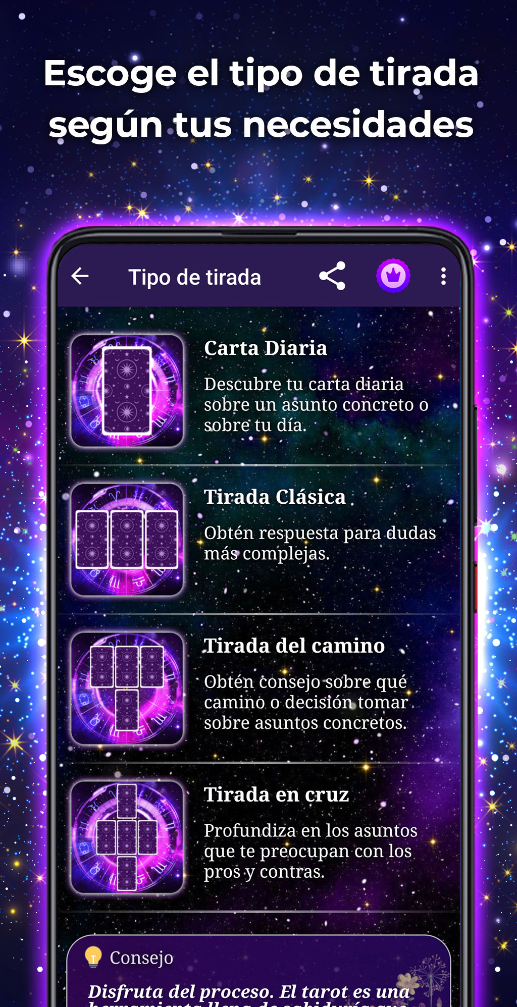 Descubre el tarot más completo con múltiples tipos de tarot y tiradas completamente gratis en español.