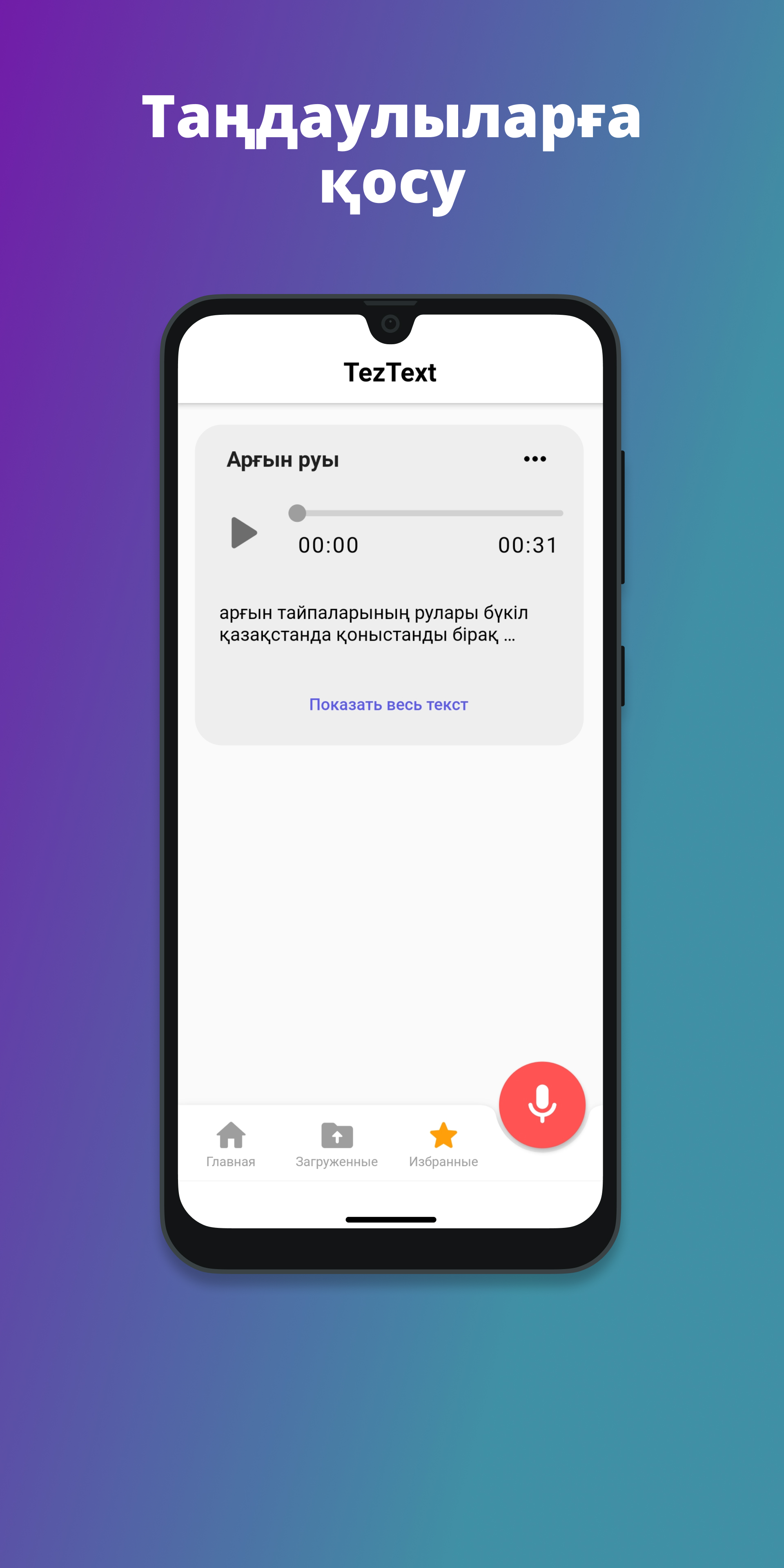TezText es una aplicación para periodistas de habla kazaja con dictado de voz, diseñada para ampliar las posibilidades de sus entrevistas.