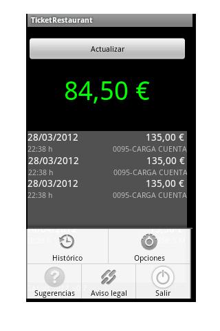 Consulta el saldo de tu tarjeta Ticket Restaurante de forma fácil y rápida. También podrás visualizar los últimos movimientos de tu tarjeta. Esta aplicación NO ES OFICIAL y Edenred España S.A no se responsabiliza de la información mostrada en ella.