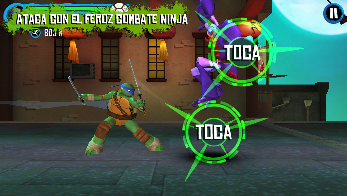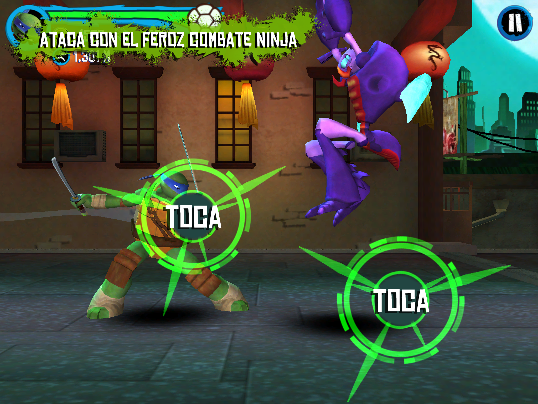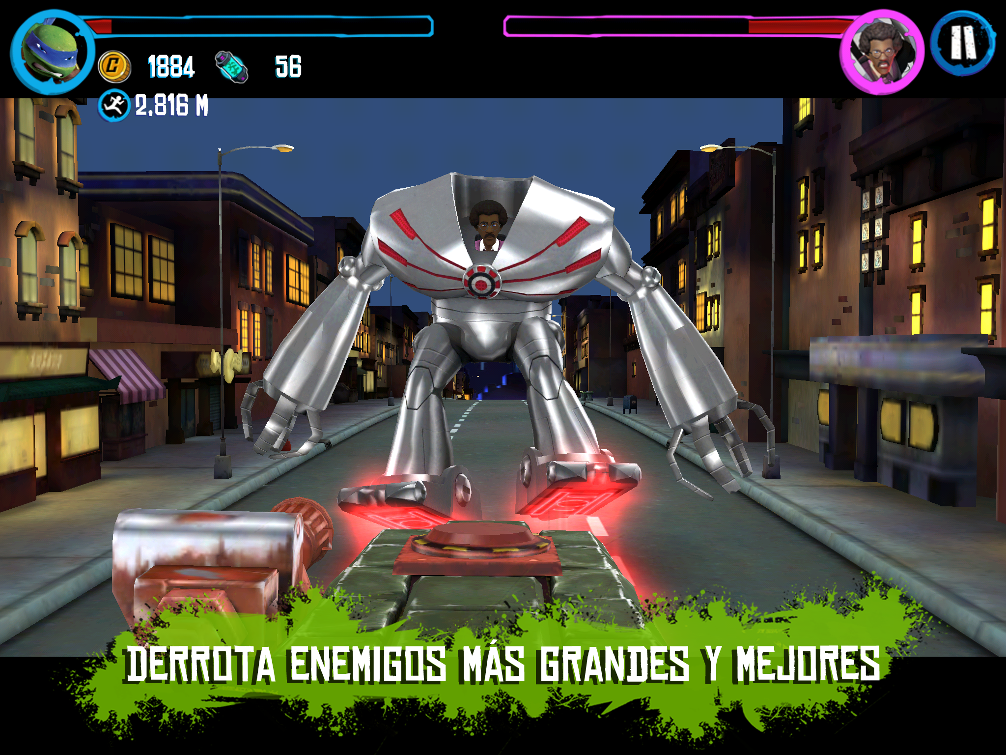 ¡La App #1 App en 80 países! ¡Puedes jugar como Leonardo, Donatello, Raphael o Michelangelo, también podras desbloquear personajes como April y Casey Jones en este increíble juego lleno de combates, saltos y vehículos a toda velocidad! ¡Corre, Salta, pelea y conduce por las calles de Nueva York, peleando contra el Clan del Pie, Kraang, Dimension X y Baxter Stockman!