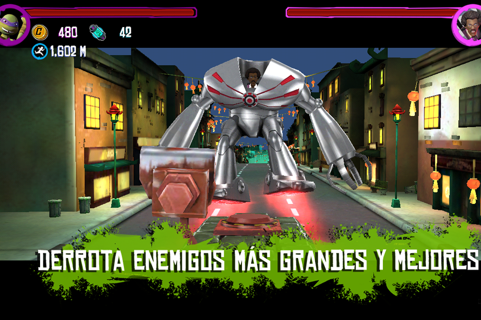 *Mejora tus armas, dispositivos y potenciadores como el Robot Laser y Salvador Tortuga *Desbloquea y pelea con el amigo más fiel de las Tortugas, el increíble Perrera