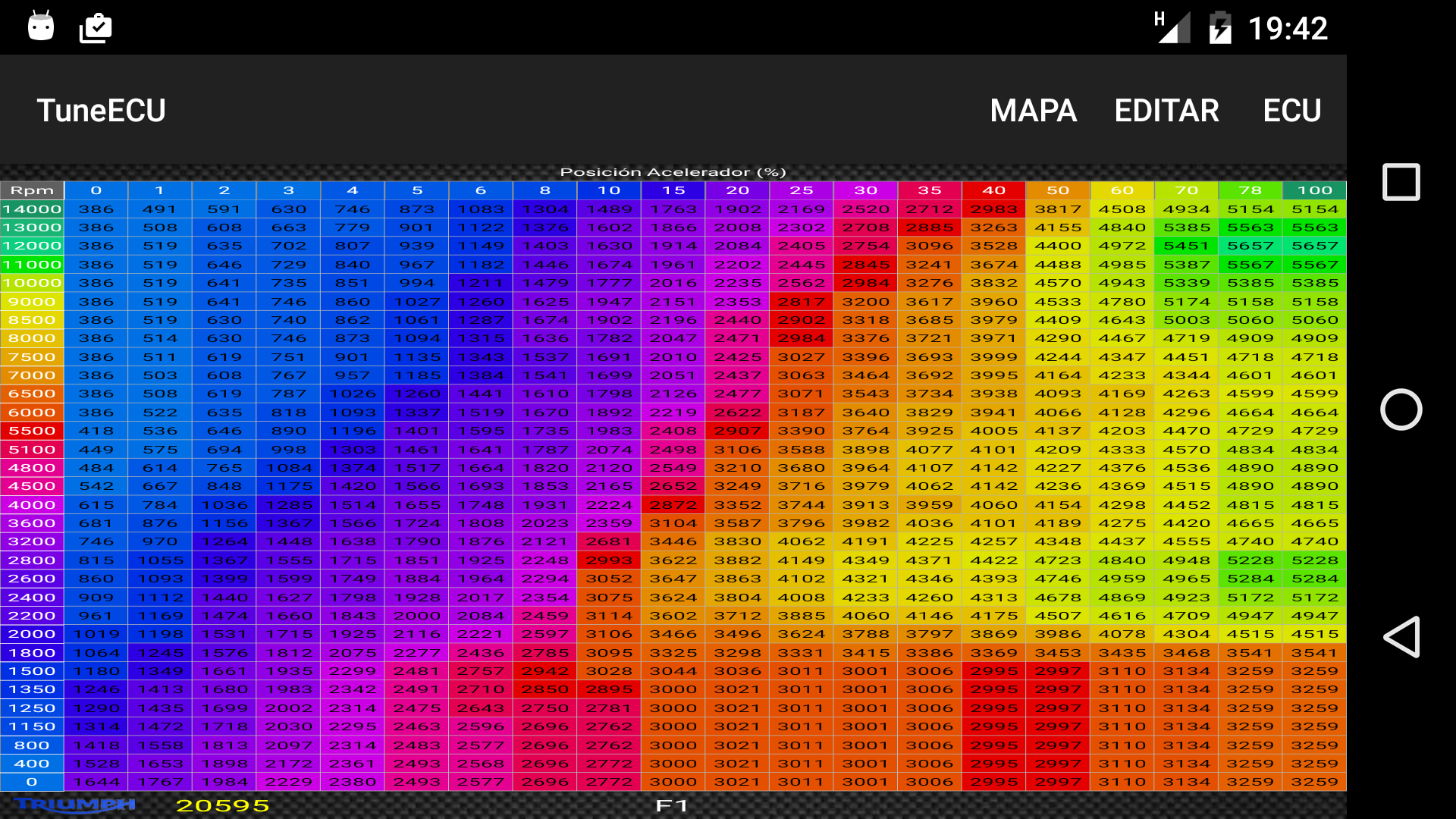 TuneECU es una aplicación que permite la reprogramación (1), diagnóstico y pruebas de la centralita de control (ECU) de motocicletas Triumph, KTM, Aprilia, Benelli, Ducati y Moto Guzzi. Esta aplicación requiere un cable USB/OBD2 con chipset FTDI or bien un adaptador Bluetooth ELM327. *Advertencia* En este momento hay una gran cantidad de adaptadores clon ELM327 circulantes que no están trabajando con TuneECU, debe utilizar los adaptadores recomendados para TuneECU (1) https://tuneecu.boards.net/thread/493/bikes-list-compatibility (2) https://tuneecu.boards.net/thread/494/bluetooth-adapter Es altamente recomendable visitar el sitio http://tuneecu.boards.net antes de usar esta aplicación.