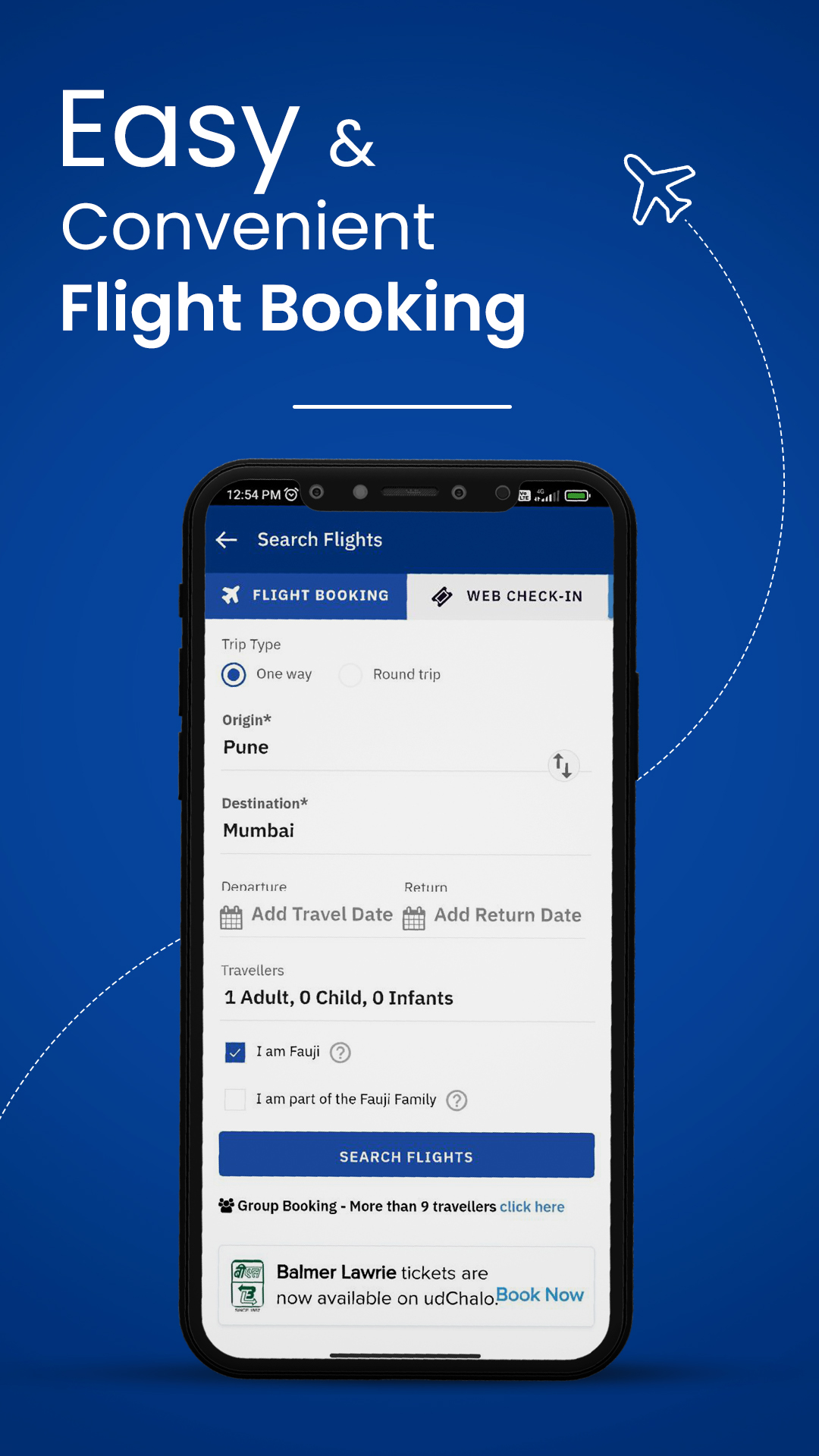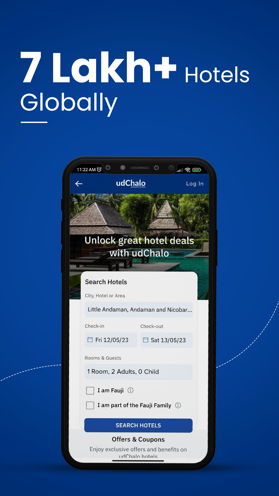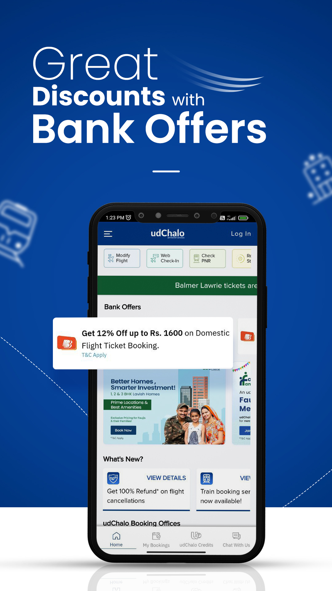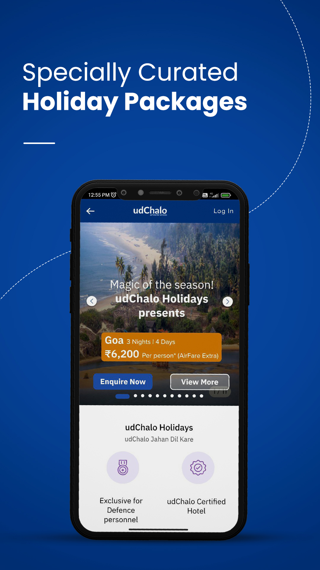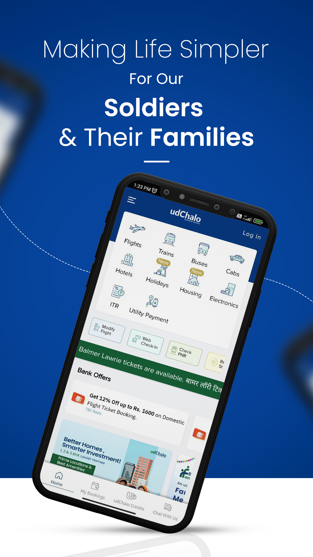 Brindar servicios de reserva de vuelos, trenes, autobuses, taxis y vacaciones, junto con servicios de estadías en hoteles, electrónica, finanzas y alojamiento para el personal de defensa. Descargue la última versión 8.0 del sistema operativo Android para planificar, buscar y reservar su viaje con facilidad. Verifica tu perfil y disfruta de las mejores tarifas en nuestros servicios. udChalo trabaja exclusivamente para las Fuerzas Armadas de la India y es una ventanilla única para todas sus necesidades. Con la visión de “Simplificar la vida de los soldados”, udChalo está sirviendo a los soldados y sus dependientes a través de servicios genuinos y exclusivos en varios verticales. Con udChalo, obtenga tarifas de viaje exclusivas en vuelos, trenes, autobuses, reservas de taxis y estadías en hoteles. Obtenga tarifas especiales en los últimos dispositivos electrónicos, pague sus facturas de servicios públicos, compre una casa asequible y presente su ITR junto con otros servicios financieros. Estos servicios están disponibles para Personal de Defensa, Fuerzas Armadas, Fuerzas Paramilitares, Veteranos, ESM y sus Dependientes. Ahorra tiempo y dinero a través de la aplicación udChalo. Reserva de vuelos✈ * Busque y reserve vuelos nacionales y aproveche las ofertas exclusivas de Defensa * Obtenga formularios LTC precargados * Ofertas y descuentos especiales de udChalo con aerolíneas asociadas * La mejor experiencia de reserva para vuelos nacionales y más de 26 destinos internacionales * Ahora las entradas de Balmer Lawrie están disponibles para reservar Reserva de trenes 🚂 * Somos un socio confiable y autorizado de IRCTC y principal proveedor de servicios * Oferta exclusiva en reserva de tren para Personal de Defensa * Verifique su estado de PRN en vivo y confirme sus asientos Estancias en hoteles🏨 * Las mejores ofertas de memorandos de entendimiento de defensa * Más de 3000 propiedades confiables y verificadas * Estancias asequibles con hoteles Fab y OYO. 🚕Reserva de taxis y autobuses🚌 * Reserve un taxi de 4-12 plazas y obtenga asistencia 24x7 * Transporte interurbano y recogidas y traslados al aeropuerto con taxi de confianza * Obtenga acceso a más de 60,000 rutas de autobús en India * Tenemos más de 10,000 socios de autobuses y más de 2300 operadores Comprar Electrónica📱 * El programa de compra de defensa le permite obtener las mejores ofertas en productos electrónicos * Obtenga ofertas en las mejores marcas como Samsung y Garmin * Verifíquese y disfrute de ofertas y descuentos exclusivos * El envío gratuito está disponible junto con Easy Exchange y EMI sin costo uPago de facturas de servicios e impuestos💸 * Presente su ITR con la asistencia de CA confiables * Planes Exclusivos de Declaración de Impuestos * Brindamos servicios sin contacto, no se requiere papel para el pago de impuestos * Fácil proceso de 3 pasos para presentar su ITR * Pague recargas móviles, DTH, facturas de gas y otras facturas esenciales sin esfuerzo Vivienda udChalo🏡 * Viviendas asequibles para el personal de defensa * Las mejores comodidades, la mejor ubicación y los desarrolladores de confianza * Proximidad a la Estación de la Fuerza Aérea, la Escuela del Ejército y otras Instalaciones de Defensa * Beneficios Fiscales como nunca antes udChalo Vacaciones🏖 * Los mejores paquetes de vacaciones para el personal de defensa * Disfruta de tu estancia en Hoteles Certificados udChalo * Socios de recursos experimentados * Comprometidos a servir los servicios Además: Usa créditos udChalo: Gestiona tu dinero fácilmente, ya sea para pagar una reserva, un reembolso o una cancelación Reserva de viaje de ida y vuelta: reserve un viaje de ida y vuelta, aproveche las ofertas exclusivas y ahorre tiempo Reclamaciones de LTC disponibles para OR/JCO Conozca más sobre nosotros en: www.udchalo.com, la plataforma de aplicaciones y más de 60 oficinas de reserva de boletos sin conexión con presencia de PAN India. Premios y logros🎖 Certificado Great Places to Work 2021 y 2022 de forma consecutiva. Recibió el "2021 National Startup Award by StartupIndia" del Honorable Primer Ministro de la India. Cuarta posición como "Mipymes de más rápido crecimiento de la India" en The Economic Times, ET Rise Top Indian MSME's 2020. Calificada entre las 10 empresas de reserva de boletos en línea más prometedoras de la India en 2019 por Silicon India y recientemente nombrada como la empresa emergente de viajes Emprendedor de la India del año, la visión de udChalo es "Simplificar la vida de nuestros soldados".