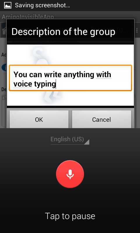 • Escribe la descripción de tu grupo, las normas de tu juego, etc. con el teclado o utiliza el dictado de voz de Google.