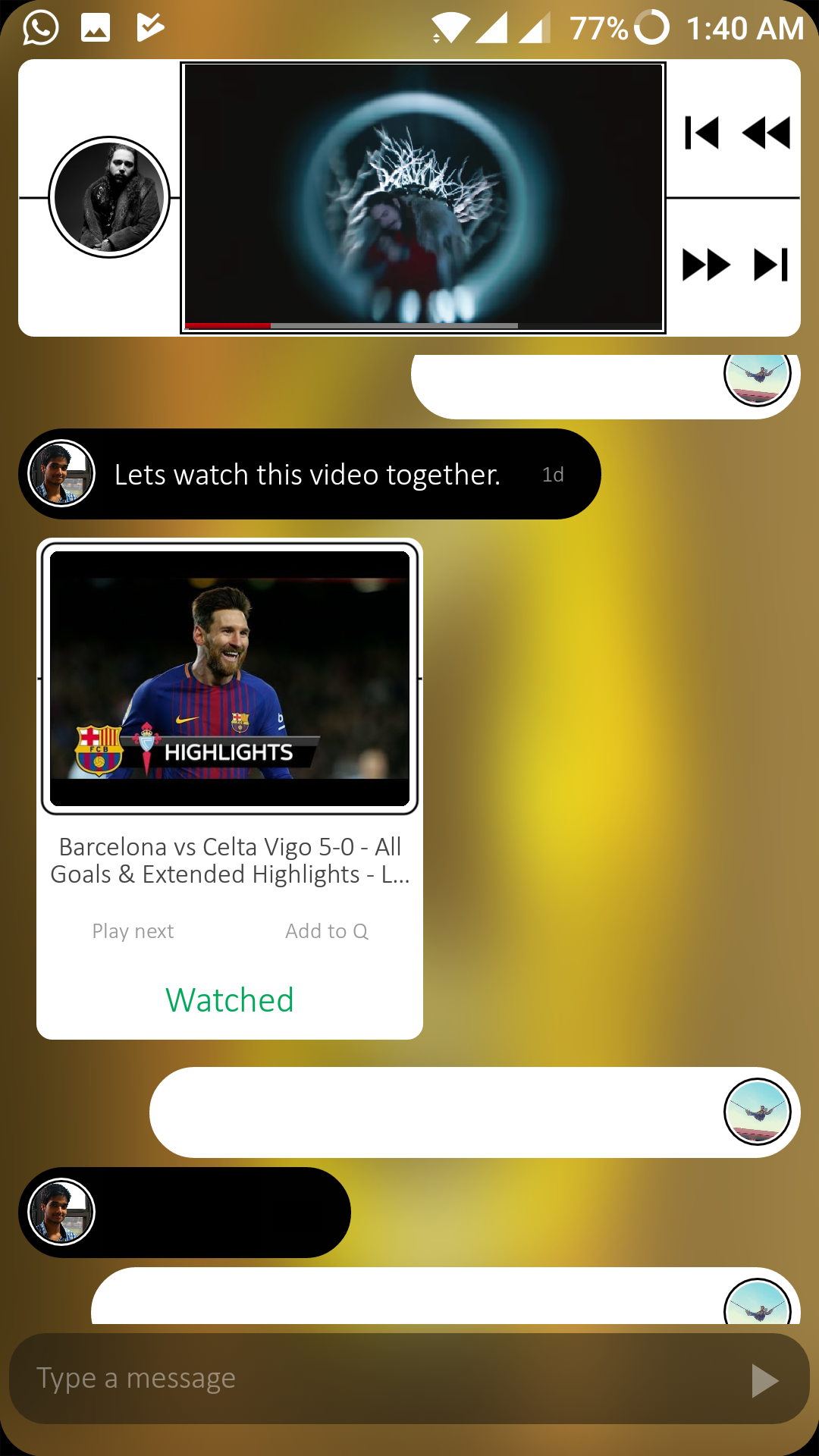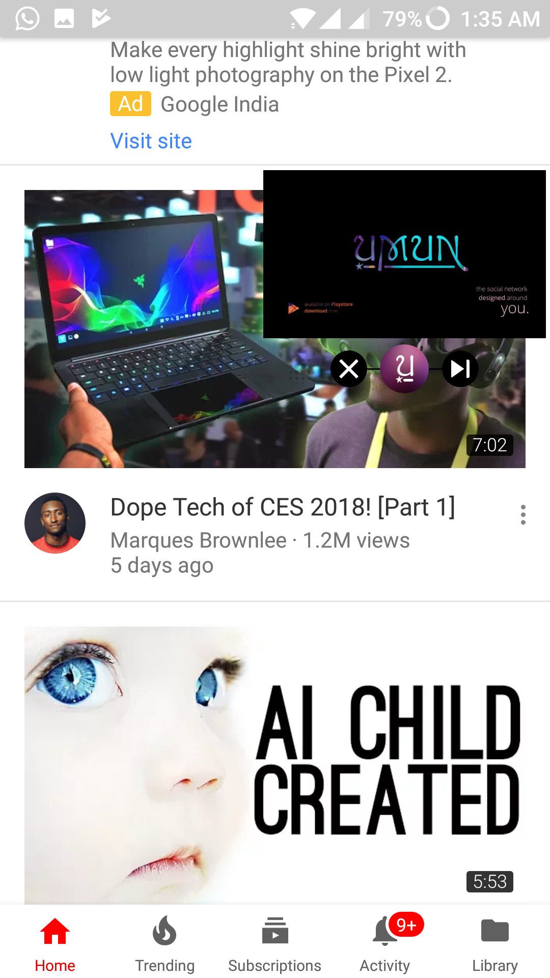Meet Umun, the smartest YouTube companion app on android. Umun allows you to watch videos with someone special in real time, while you may chat, scroll through the news feed, connect with new friends, all while as you watch your favorite artist's video. And for the times you need to leave Umun simply take the video to other apps with you. Connect with your friends, family, colleagues, students and teachers and stay updated with what they are upto. And find some time to tell them highlights of your day. Post to targetted audiences easily. Just a tip, clubbing photos and family members don't go hand in hand. ;) Additionally, you may: ● Share your precious moments with friends. ● See what your friends are up to. ● Chat with other users. ● Record stories for Snapchat, Instagram, Facebook, Whatsapp, Messenger and other social media platforms. ● Rate posts anonymously. ● Create and share watermarked posts to other social networks. ● Comment on posts and mention other users in comments as you would on any popular social media sites viz facebook, instagram, snapchat, youtube, google plus, etc Using Umun, you may play videos directly from YouTube's official Android App in Floating Picture in Picture mode. Simply click 'SHARE' from YouTube App and select Umun. The video will pop out. Enjoy listening to your favorite tracks as you play a game or chat with someone. Umun PiP works in all Android versions not just Android M. Umun is a third party application, and does not claim any direct or indirect association with YouTube. All rights of YouTube (trademark and logo) reserved by YouTube LLC.