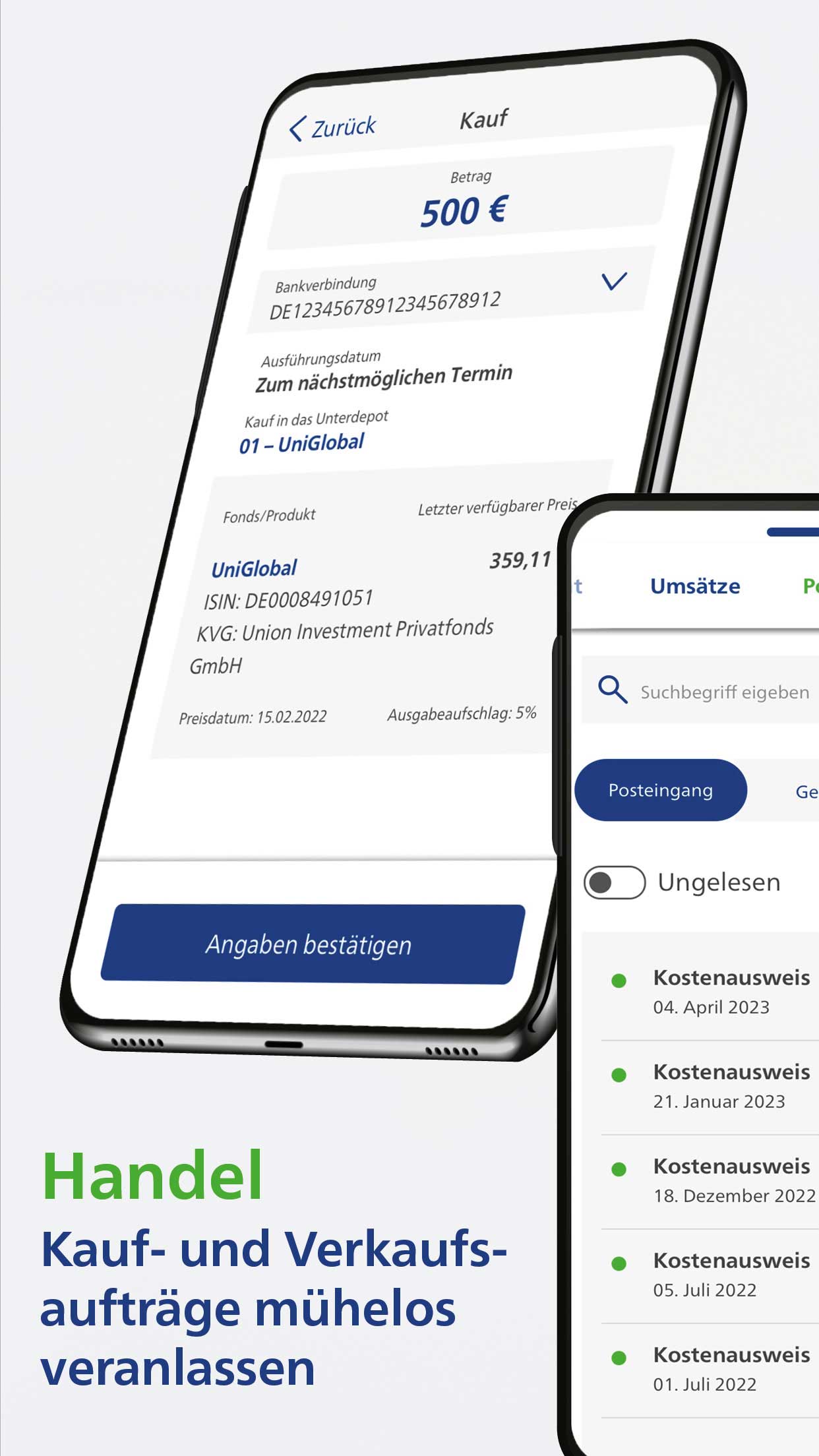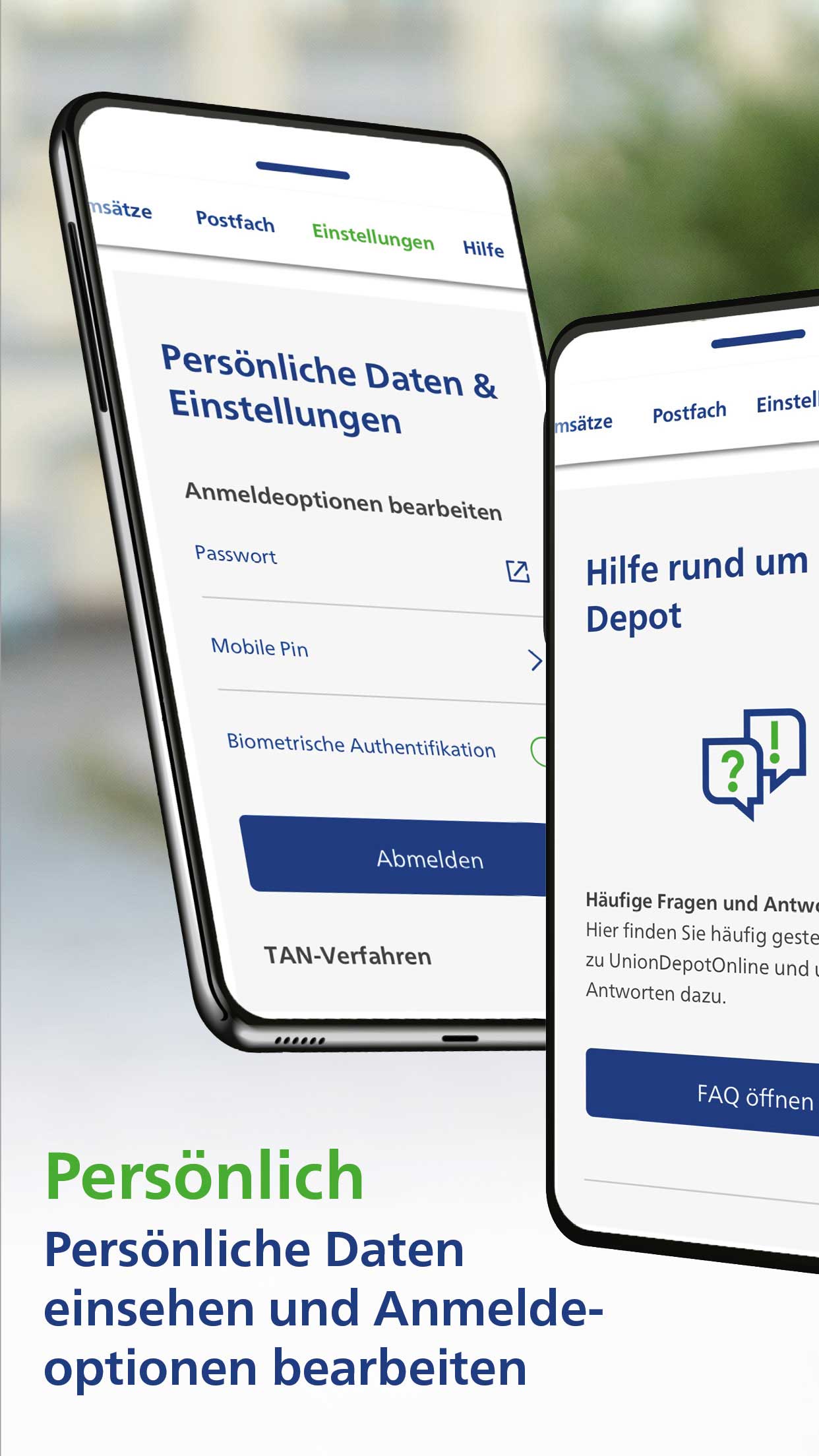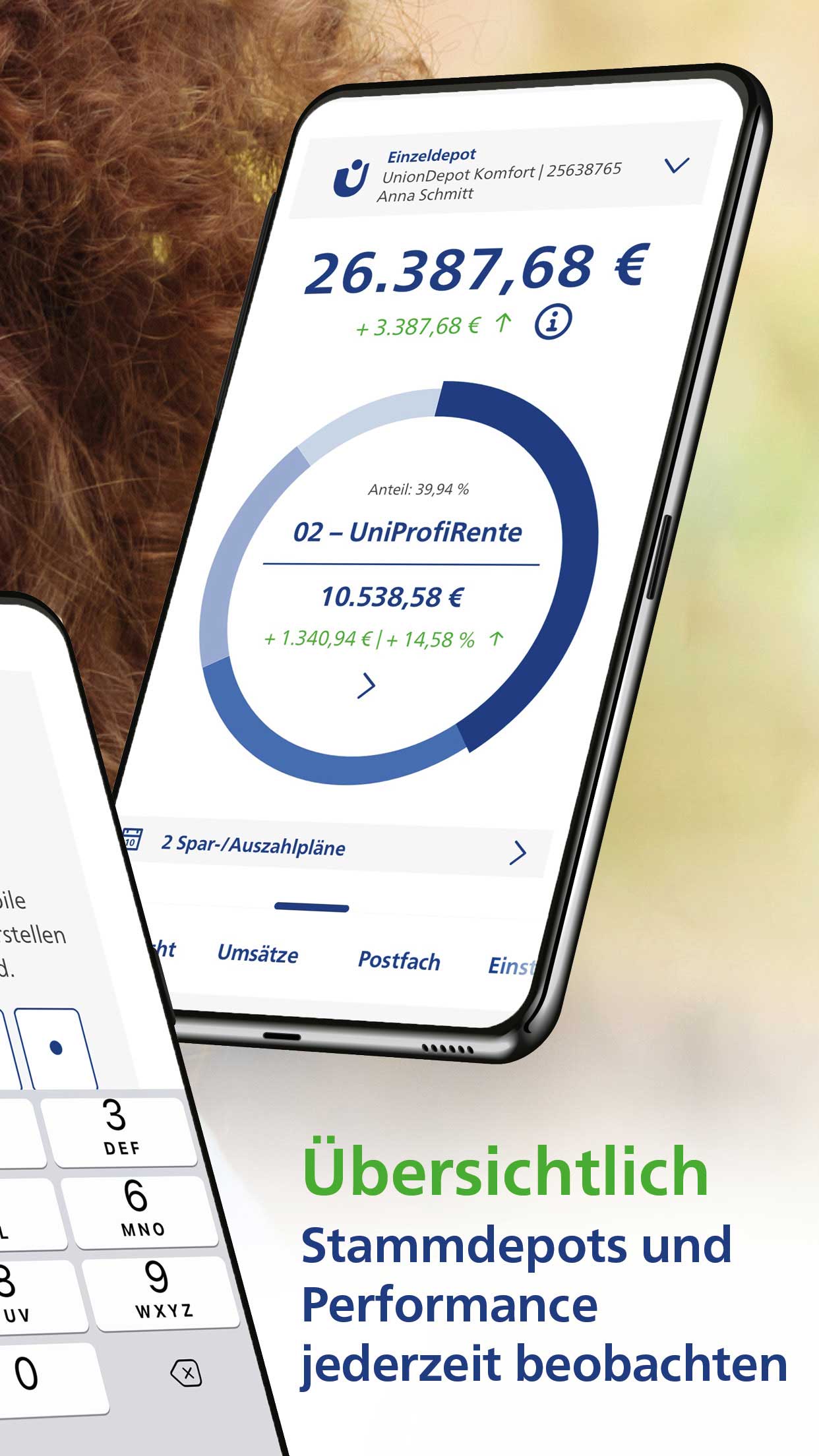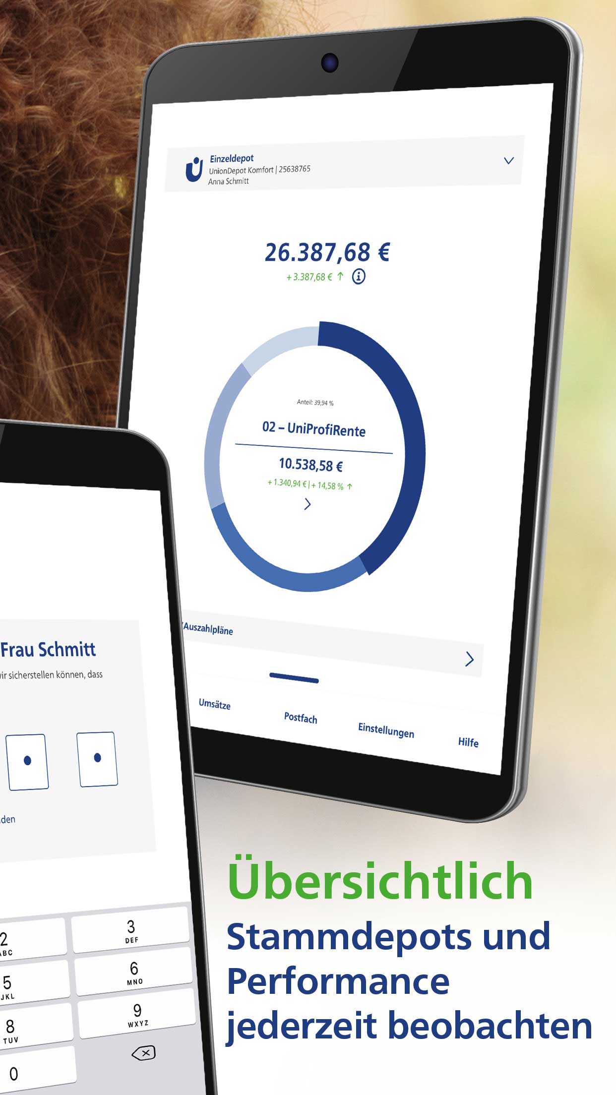 Descárguelo ahora gratis y comience con sus datos de acceso a UnionDepotOnline. Los resúmenes claros de sus depósitos lo ayudan a controlar el desarrollo de sus inversiones y el número de sus ahorros y planes de pago. Puede comprar o vender acciones de fondos en cualquier momento. Con el nuevo buzón, no te perderás más mensajes nuestros y siempre tendrás acceso a tus documentos. La función integrada de contacto y llamada también le ofrece una línea directa con nuestro servicio de atención al cliente.