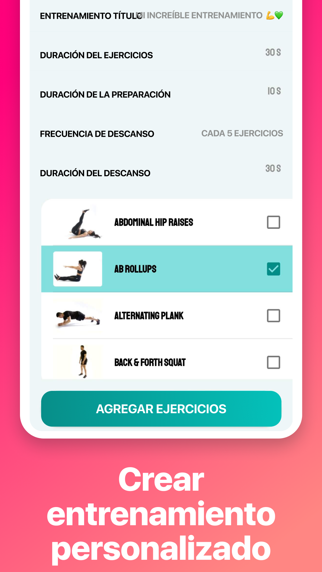 Entrenamientos personalizadosCree sus propias rutinas de ejercicios a partir de nuestra base de datos de más de 90 ejercicios en video.