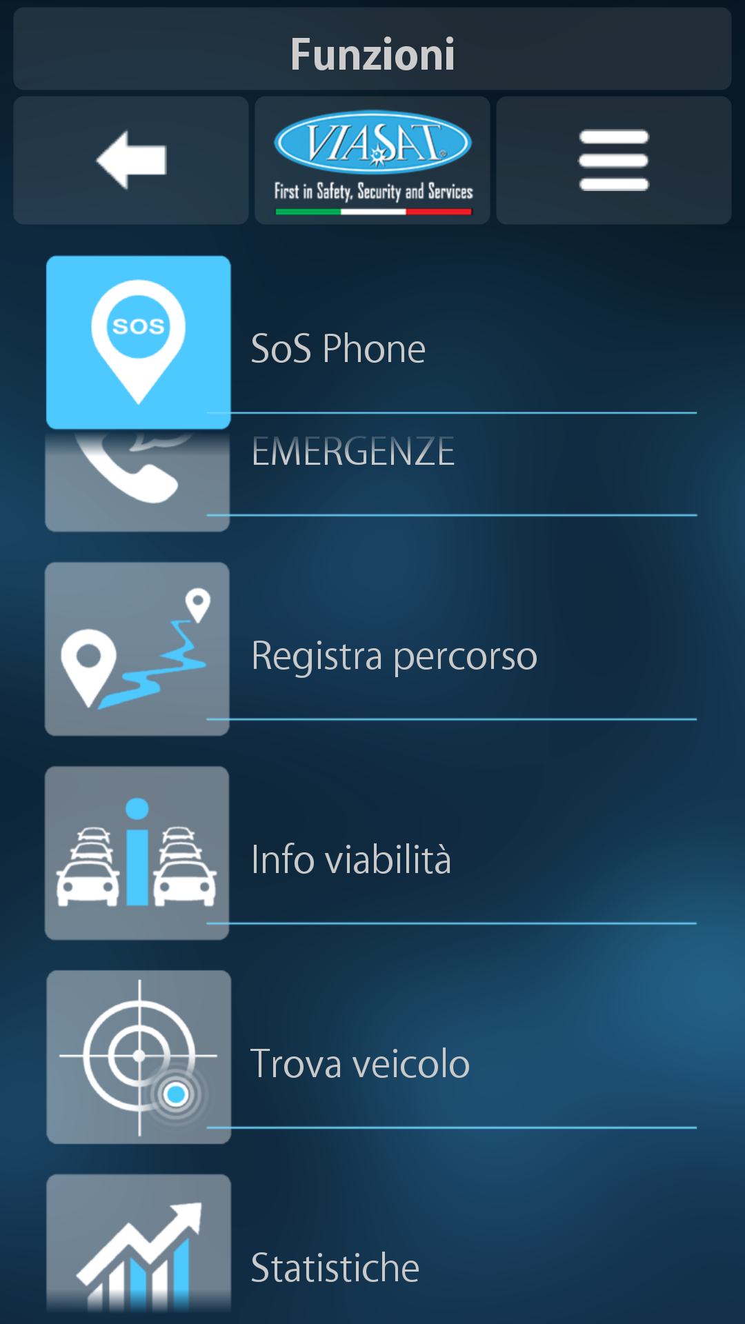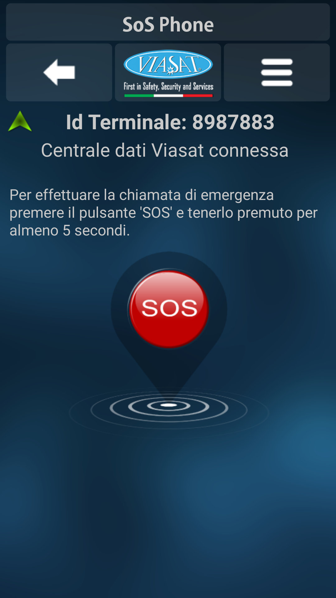 SoS Teléfono: activa una llamada de emergencia a la ubicación geográfica estación de monitoreo con Viasat registrado identificación, inmediata y puntual, la persona que llama. necesidad E 'para presionar el botón rojo "SOS" durante al menos 3 segundos. Si el cliente es incapaz de hablar, la central y 'puede reconocer la persona que llama y localizar el dispositivo móvil. Por lo tanto, los operadores Viasat son capaces de determinar de forma independiente y con precisión la posición del dispositivo móvil (por ejemplo, en el que la autopista kilometros tiene). Esto le permite proporcionar asistencia inmediata y, si es necesario, pedir ayuda en el acto.